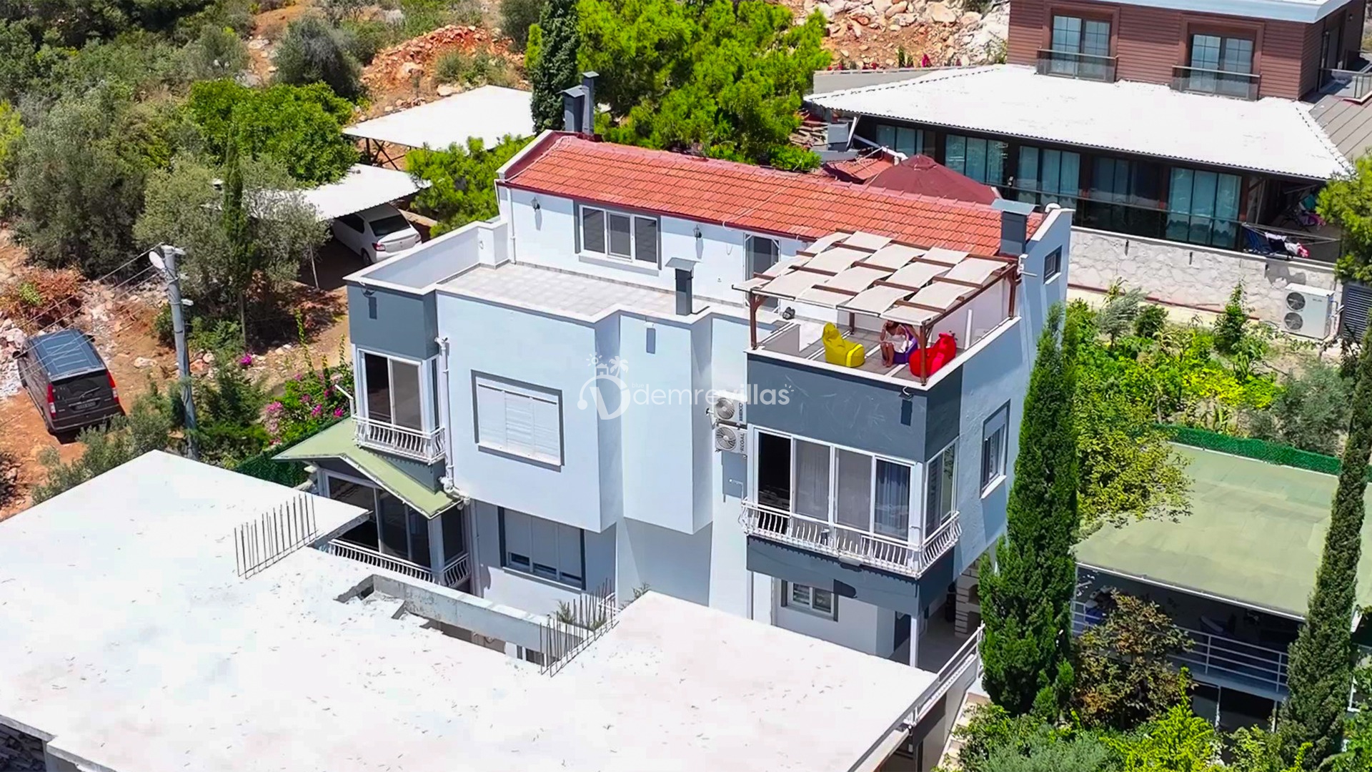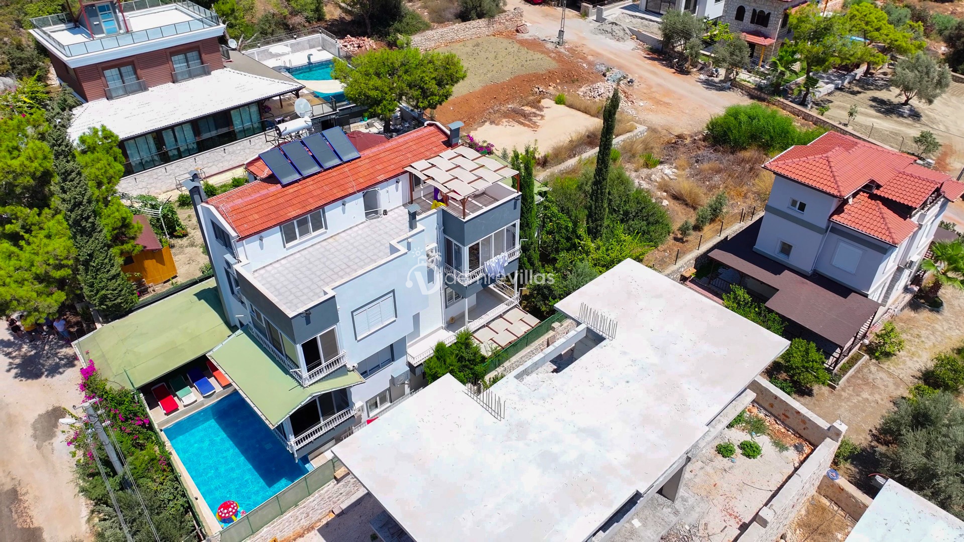 Coğrafi yapısı bakımında dağlık bir alana sahip olan bölgemizdeki villalarımız genel olarak yamaç üzerine kuruludur. Bu nedenle villalarımıza giderken yokuş yukarı çıkılmaktadır. Bu not sadece bu villa ile ilgili değildir. Tüm villalarımızda yazmaktadır.
