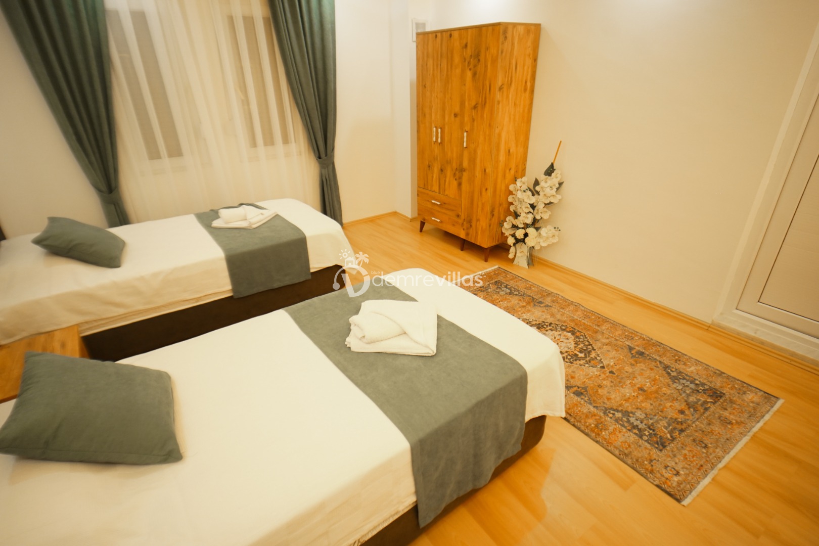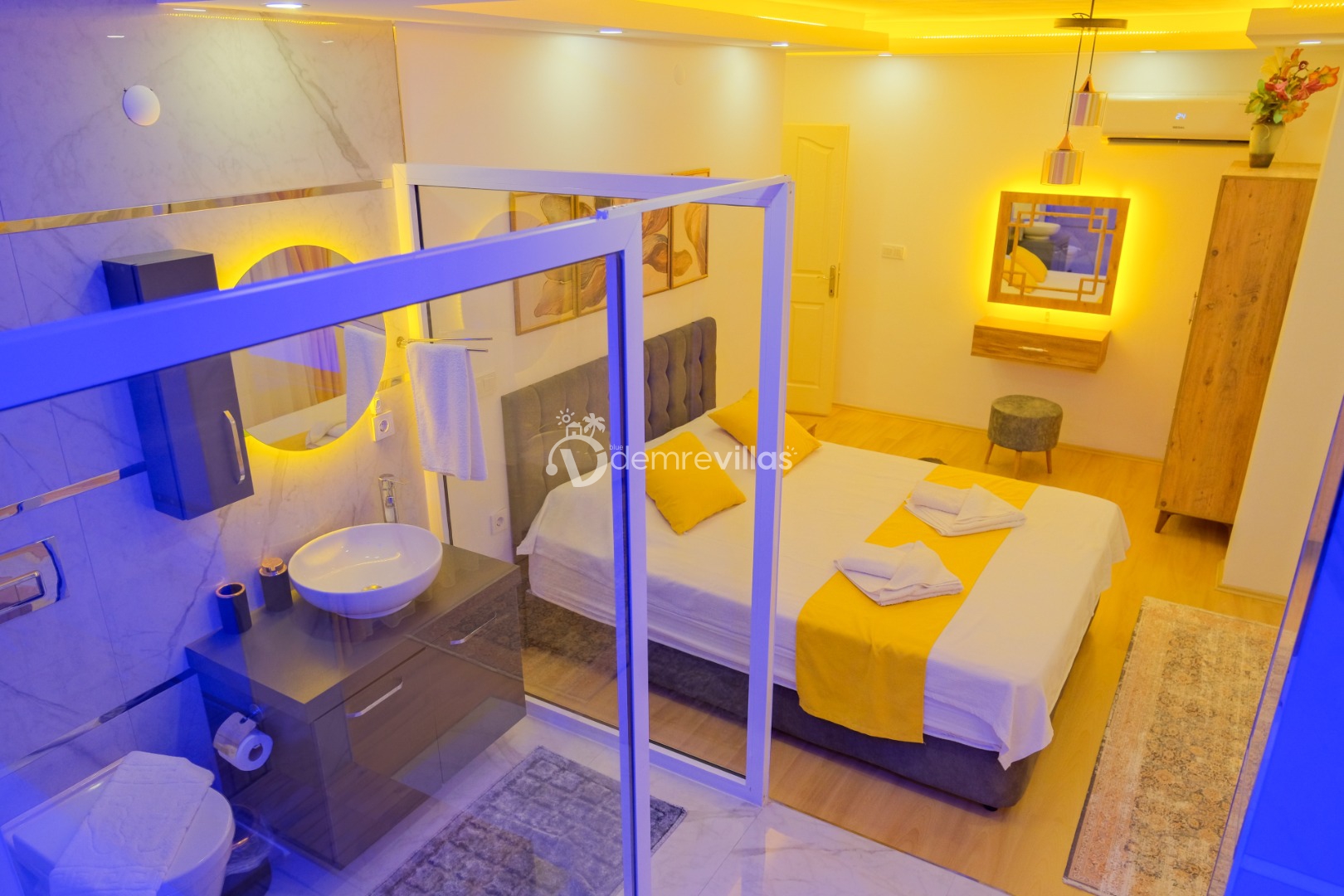 Not: 3 yatak odalı. Kalabalık aileler olursa binanın bodrum katı mevcut. Burada da 1+1 oda var. Ekstra ücret karşılında bu oda da aktif edilebiliyor. Odanın aktif edilmesi için villa sahibinden fiyat alınması gerekmektedir.