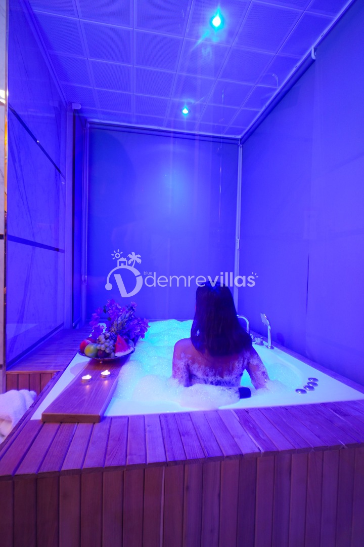 Havuzu korunaklı ve bahçesi dışarıdan görünmeyen villamız mahremiyete önem veren aileler için özel olarak tasarlanmıştır. Ayrıca villamızın her iki ebeveyn yatak odasındada 2 kişilik jakuzi konforuda yer almaktadır.