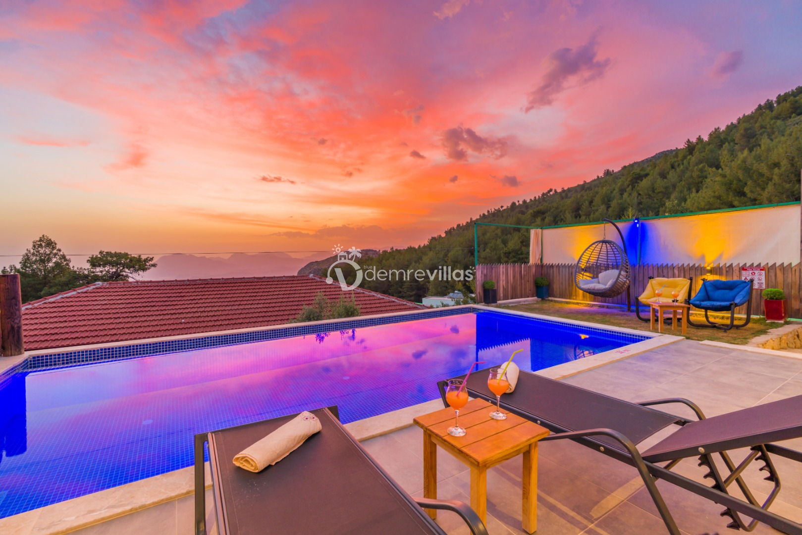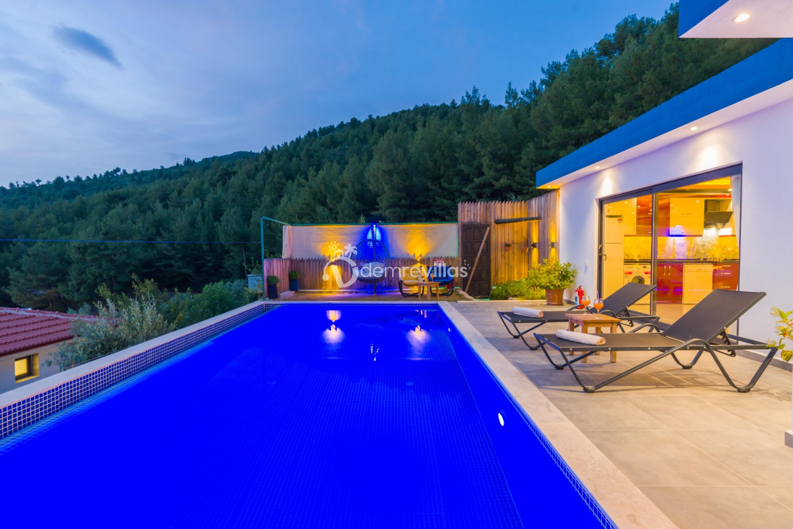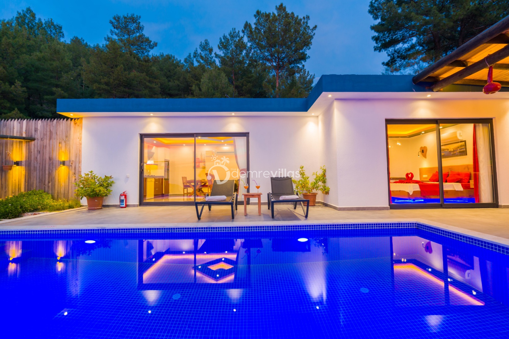 Kalkan İslamlar Köyü'nde bulunuyor. Tek yatak odası ile 2 kişilik konaklama kapasitesine sahip kiralık balayı villasıdır.Doğa içinde harika bir konuma sahip, korunaklı havuzlu, jakuzili ve şık villamızda unutulmaz bir balayı tatili sizleri bekliyor. Şehrin karmaşasından ve rahatsız edici gözlerden uzakta bir balayı tatili için ideal bir villadır.