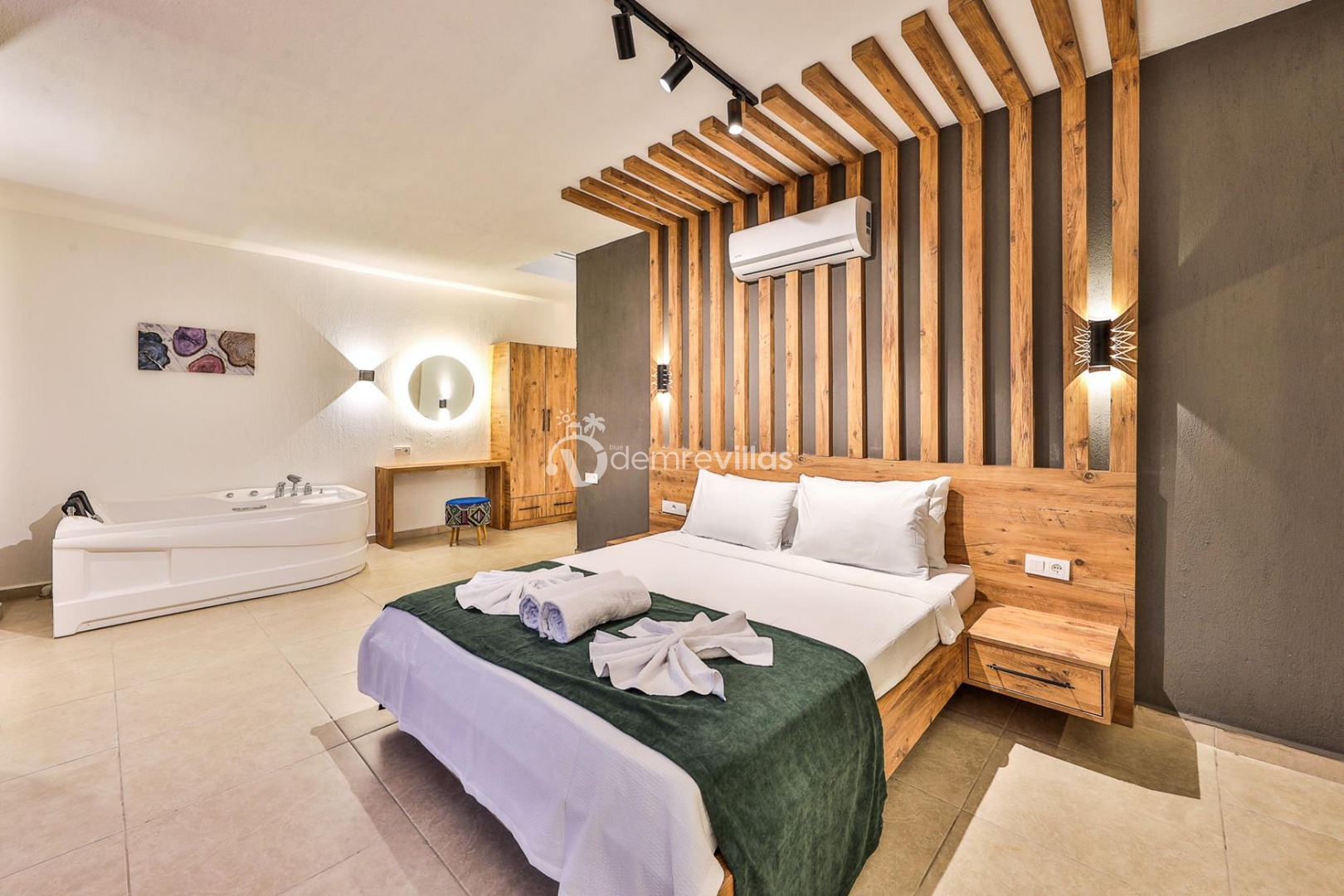 Villamızın bahçesinde havuz, şezlong, oturma köşesi, yemek masası ve barbekü yer almaktadır. Ayrıca konforunuz için dizayn edilmiş, modern villa içerisindeki yatak odasında jakuzi yer almaktadır. Villamız konsepti ve korunaklı olması sebebiyle balayı çiftlerimiz için oldukça idealdir.