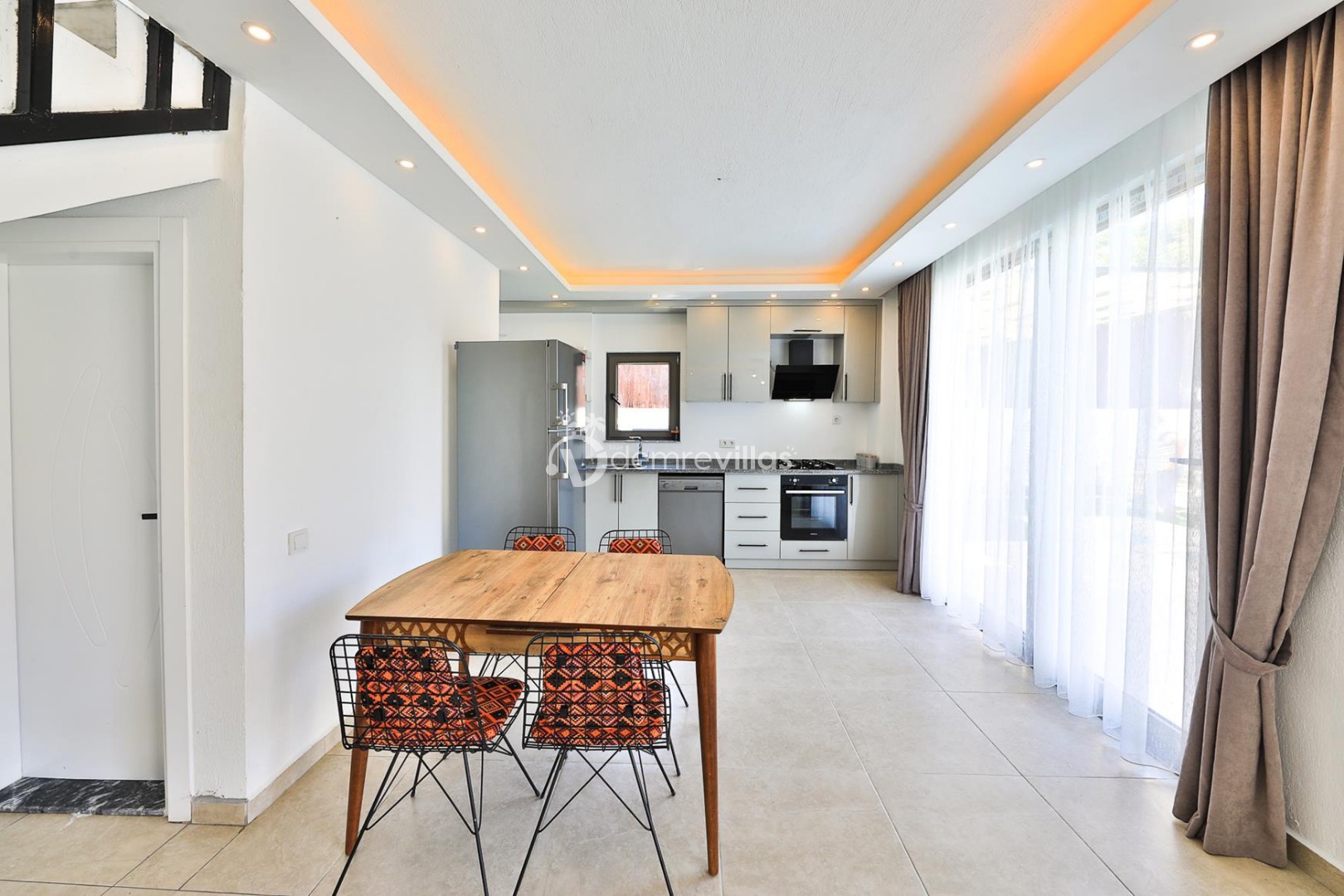 Mutfak: Villamızın mutfağında buzdolabı bulaşık makinası, çamaşır makinası, 4'lü ocak, kettle, mikro dalga fırın, filtre kahve makinası yemek takımı bulunmaktadır.