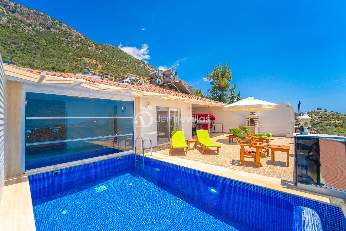 Antalya Bezirgan mevkiinde konumlanmış, deniz manzarasına hakim, merkeze ve denize yakın, çekirdek ailelere ve balayı çiftlerine hitap eden, 4 kişi kapasiteli, bütün bir yılın stresini atacağınız özel havuza ve jakuzi özellikli ısıtmalı kapalı havuza sahip, terasında mangal keyfi yapabileceğiniz barbeküsü olup, korunaklı, modern ve şık mimaride tasarlanmış, kiralık tatil villasıdır.