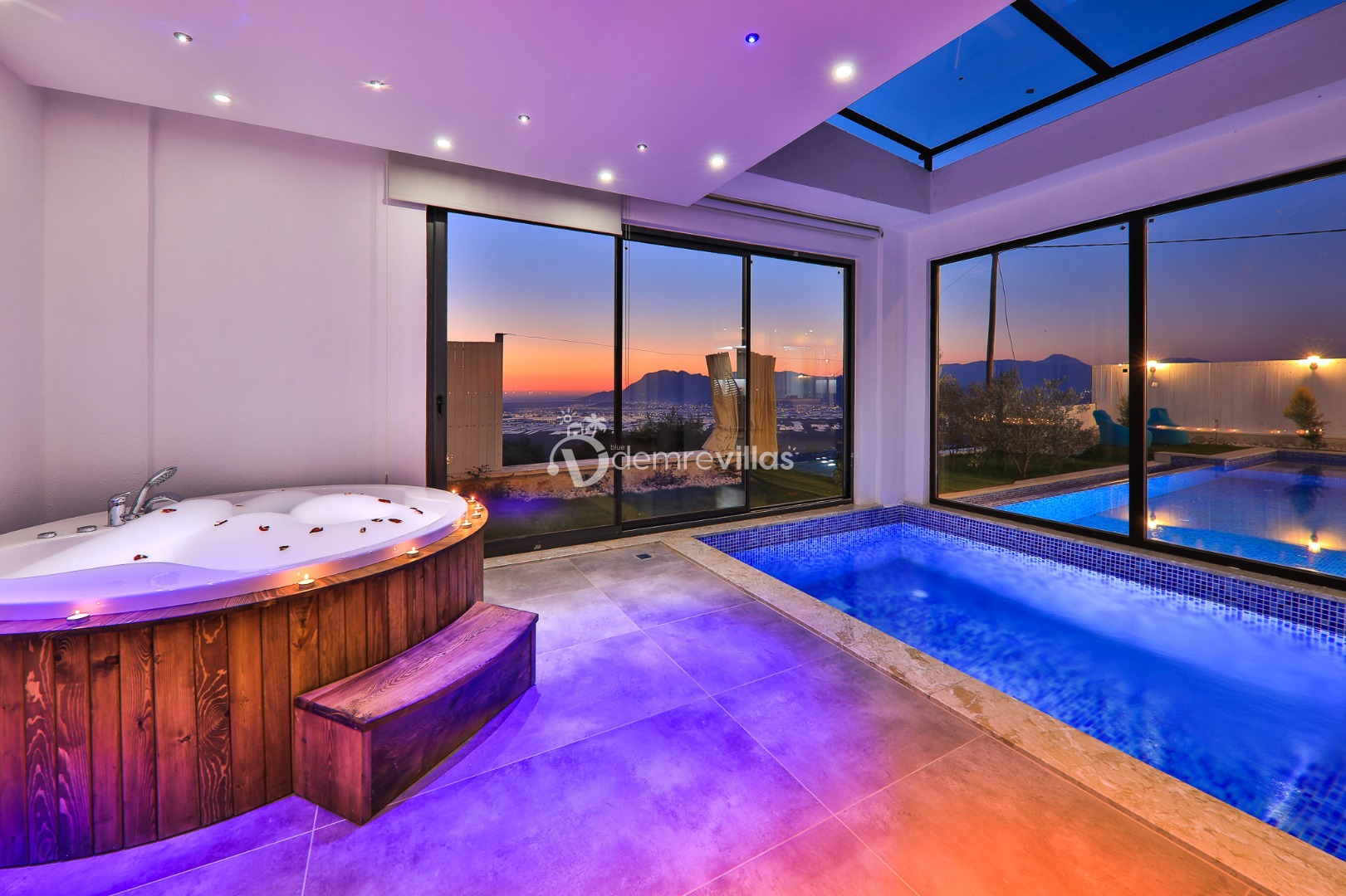 Ayrıca, içerisinde bulunan sauna, ısıtmalı kapalı havuz, sinema odası ve yatak odasındaki TV ve jakuzi, Villa lüks ve konforlu bir kaçamak için mükemmel bir seçenek haline getiriyor.