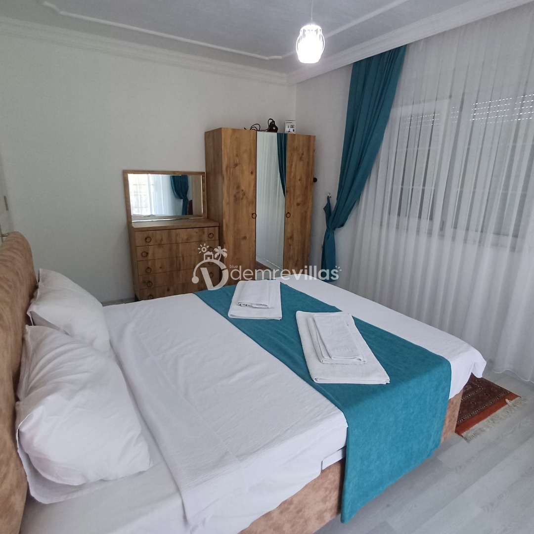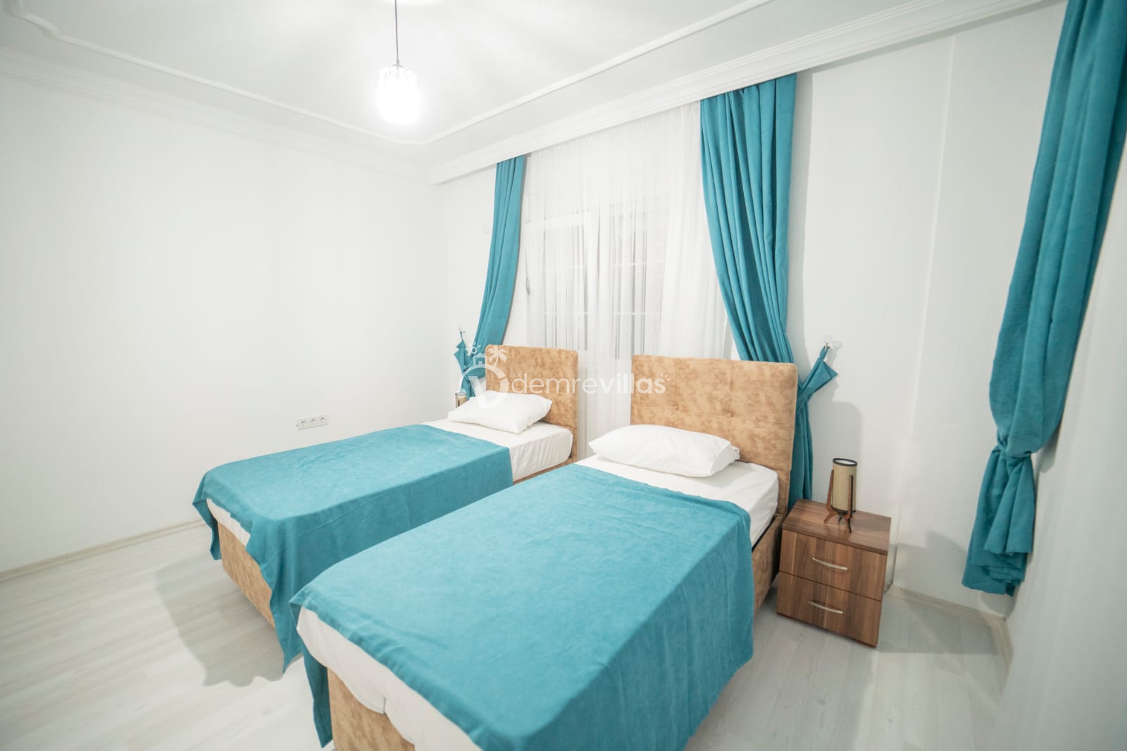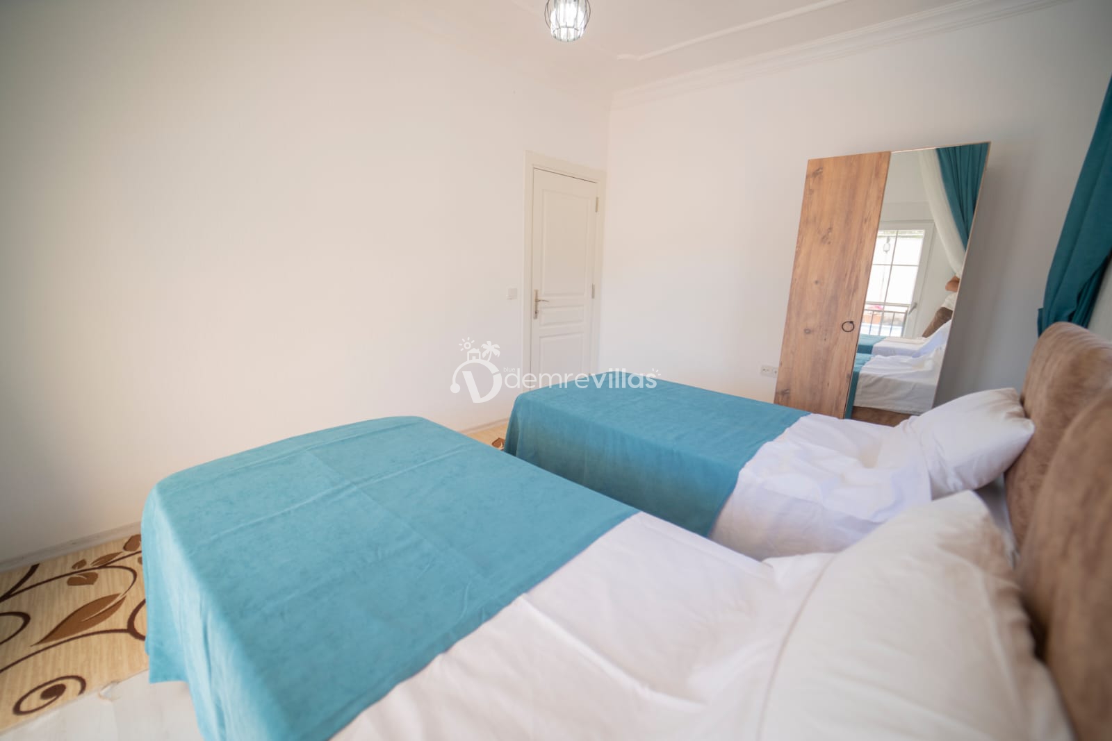 4 kişi kapasiteli olup 2 yatak odası ve 2 banyosu bulunmaktadır. Villanın odaları sade bir dekorasyona sahiptir ancak konforlu yataklar ve temiz çarşaflar ile rahat bir konaklama sunar. Her odada dolap, ayna ve komodin gibi ihtiyaç duyabileceğiniz tüm eşyalar mevcuttur.
