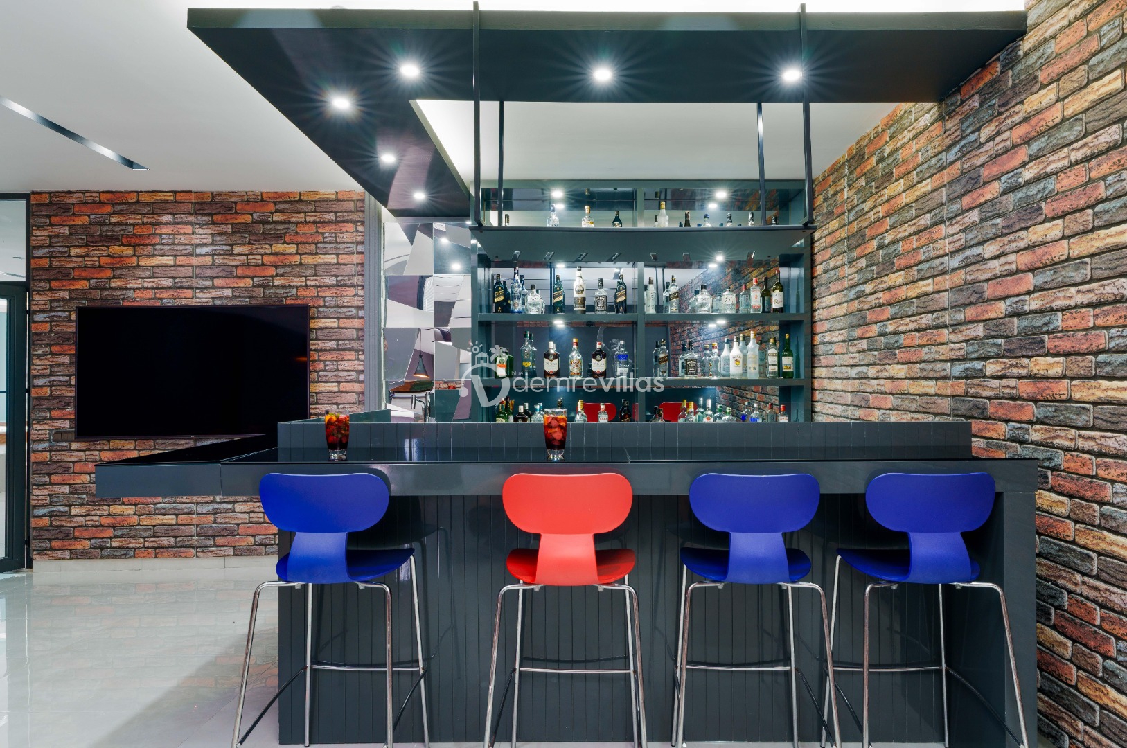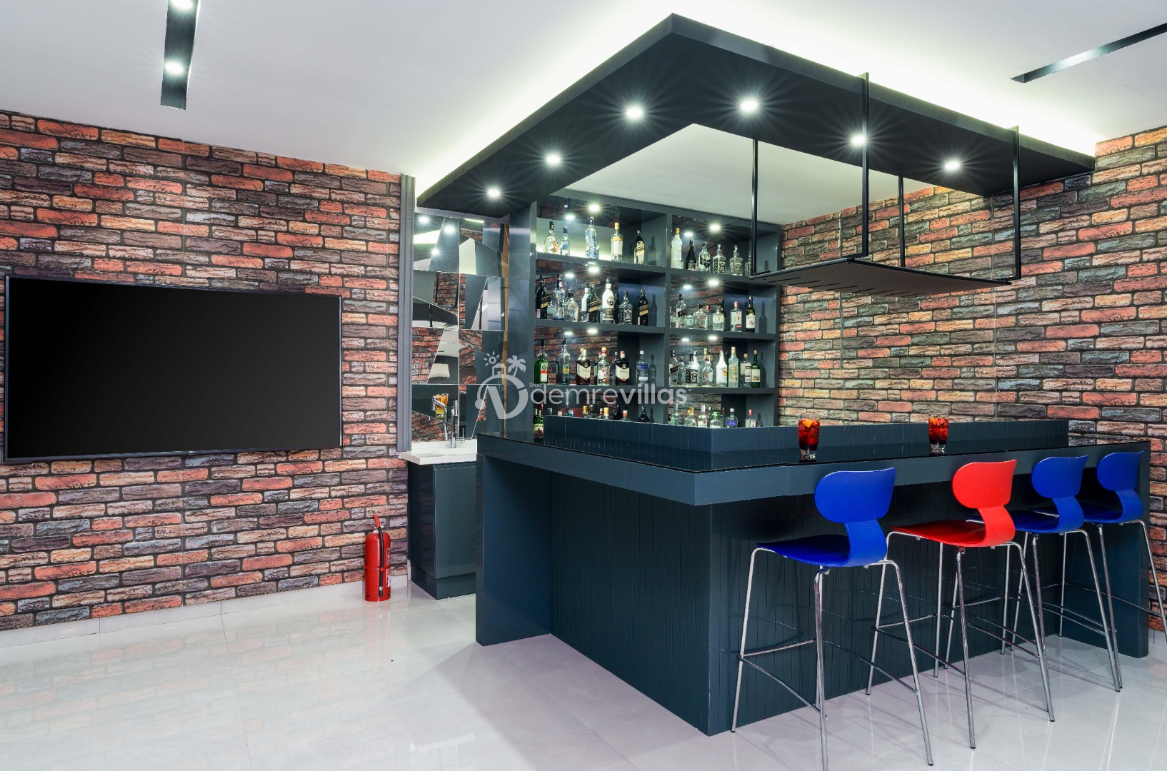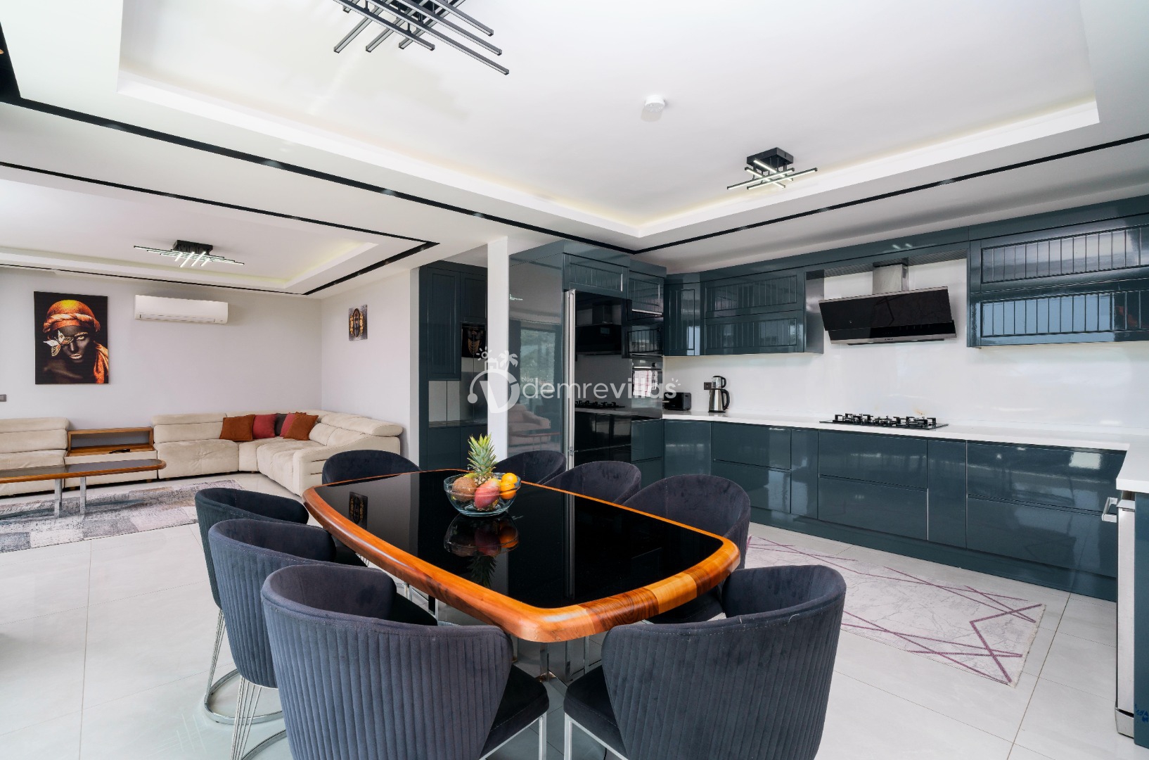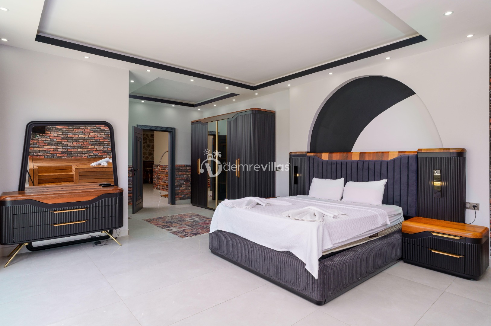 Modern oturma grubu, TV, masa ve sandalyeler, klima, bilardo, langırt, sinema odası, sauna, hamam bulunmaktadır.