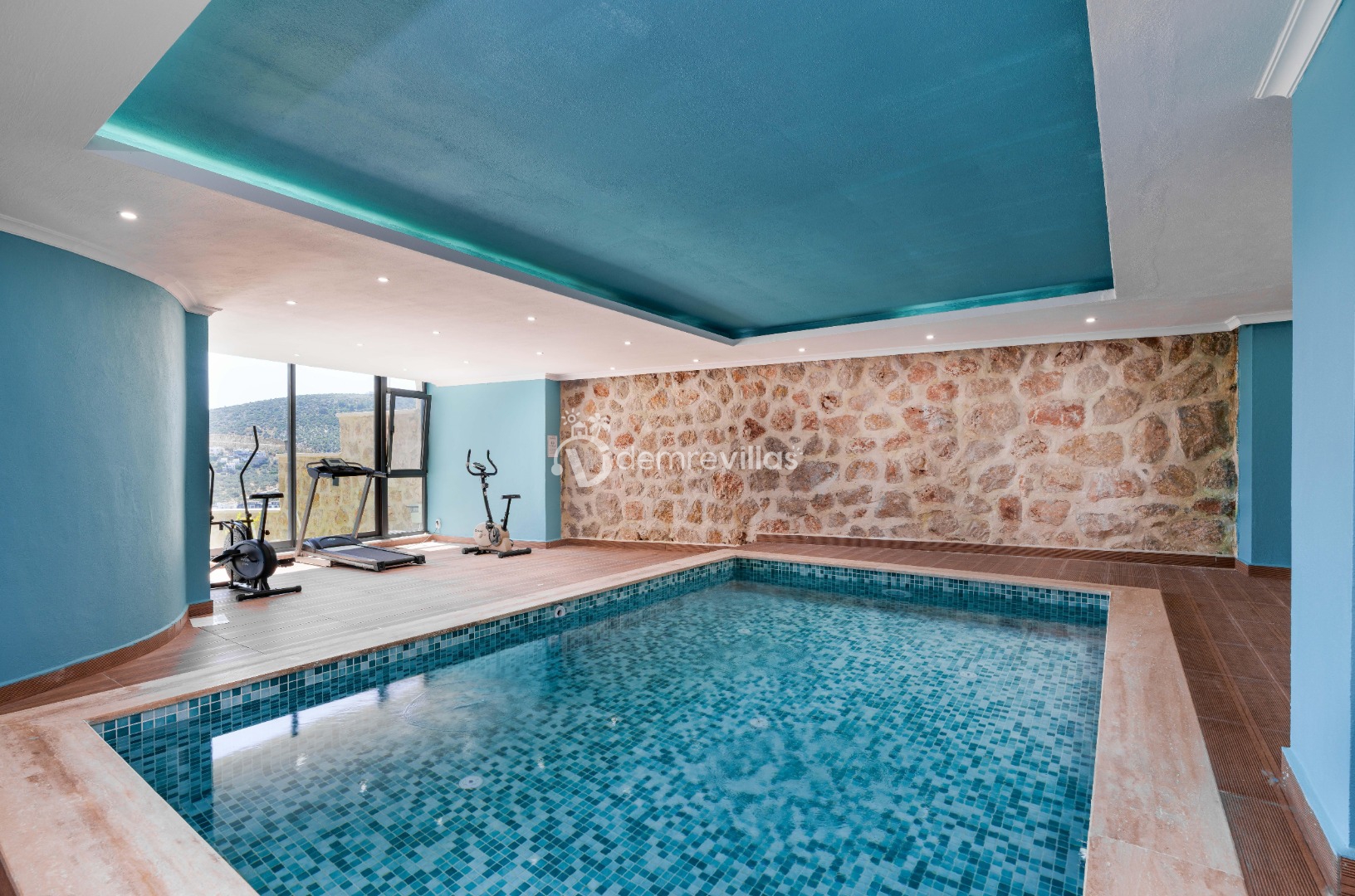 Villamızın kapalı havuzunun bulunduğu yerde spor aletleri de vardır. Çok alternatifli Villa, geniş aileler ve geniş arkadaş grupları için oldukça lüx tasarlanmış olup küçük misafirlerimiz için de çocuk havuzu bulunmaktadır.