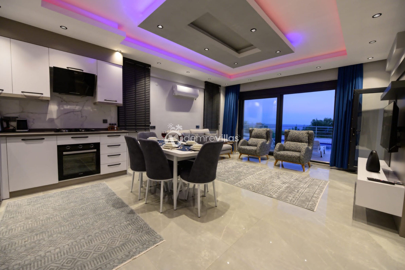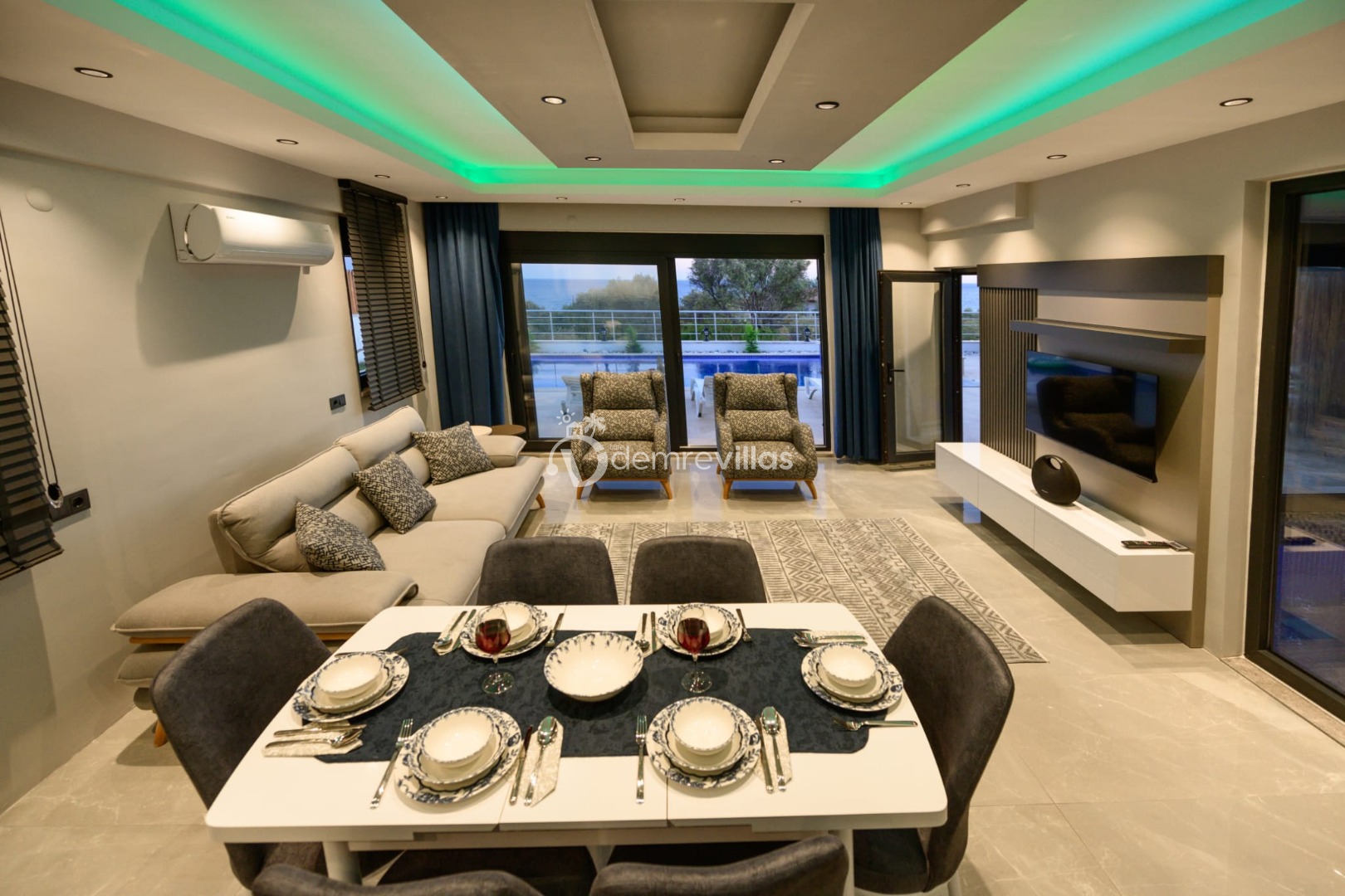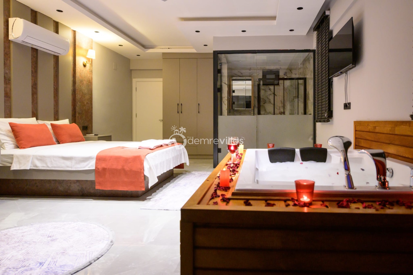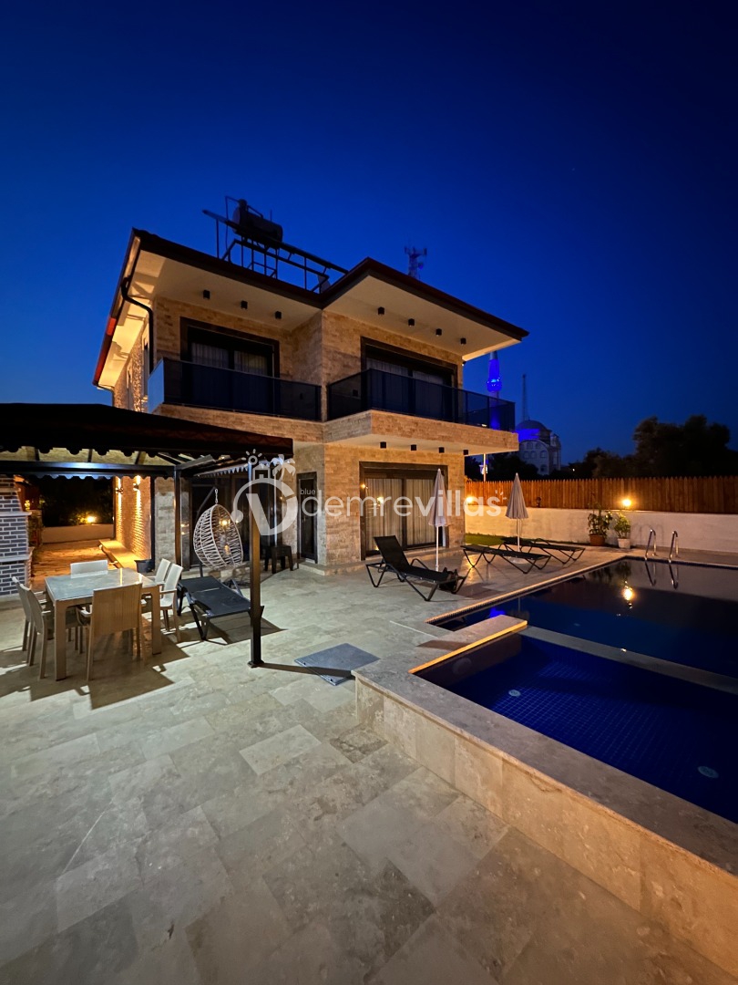Doğa ve Deniz manzaralı olan villamız Demre merkezden yaklaşık 2 km uzaklıktadır. 2 adet yatak odası bulunmakta olup 1 odasında jakuzi ve zemin katta kapalı havuzu ve saunası bulunmaktadır.Korunaklı havuzu ile balayı çiftleri ve muhafazakâr aileler için ideal bir villamızdır. Ayrıca villamızda çocuklu aileler için çocuk havuzu bulunmaktadır.