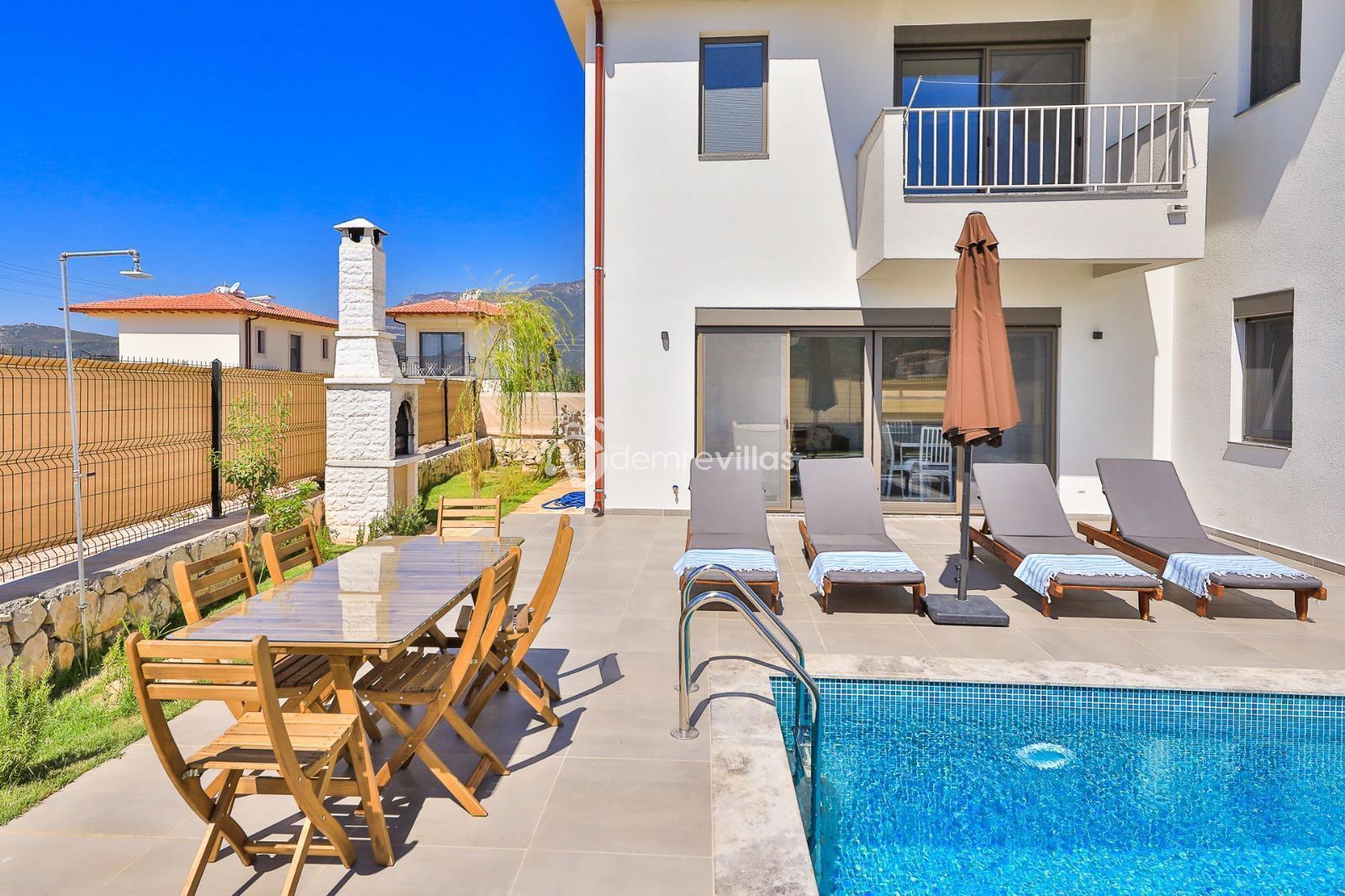 Kaş çukurbağ bölgesinde konumlanmış, geniş aileler ve büyük arkadaş grupları için özel olarak tasarlanmış bir tatil villasıdır. Bu villa, 6 kişilik konaklama kapasitesiyle, geniş yaşam alanları ve zarif tasarımıyla dikkat çeker. Dalaman Havalimanı'na 156 km uzaklıkta bulunan bu villa, en yakın plaja 9 km uzaklıktadır.