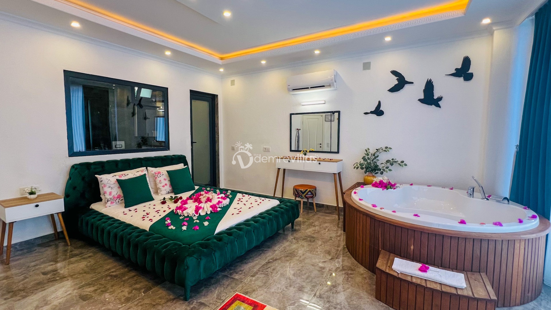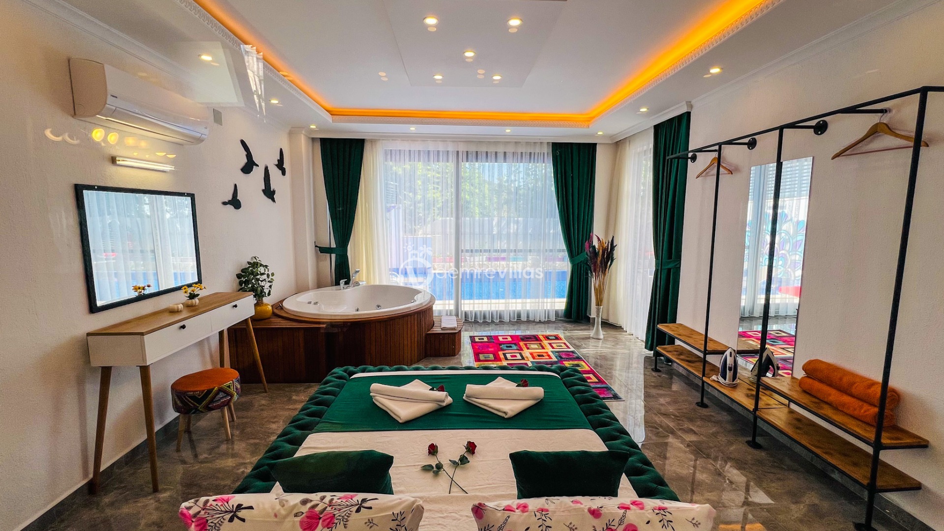 Villamızın yatak odasında bulunan jakuzisinde rahatlayabilir, yılın bütün yorgunluğunu üzerinizden atabilirsiniz. Sizler için herşeyin düşünülmüş olduğu villamızda sizlere sadece tatilin tadını çıkarmak kalıyor.