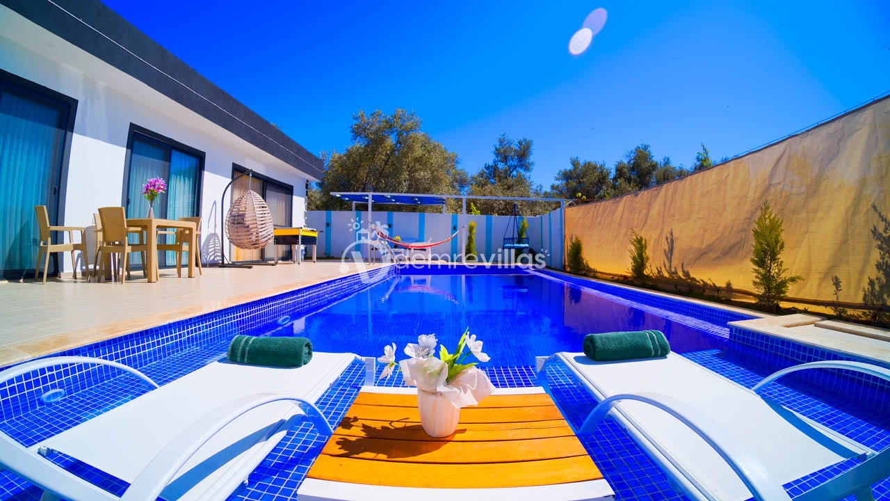 Antalya Kaş Kalkan'ın Üzümlü mevkiinde konumlanmış Kiralık Balayı Villasıdır.