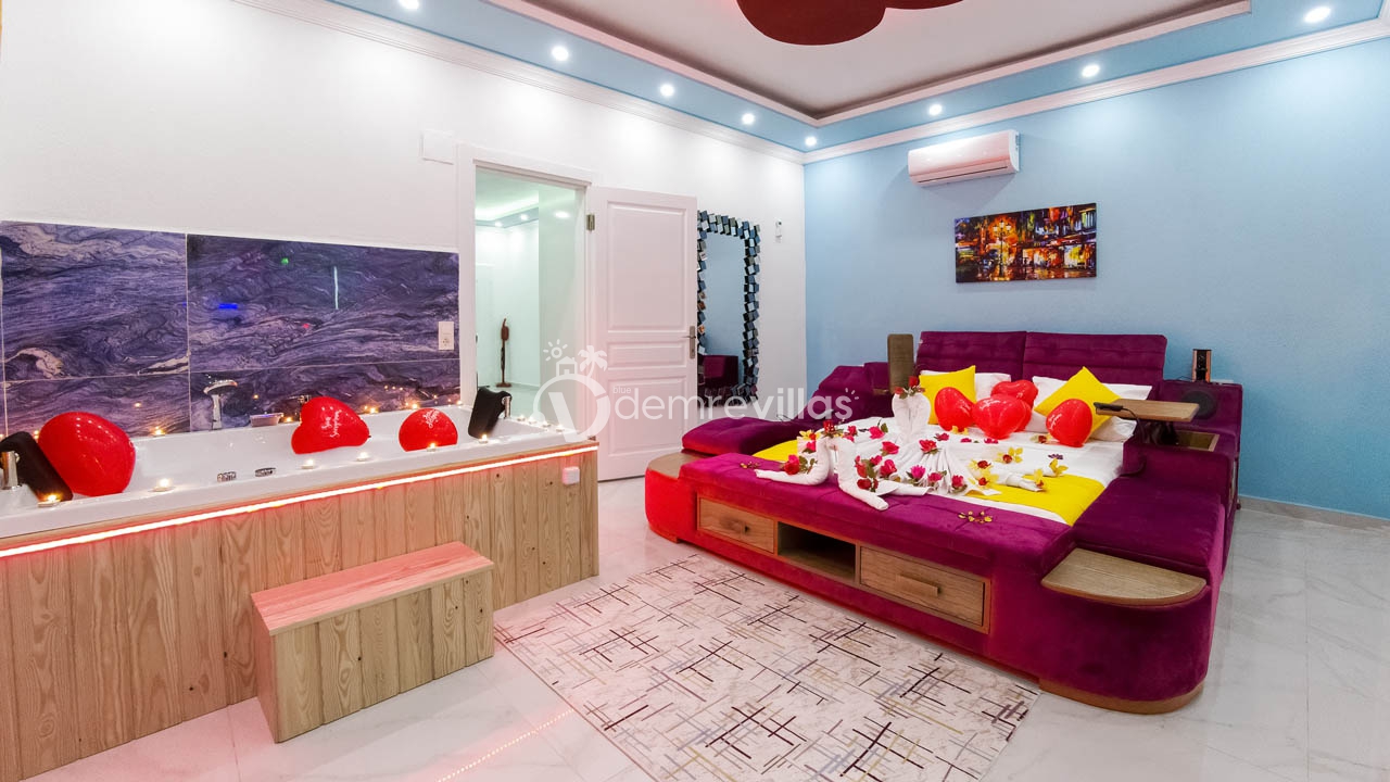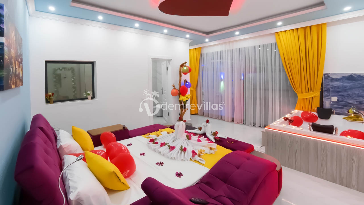 Yatak Odası : 1 adet son tasarım ultra lüks çift kişilik akıllı yatak, komodin, jakuzi, ebeveyn banyosu, klima, makyaj masası ve giyinme dolabı bulunmaktadır.