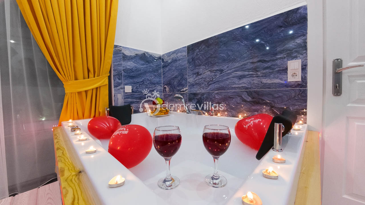 Bütün bir yılın yorgunluğunu atmanız için size sunduğu ayrıcalıklardan birisi, yatak odasında Jakuzinin bulunmasıdır. Doğa Manzarasıyla iç içe olan Villa doğanın mis gibi havasını içine çekerken, havuz başında kahvaltı keyfini de sizlere sunmaktadır.