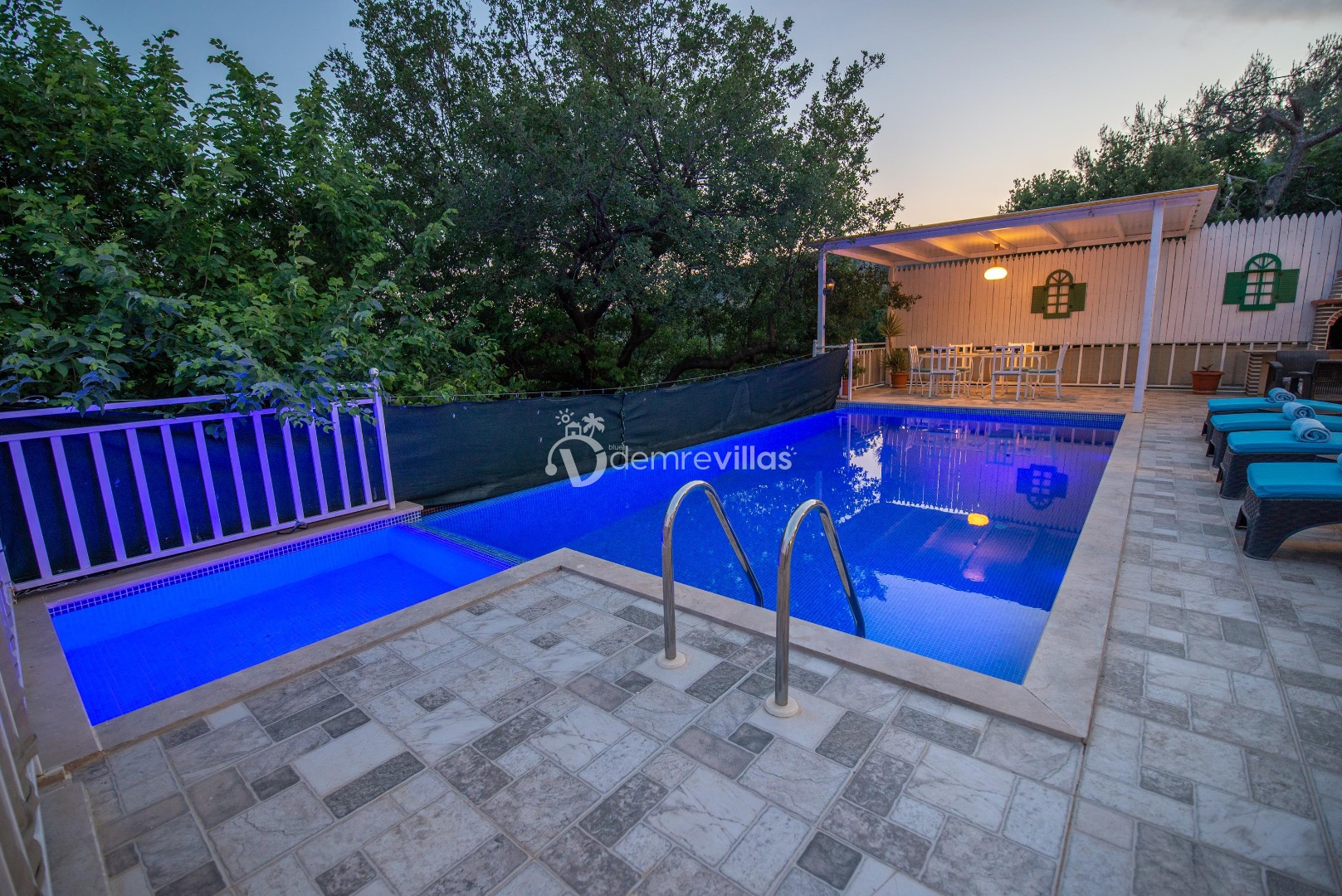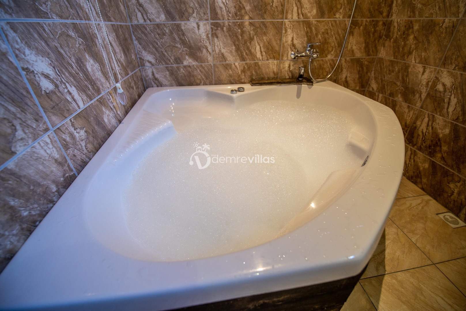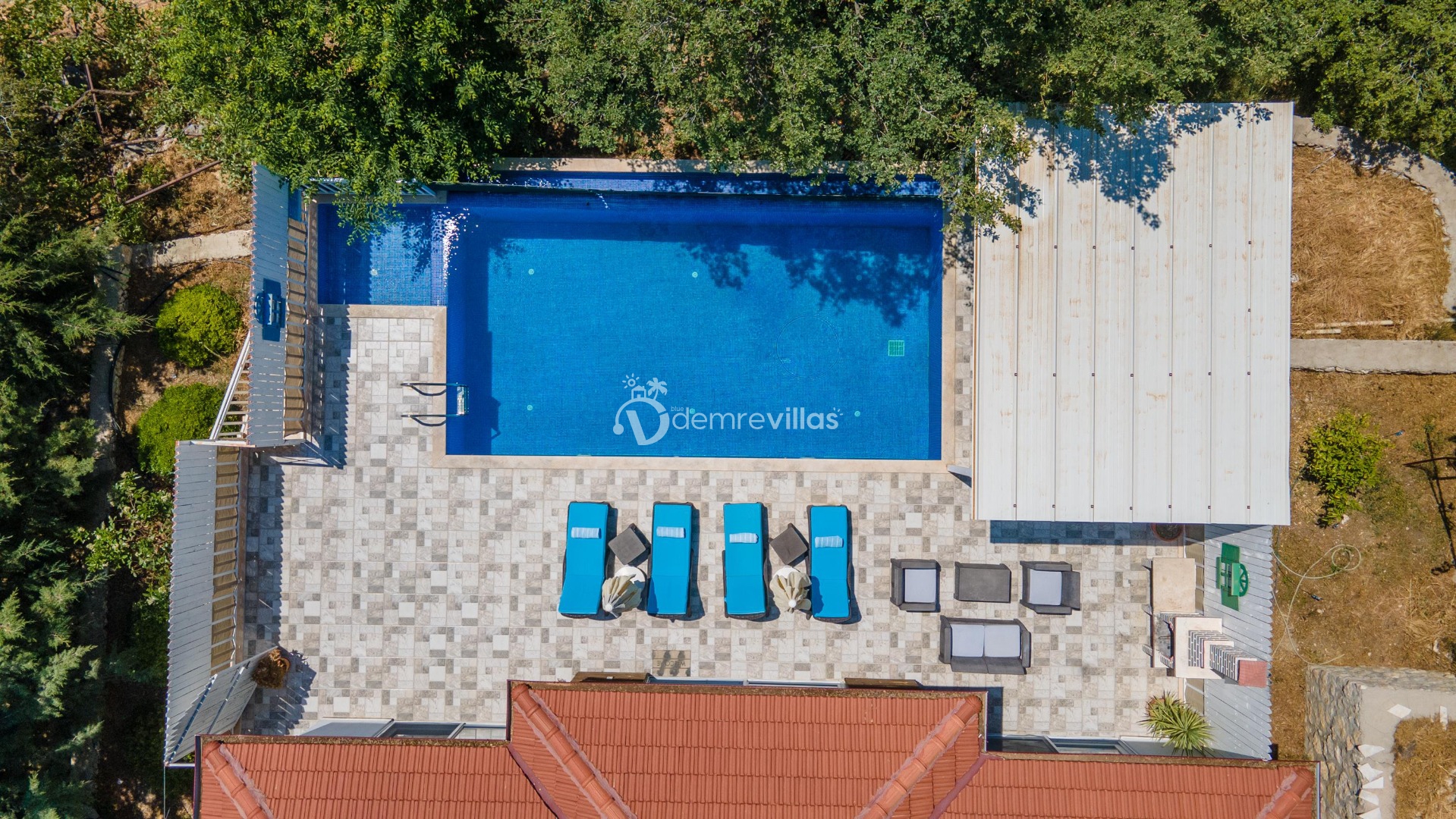 Doğa içerisinde bir konuma sahip olan evimizin çocuk havuzu da bulunmaktadır. Mutluluk garantili bu evimizin hem ana yatak odasının içerisindeki banyosunda hem de havuz terasında jakuzisi bulunmaktadır. Konumundan dolayı yemyeşil bir manzaraya sahip olan villamızda çok huzurlu bir tatil geçirebilirsiniz.