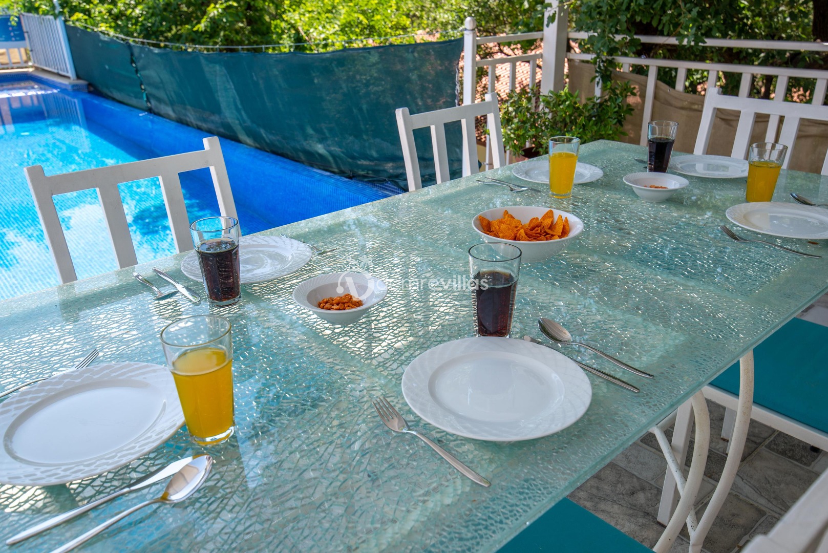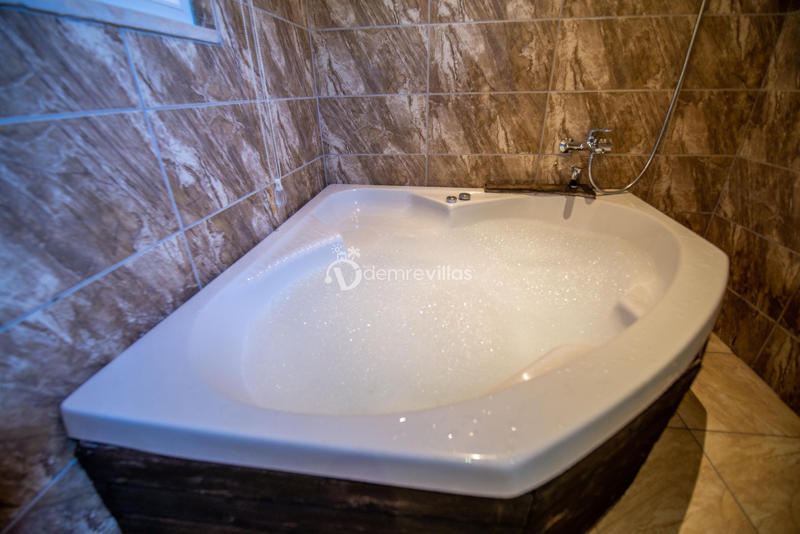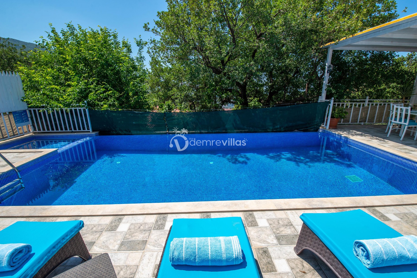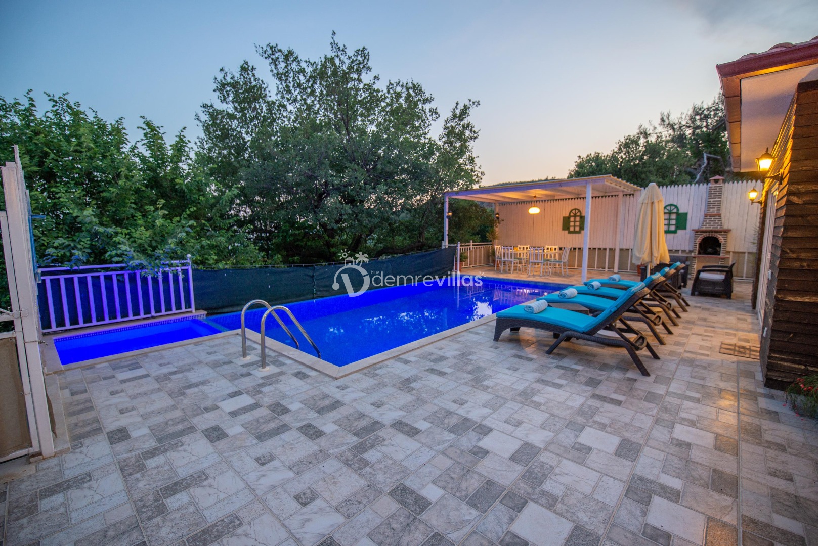 Doğa içerisinde bir konuma sahip olan evimizin çocuk havuzu da bulunmaktadır. Mutluluk garantili bu evimizin hem ana yatak odasının içerisindeki banyosunda hem de havuz terasında jakuzisi bulunmaktadır. Konumundan dolayı yemyeşil bir manzaraya sahip olan villamızda çok huzurlu bir tatil geçirebilirsiniz.
