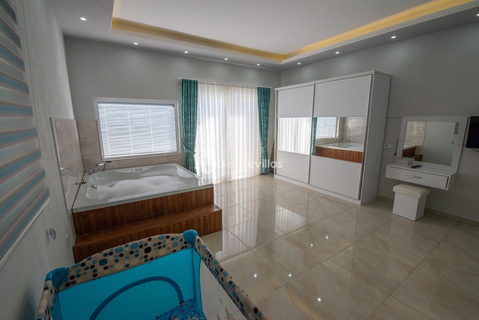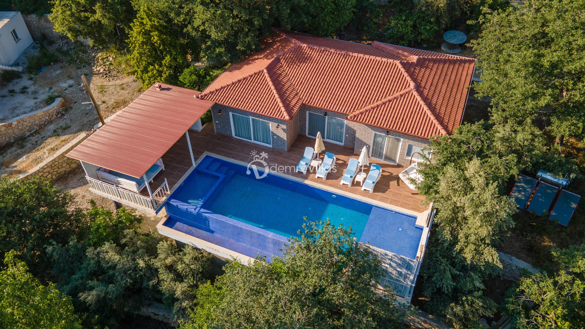 Geniş bir iç mekana sahip villamızın, zevkli bir iç tasarımı bulunmaktadır. Bahçesinde bulunan çardaktan panaromik bir deniz ve doğa manzarası sizi beklemektedir. Sığ havuzu, jakuzisi ve çok geniş müstakil yüzme havuzu ile size çok huzurlu ve özel bir tatil vaat etmektedir.