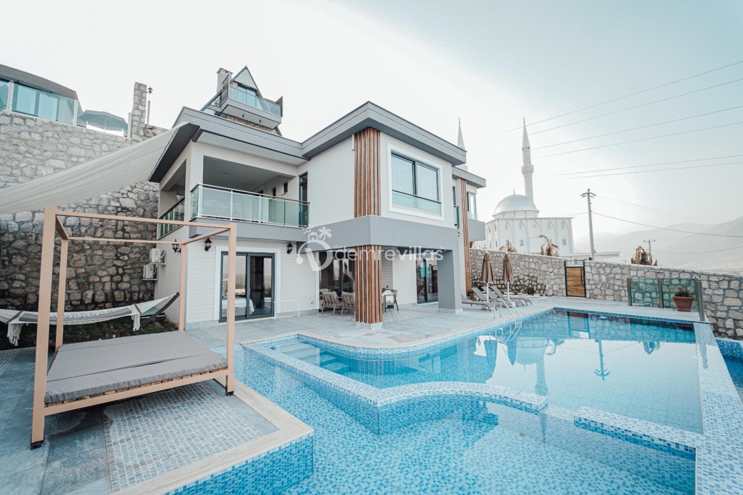 Jakuzili 2 yatak odası, 1 engelsiz banyolu yatak odası , 1 banyolu yatak odası, sinema odası , salon ve tam donanımlı mutfağı, verandalı olup geniş ve ferah bir villadır. Bahçesinde, havuzunda keyifle ve huzurla vakit geçirebilirsiniz.