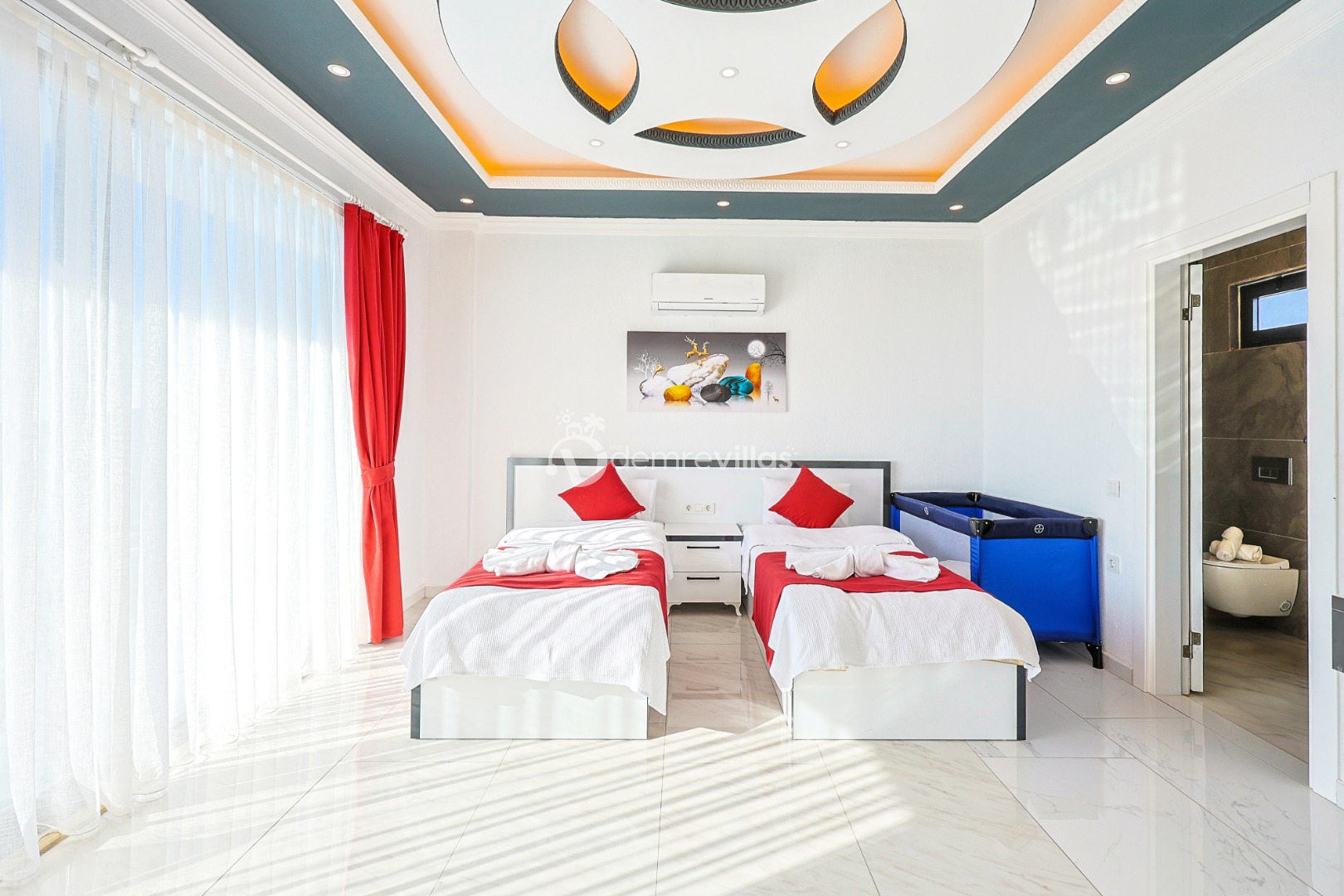 Muhafazakar villa ve balayı villa kategorisinde yer alan villamız, 2 yatak odası ile 4 kişilik konaklama kapasitesine sahiptir.Size özel bir villada tatil fırsatı sunan villamızın, denize mesafesi yaklaşık 12 km.’dir.