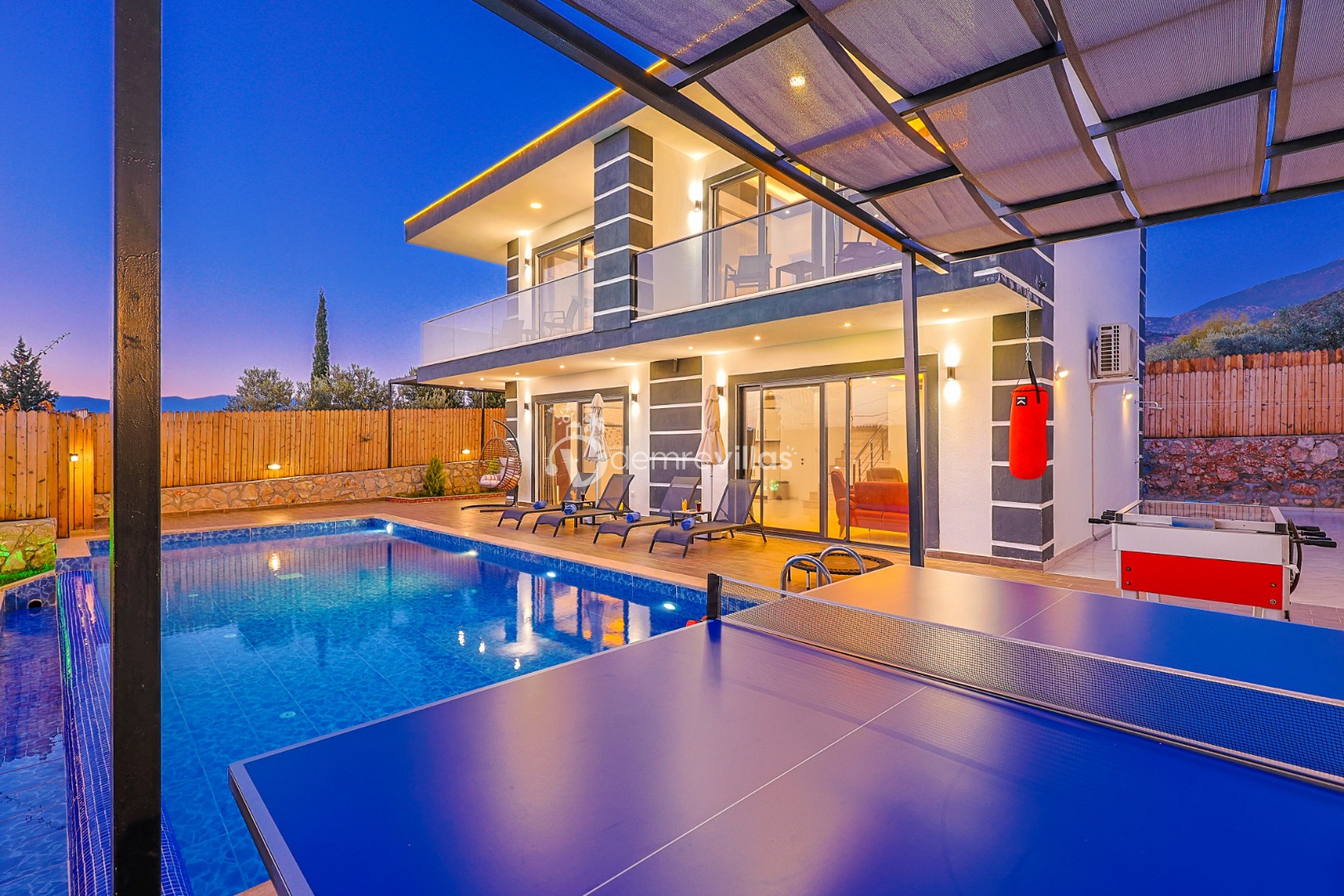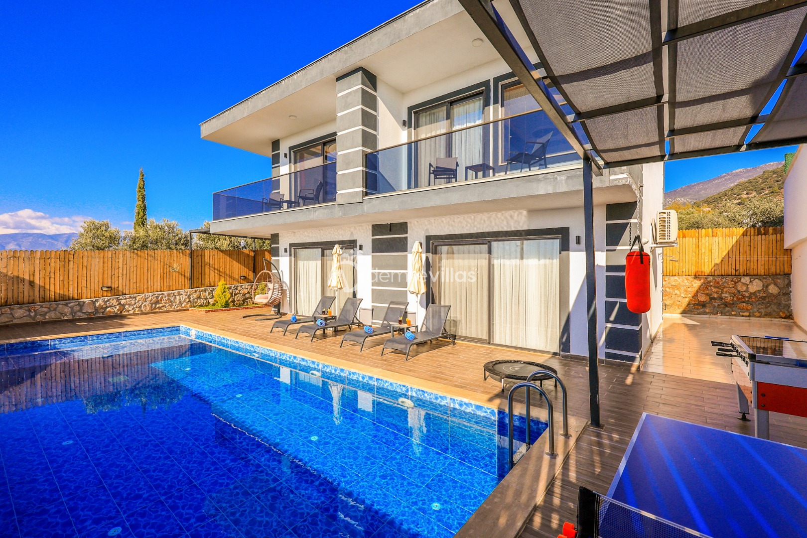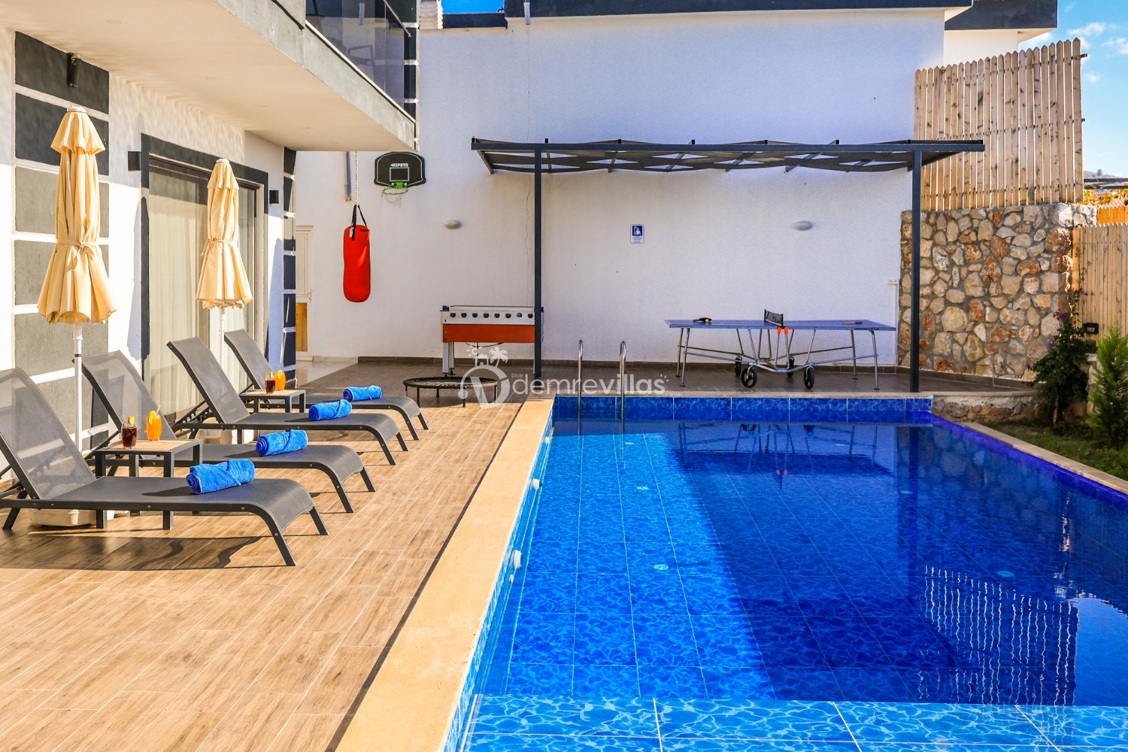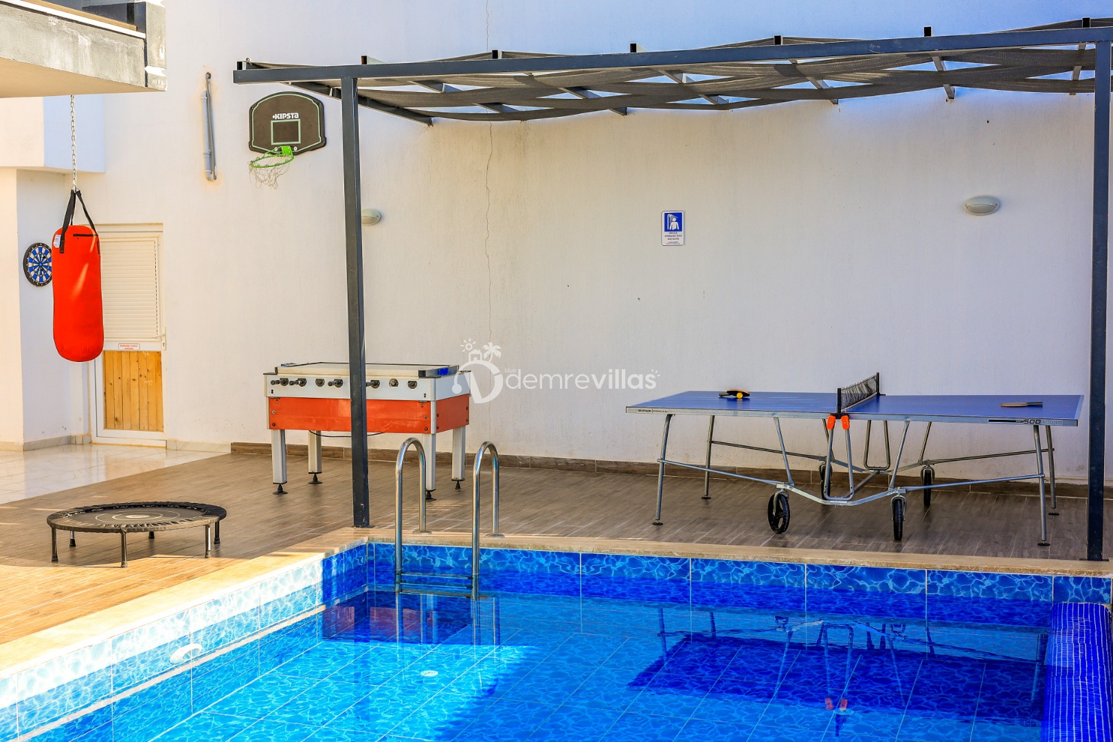 Siz değerli misafirlerimizin konforu düşünülerek yatak odasında 2 kişilik jakuzide bulunmaktadır.Ek olarak havuz terasında sevdiklerinizle güzel vakitler geçirebileceğiniz masa tenisi, langırt, trambolin, dart, boks torbası ve mini basket potasıda yer almaktadır.
