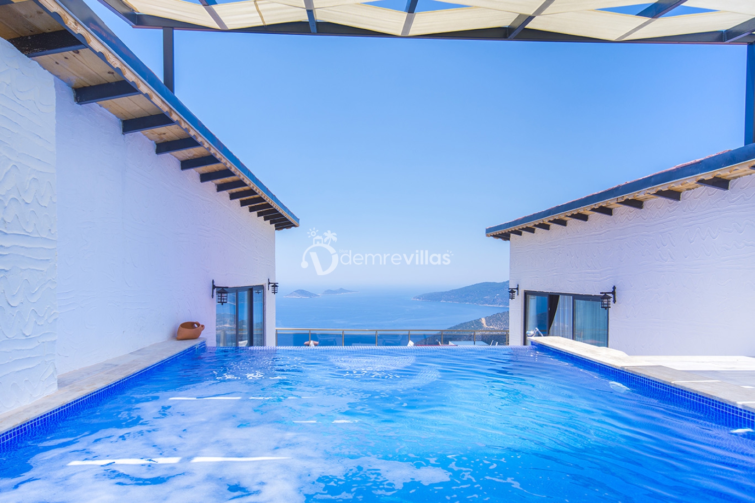 Antalya Kalkan Kördere mevkiinde bulunan 1 yatak odalı 2 kişi kapasiteli kiralık tatil villasıdır. Yatak odasında jakuzi bulunan aynı zamanda eşsiz bir deniz manzarasına sahip olan villamız muhteşem bir balayı tatili için ideal bir seçimdir.