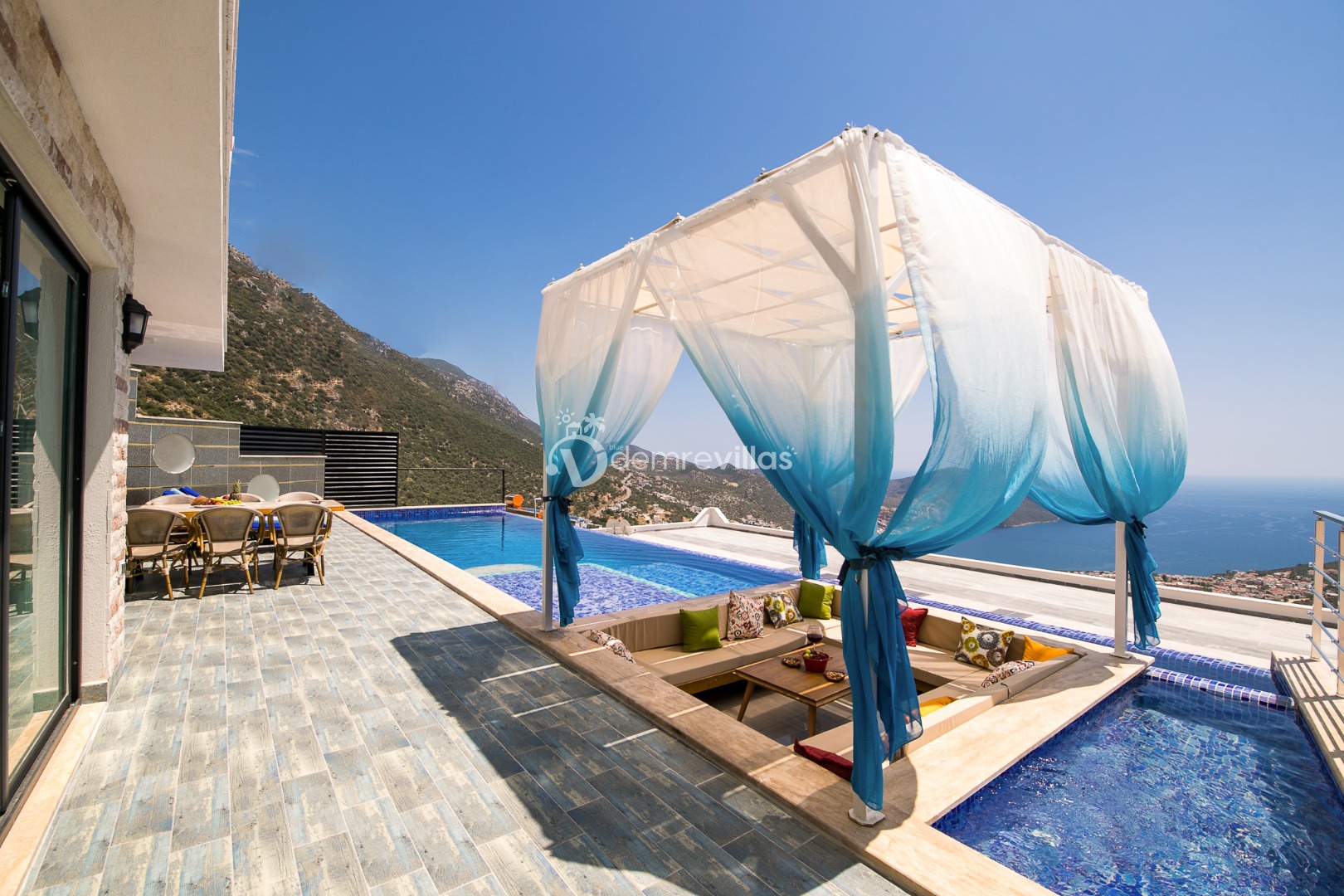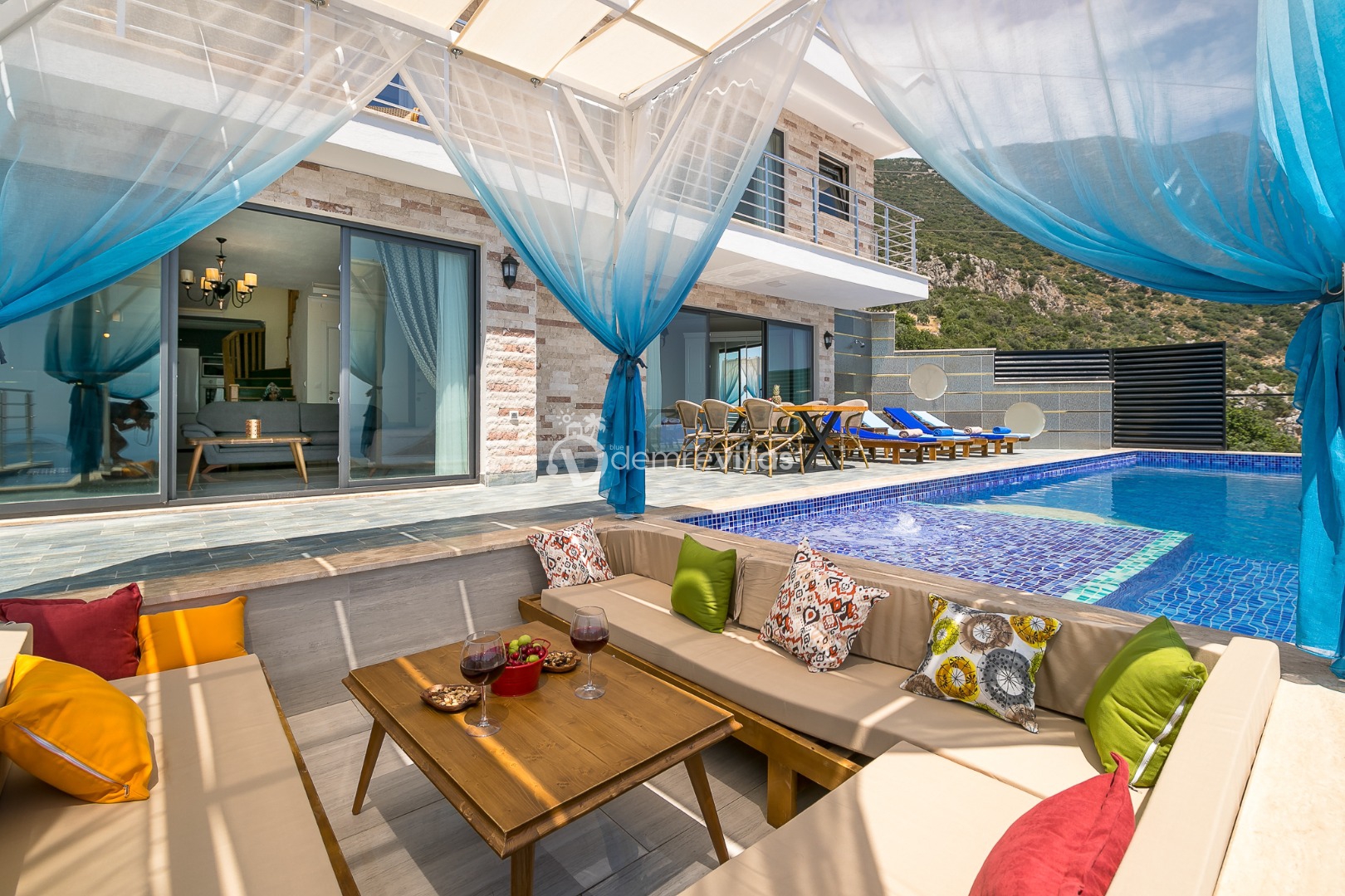 Kalkan Akbel bölgesinde eşsiz deniz ve doğa manzarasını sessiz, sakin, huzurlu bir ortamda lüks ve ayrıcalıklı detaylarıyla siz değerli misafirlerimizin, beğenisine sunan 3 yatak odalı, 6 kişi konaklama kapasiteli kiralık lüks villadır. Büyüleyici deniz ve doğa manzarasına sahip odalarıyla ön plana çıkan villada, akşamları sevdiklerinizle birlikte unutulmaz anlar yaşayabilirsiniz.