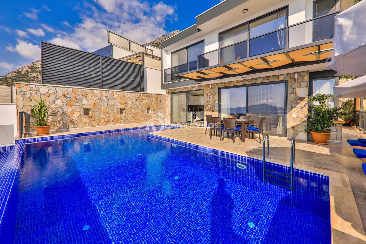 Balayı villası olarak da tercih edilen Villa muhteşem deniz manzarası gün batımı manzarası ile sizlere eşsiz bir tatil fırsatı sunmaktadır. Özel yüzme havuzu tamamen korunaklı olup dışarıdan gözükmemekte olup muhafazakâr aileler için ideal bir seçenektir.