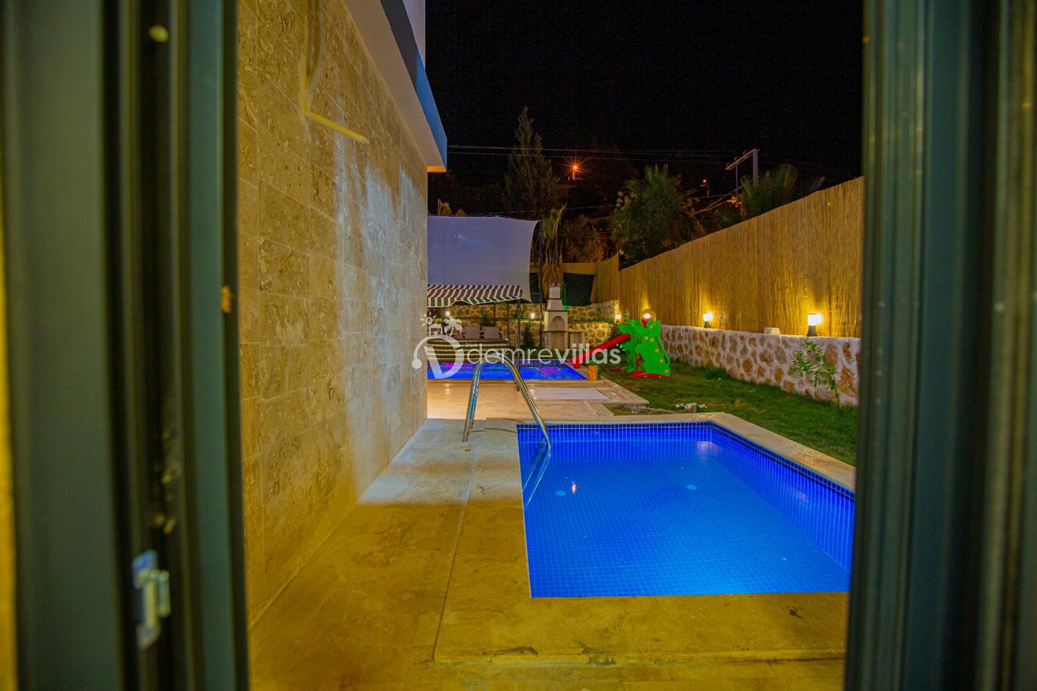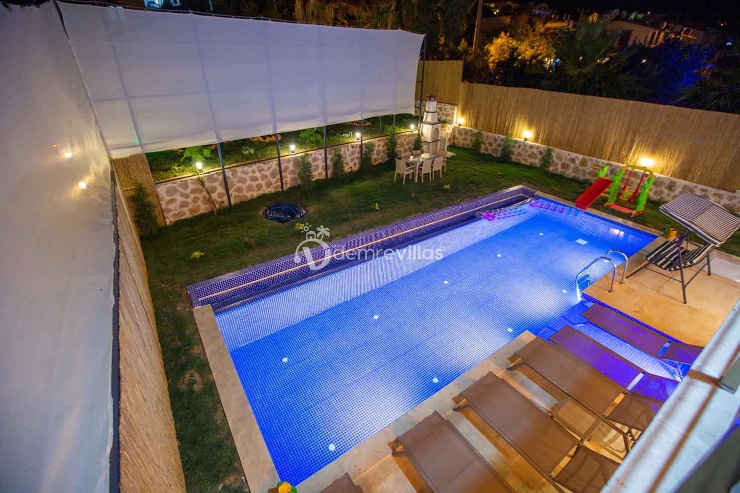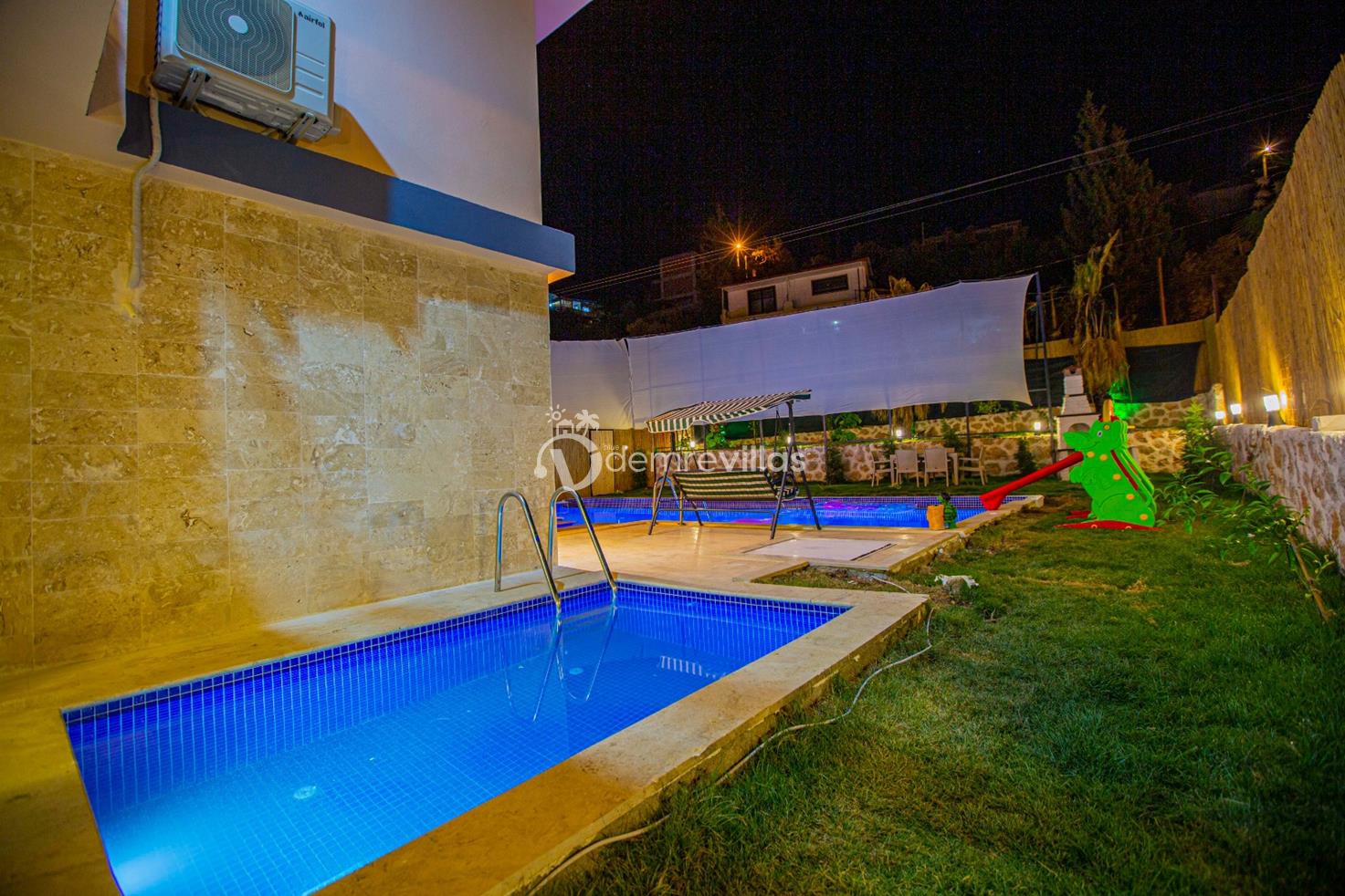 Havuz alanı ve bahçesi korunaklı olan villa Kumsal'ın bahçesinde çocuklu aileler için küçük bir oyun parkı ve çocuk havuzu mevcuttur.