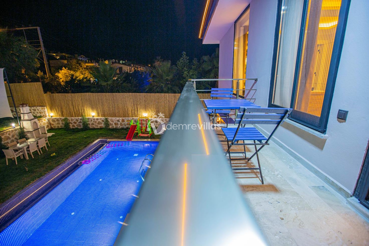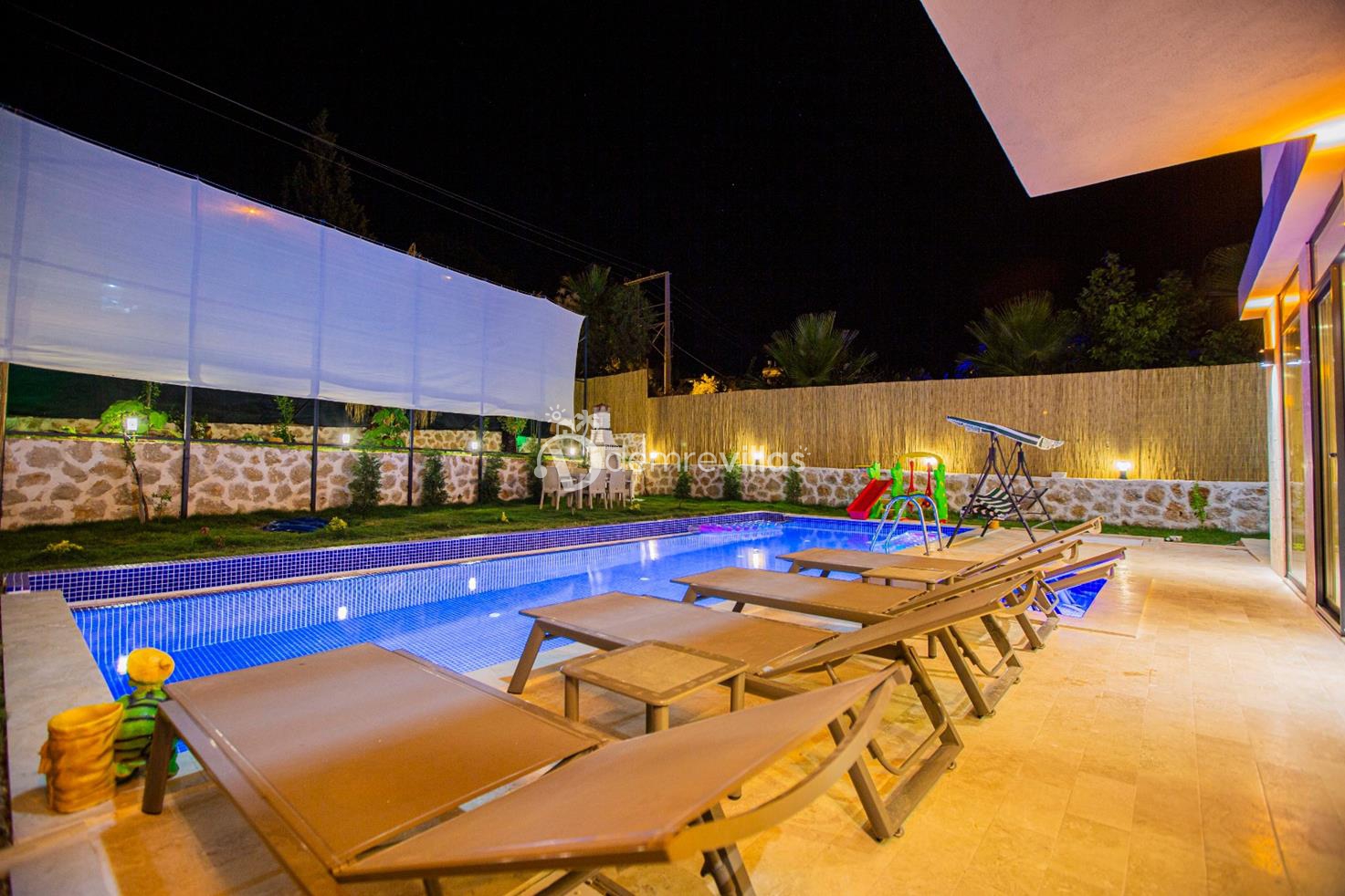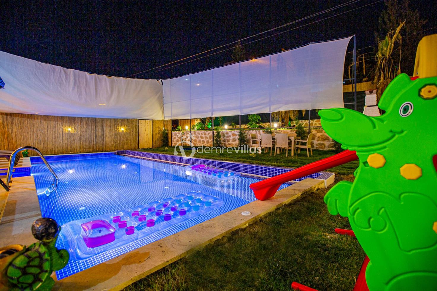 Havuz alanı ve bahçesi korunaklı olan villa Kumsal'ın bahçesinde çocuklu aileler için küçük bir oyun parkı ve çocuk havuzu mevcuttur.