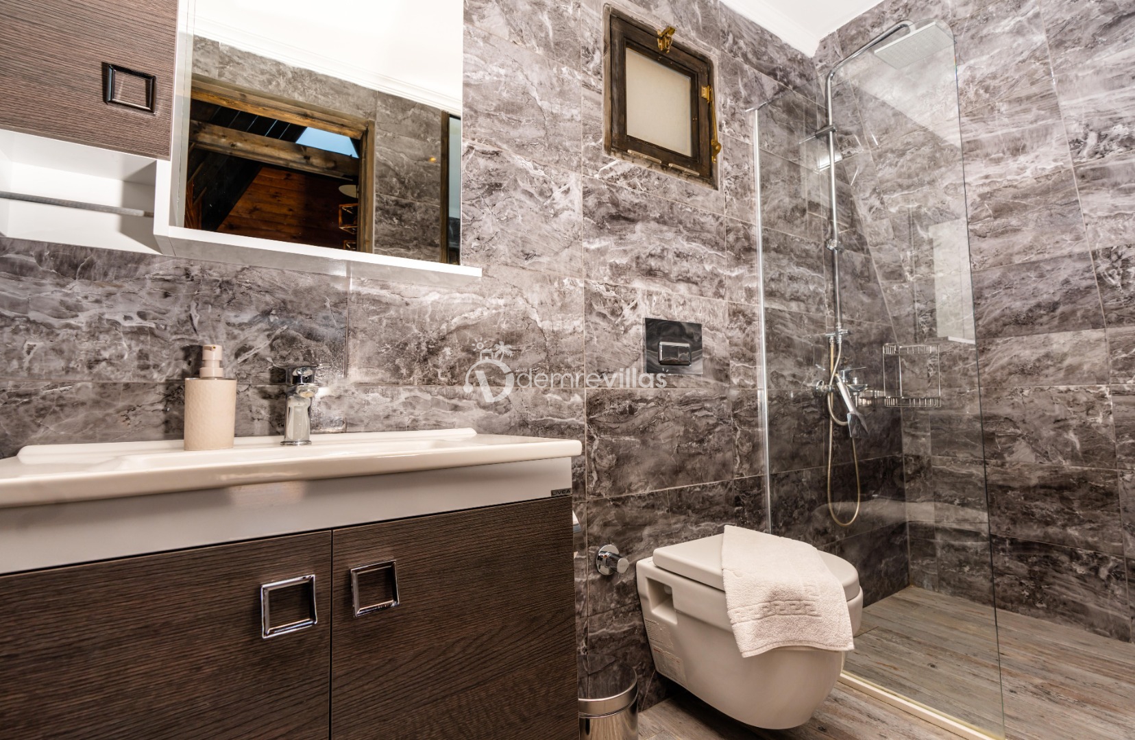 Coğrafi yapısı bakımında dağlık bir alana sahip olan bölgemizdeki villalarımız genel olarak yamaç üzerine kuruludur. Bu nedenle villalarımıza giderken yokuş yukarı çıkılmaktadır. Bu not sadece bu villa ile ilgili değildir. Tüm villalarımızda yazmaktadır.