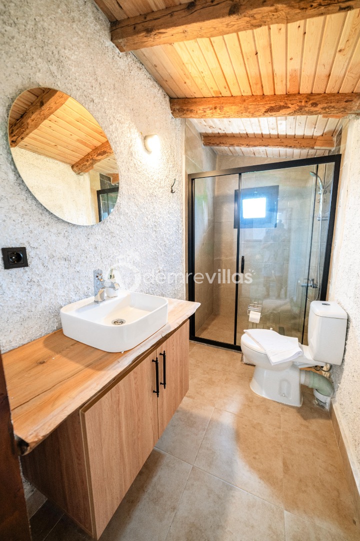 Coğrafi yapısı bakımında dağlık bir alana sahip olan bölgemizdeki villalarımız genel olarak yamaç üzerine kuruludur. Bu nedenle villalarımıza giderken yokuş yukarı çıkılmaktadır. Bu not sadece bu villa ile ilgili değildir. Tüm villalarımızda yazmaktadır.
