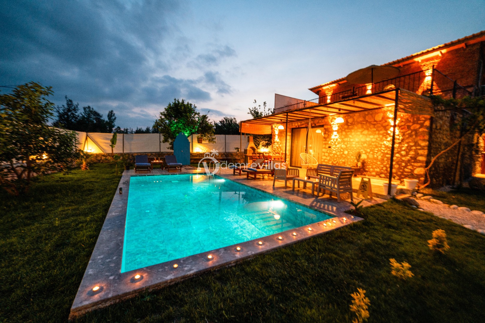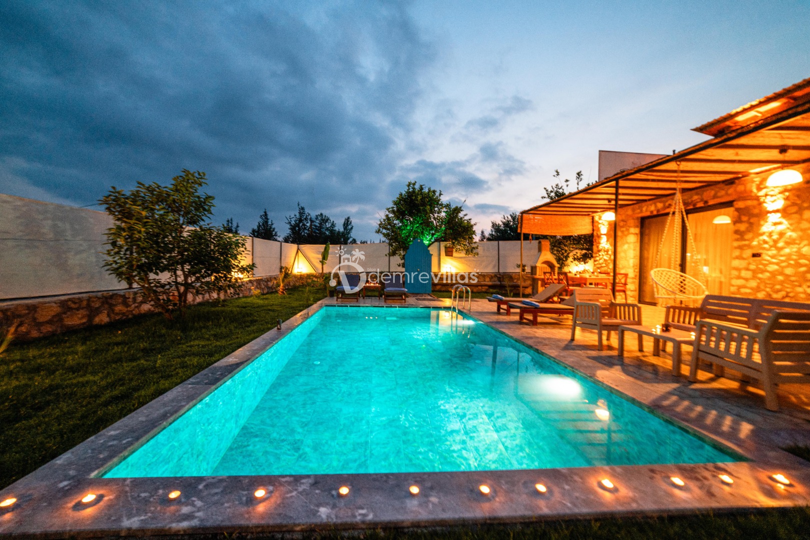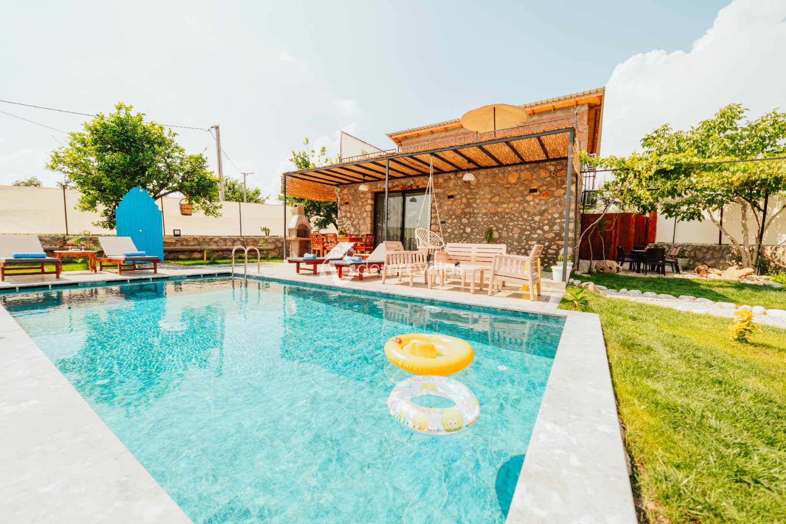 Seydikemer Kayadibi mevkiinde yer almakta olup 4 kişilik konaklama kapasitesine ve 2 yatak odasına sahiptir. Cennetten bir bahçeyi andıran villamız doğa içerisinde yer almakta olup perdeleme sistemiyle havuzu korunaklı hale getirilmiştir. Doyasıya izleyebileceğiniz manzarası ve yeşilliklerle bezenmiş bahçesiyle çekirdek aile ve arkadaş gruplarına ideal bir tatil fırsatı sunmaktadır.