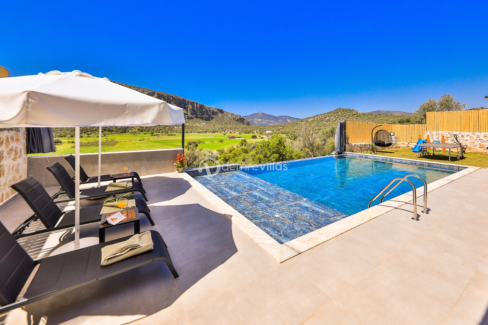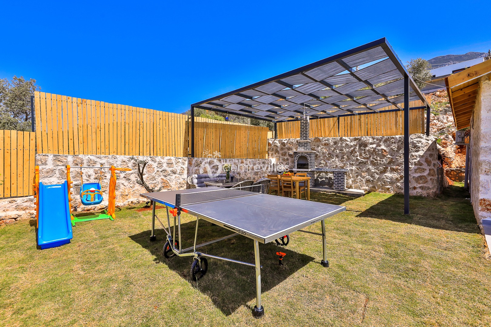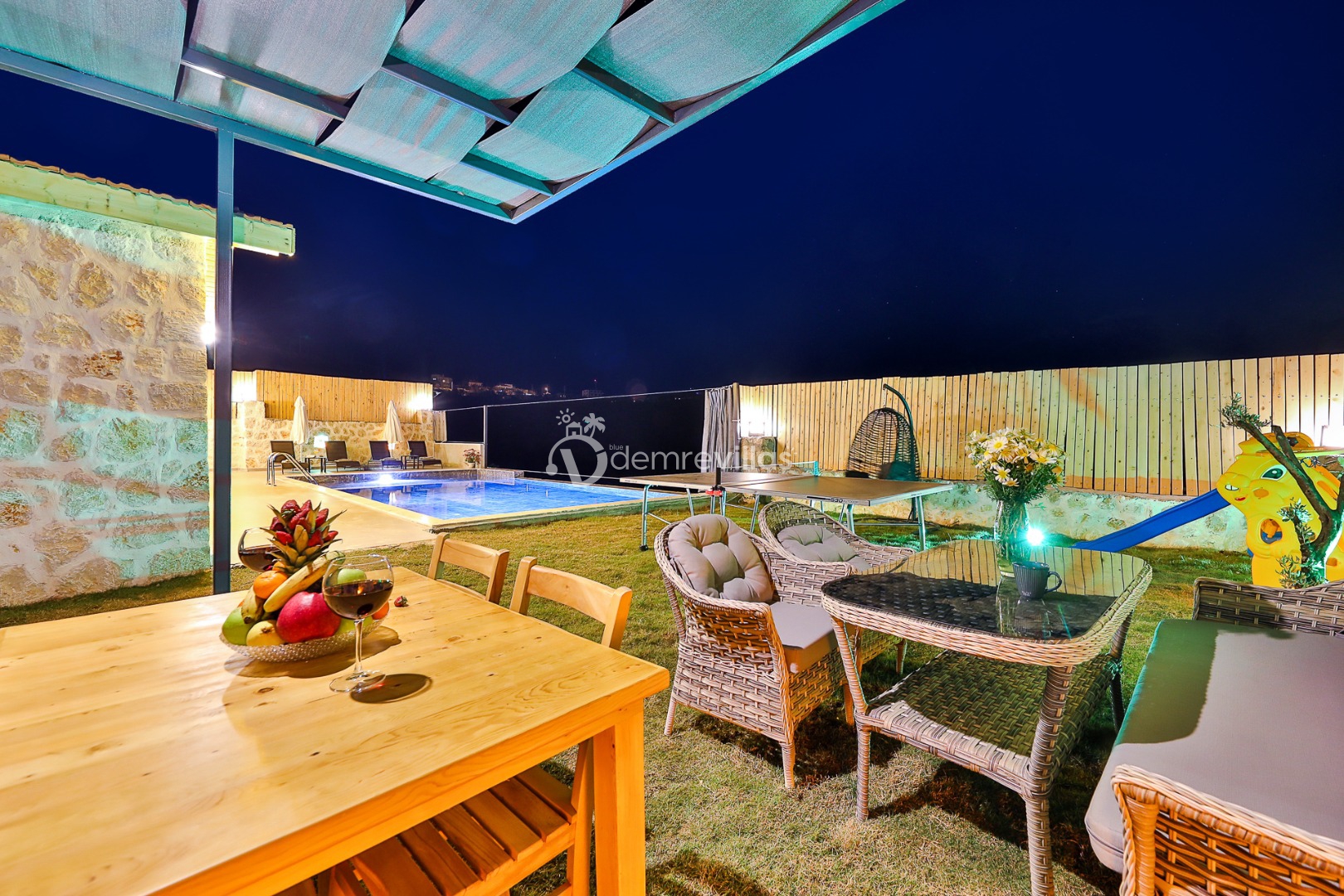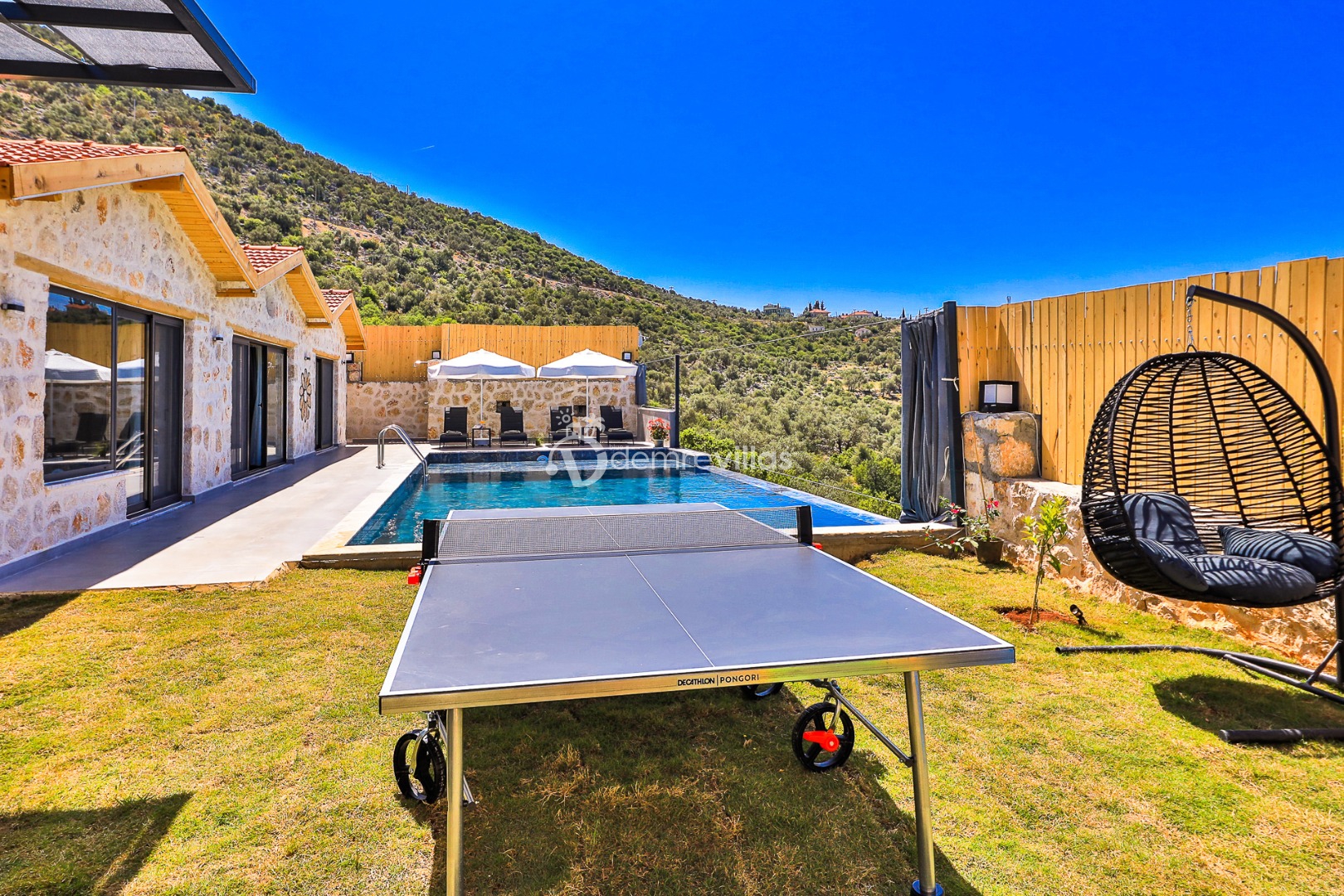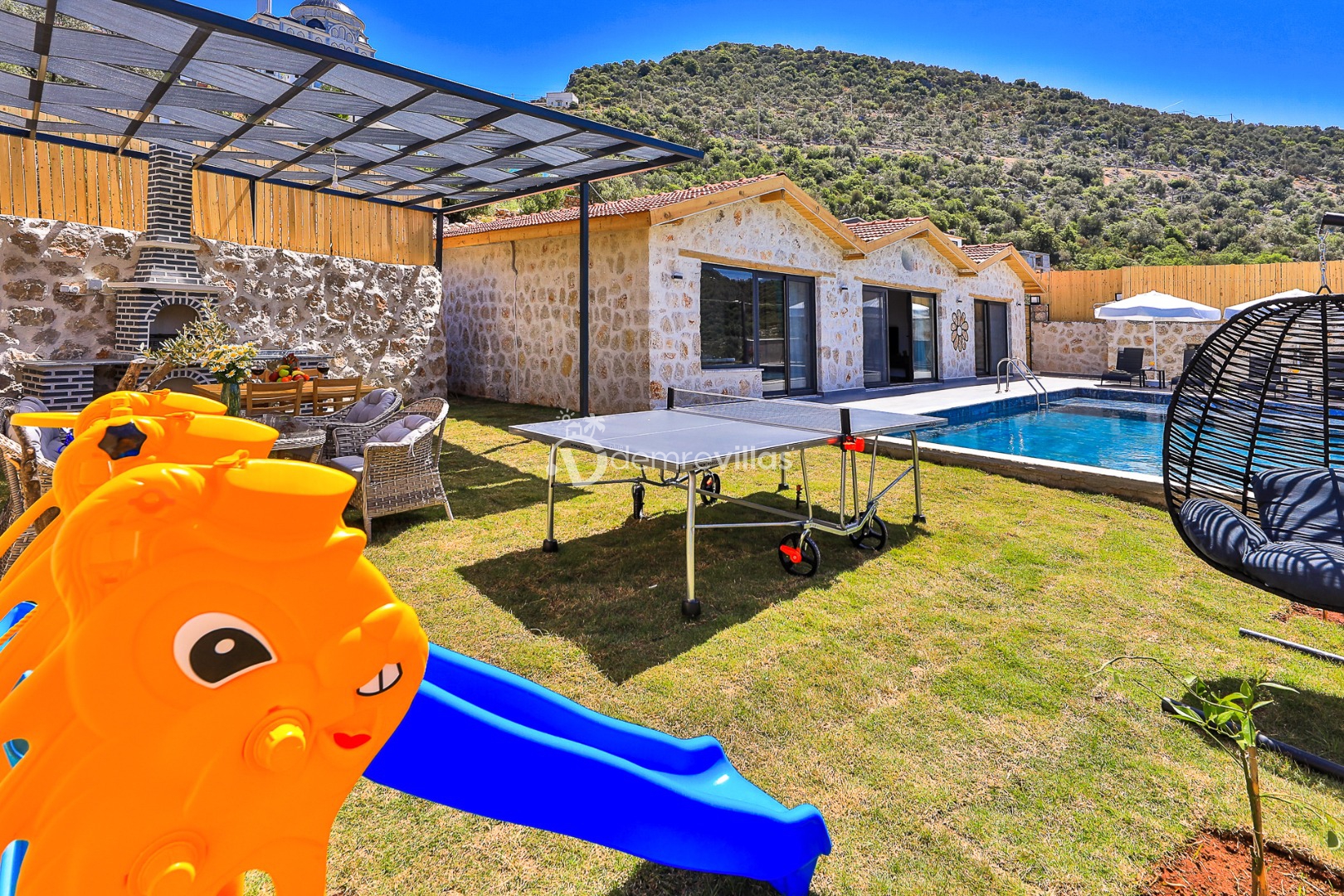 Yeşilliğin içerisinde Kalkan Ulugöl Bölgesi’nde yer alan villamız 2 yatak odalı ve 4 kişilik konaklama kapasitesine sahiptir. Villamızın korunaklı bahçesinde havuz, şezlong, oturma köşesi, masa tenisi, çocukların eğlenceli vakit geçirebileceği mini çocuk oyun alanı, yemek masası ve barbekü alanı yer almaktadır. Ahşap tasarımın hakim olduğu villa içerisindeki yatak odalalarından birinde ise jakuzi bulunmaktadır.