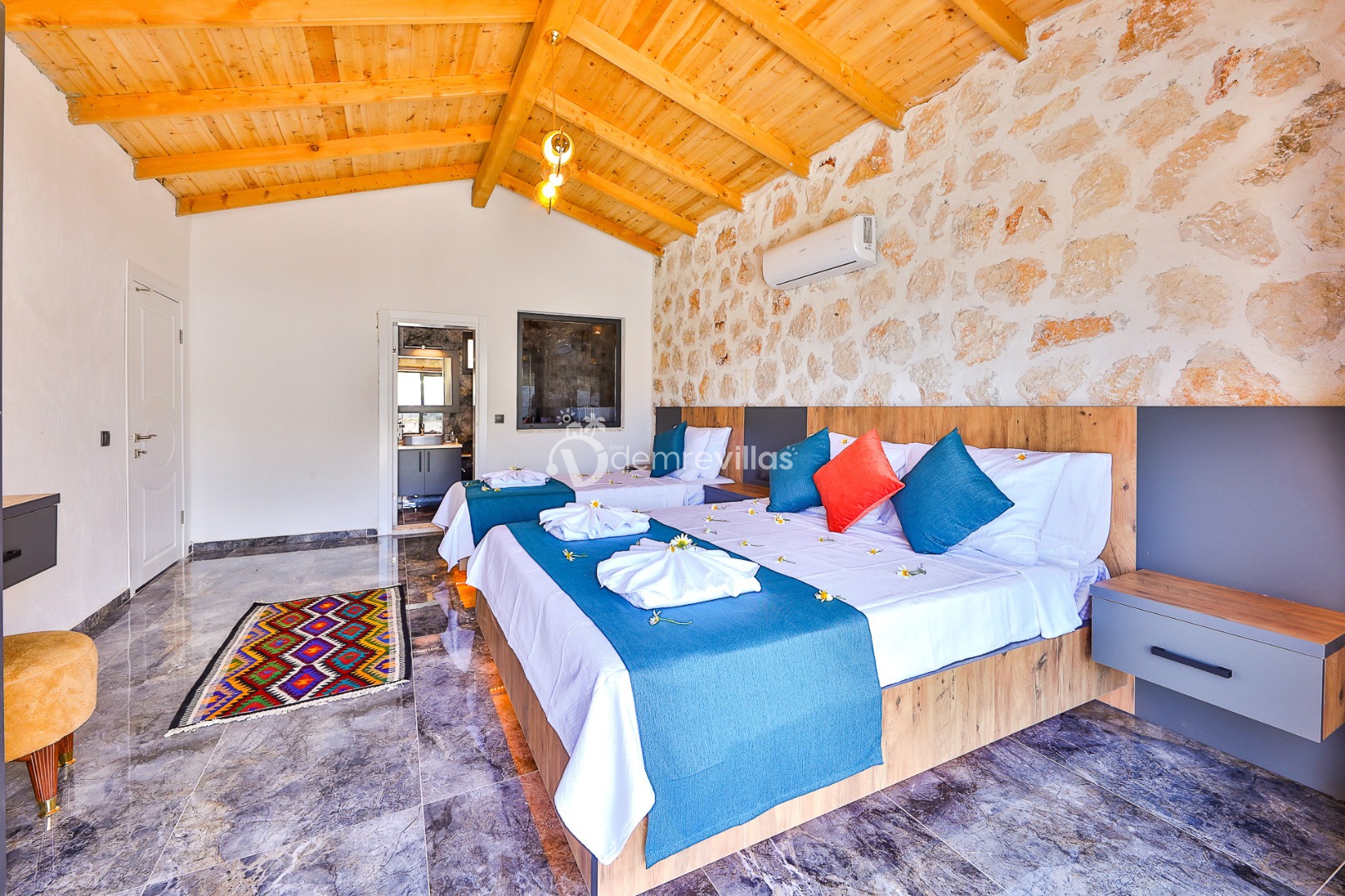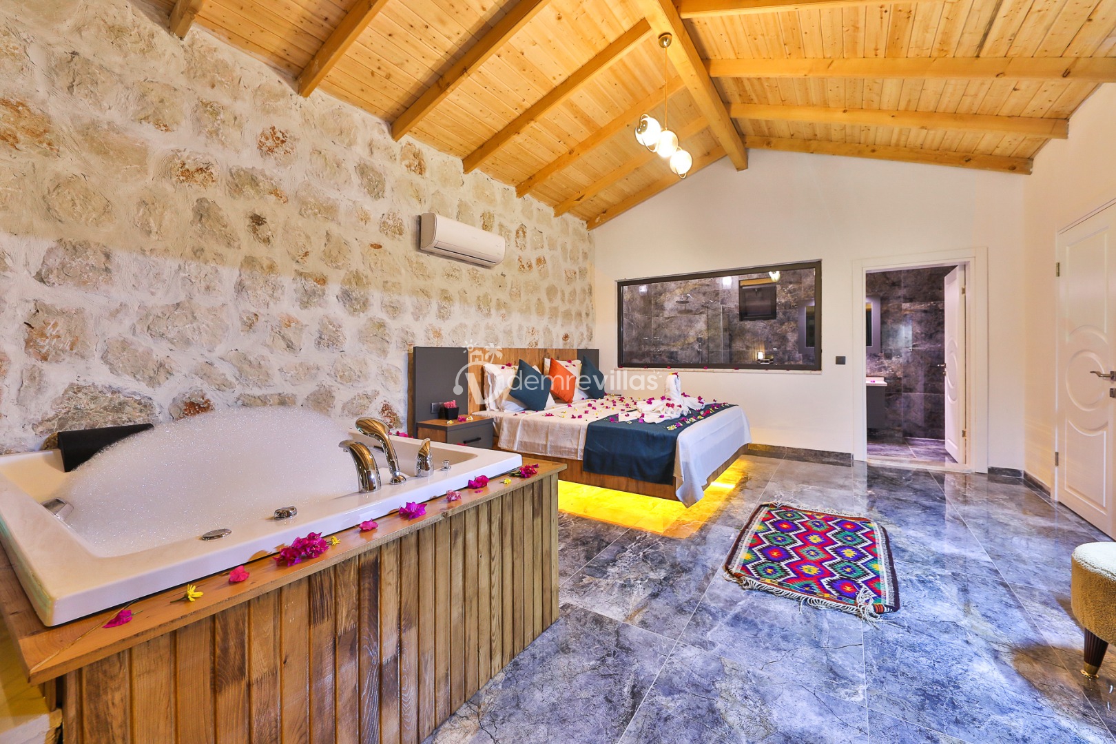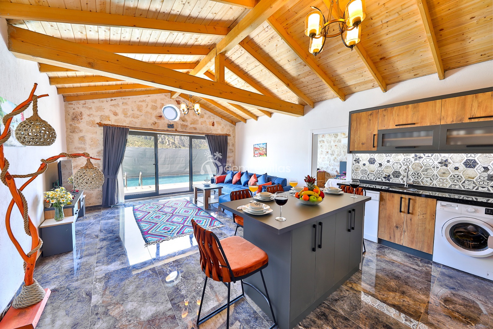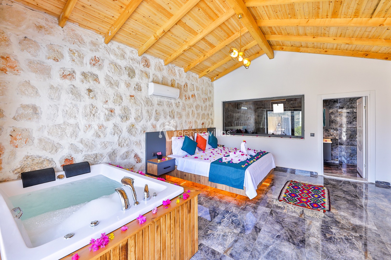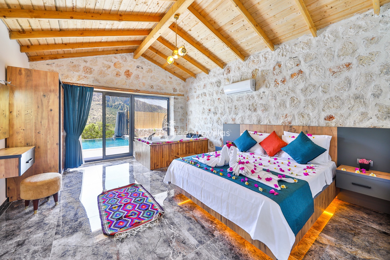 Yeşilliğin içerisinde Kalkan Ulugöl Bölgesi’nde yer alan villamız 2 yatak odalı ve 4 kişilik konaklama kapasitesine sahiptir. Villamızın korunaklı bahçesinde havuz, şezlong, oturma köşesi, masa tenisi, çocukların eğlenceli vakit geçirebileceği mini çocuk oyun alanı, yemek masası ve barbekü alanı yer almaktadır. Ahşap tasarımın hakim olduğu villa içerisindeki yatak odalalarından birinde ise jakuzi bulunmaktadır.