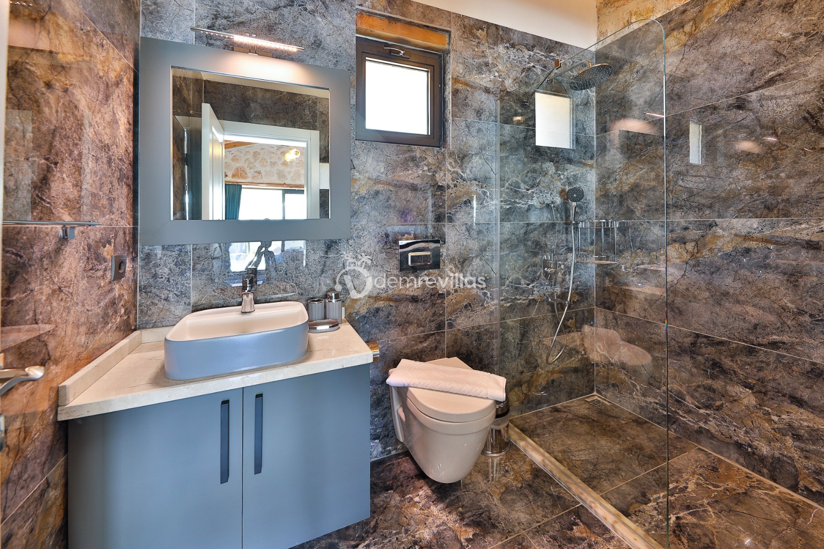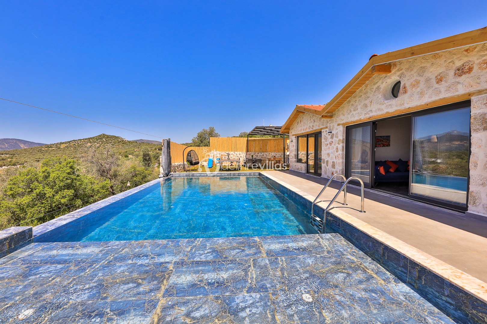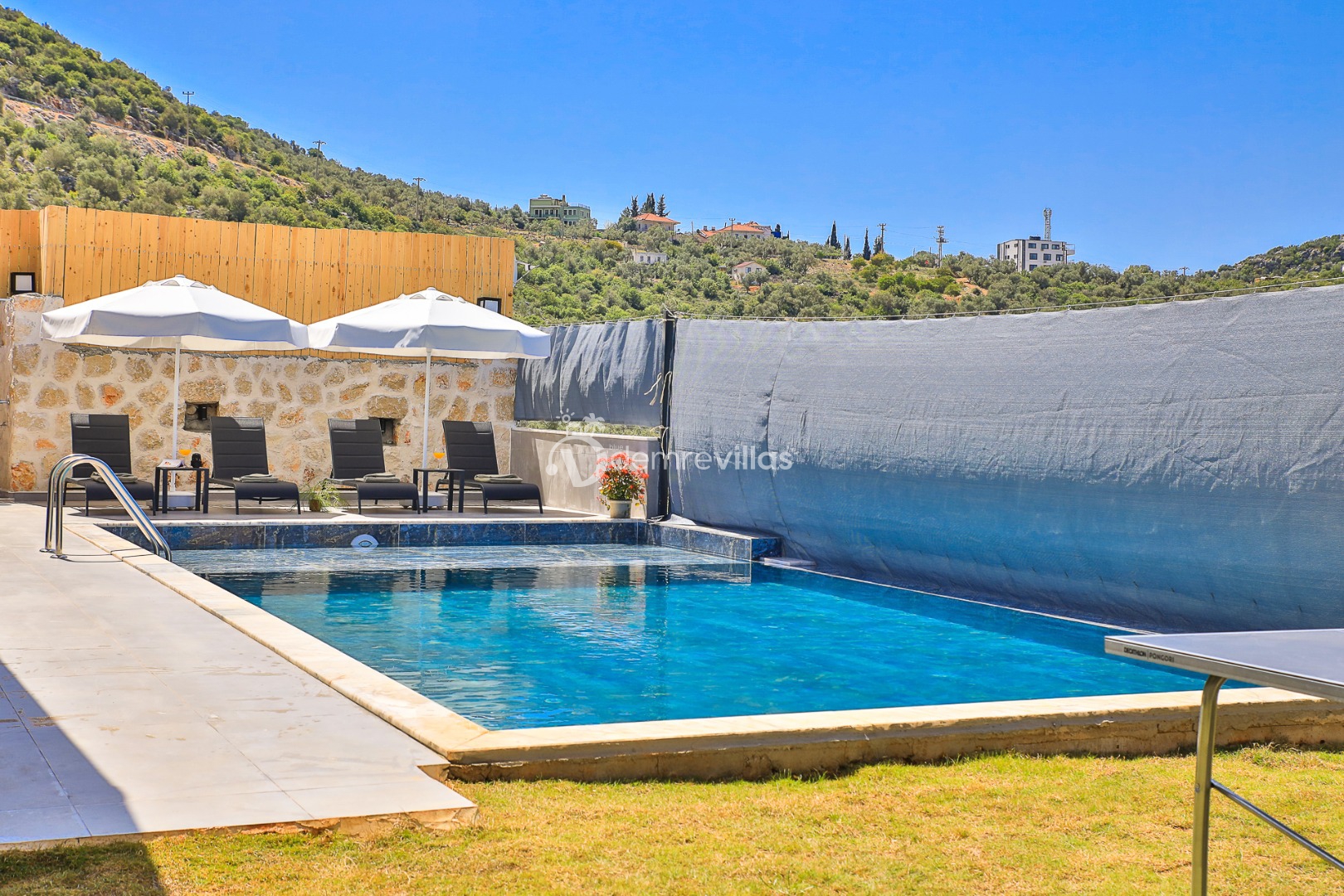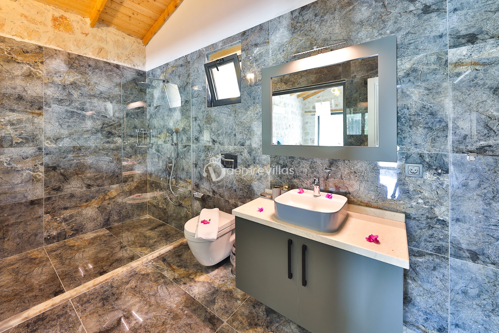 Coğrafi yapısı bakımında dağlık bir alana sahip olan bölgemizdeki villalarımız genel olarak yamaç üzerine kuruludur. Bu nedenle villalarımıza giderken yokuş yukarı çıkılmaktadır. Bu not sadece bu villa ile ilgili değildir. Tüm villalarımızda yazmaktadır.