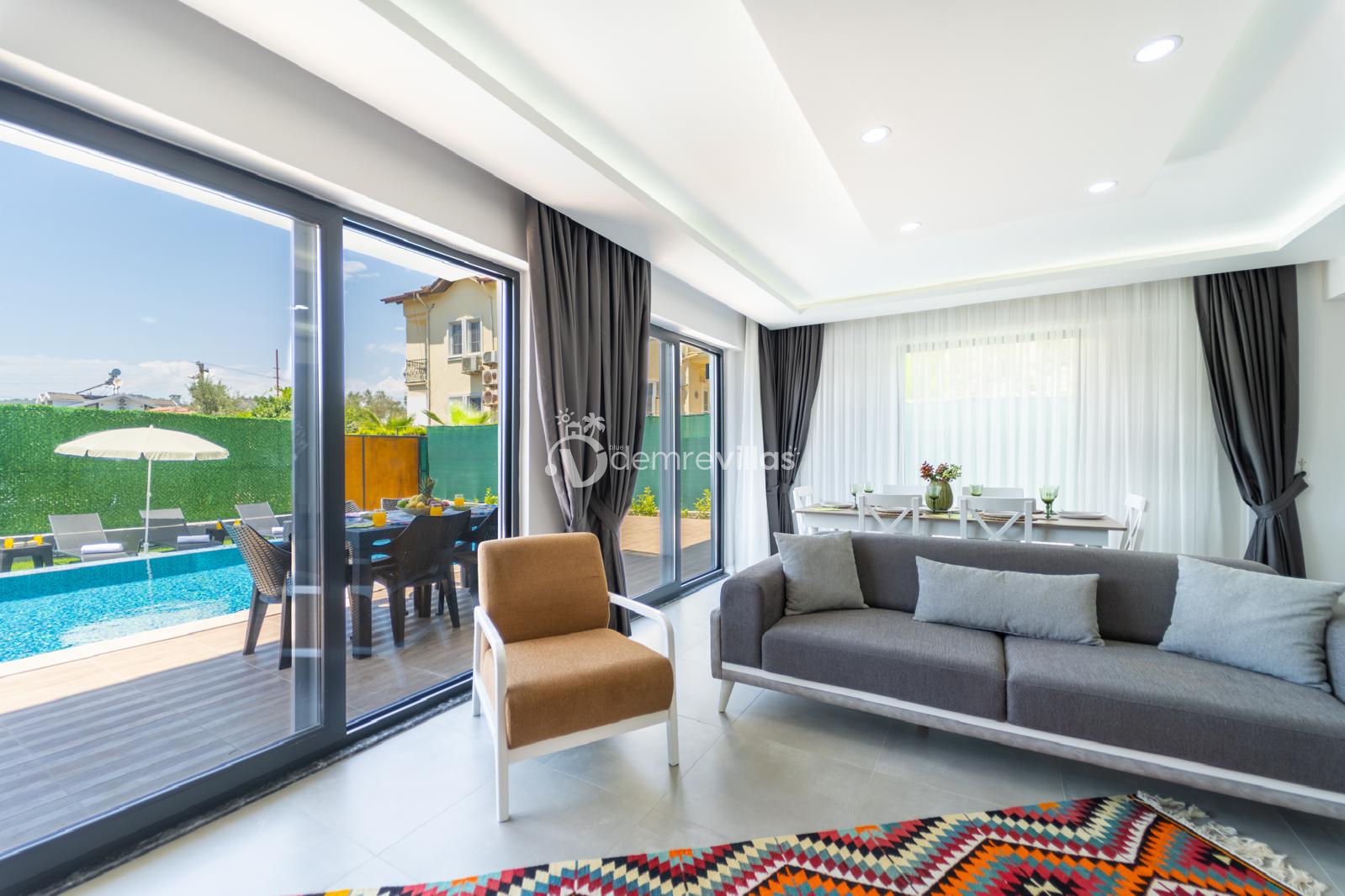 Merkezi konumda yer alan kiralık villa konforlu ev eşyaları ile zevkli bir şekilde dekore edilmiştir. Ölüdeniz’e araçla 10 dakikalık mesafede olan villamız tripleks olup özel bahçe ve özel yüzme havuzu bulunmaktadır. Kalabalık aileler için oldukça ideal bir villa seçeneğidir.