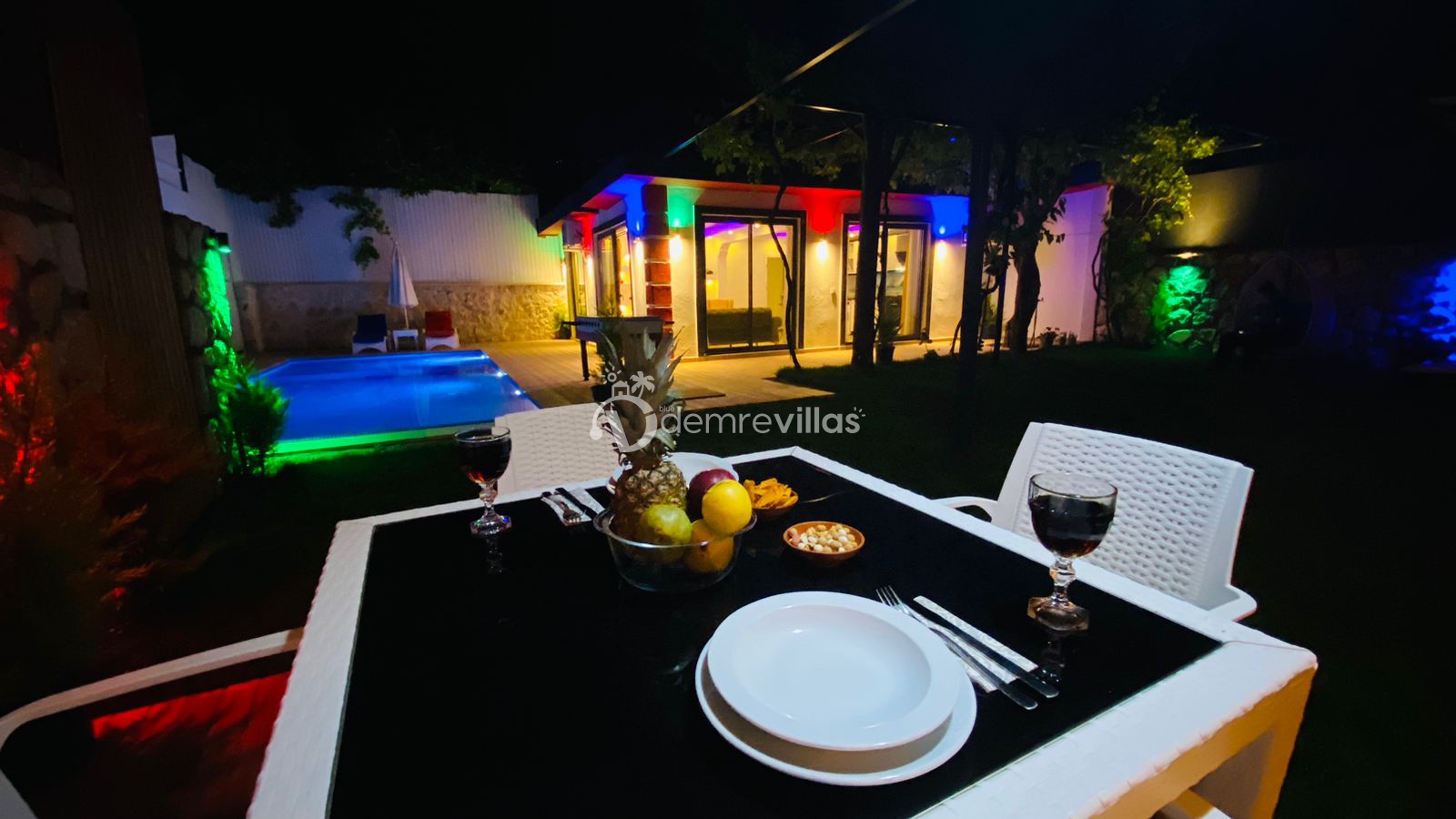 Doğa içerisinde yer alan villalarımızın tamamı böcek, sinek, kelebek, haşereler vb. için düzenli olarak ilaçlanmaktadır. Doğa içerisinde konuma sahip olan villalarda, merkezde yer alan villalara nazaran böcek, sinek, kelebek, haşereler vb. çıkma ihtimali daha yüksektir. Bu not sadece bu villa ile ilgili değildir. Doğa içerisinde konuma sahip olan tüm villaların bilgilerinde yazılmaktadır.