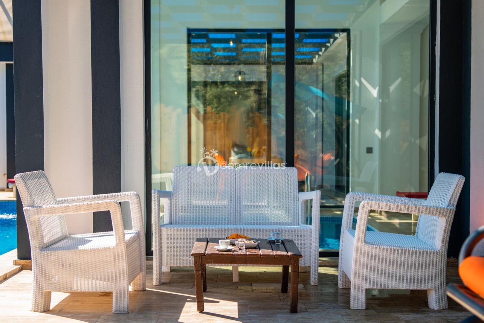 Doğa içerisinde yer alan villalarımızın tamamı böcek, sinek, kelebek, haşereler vb. için düzenli olarak ilaçlanmaktadır. Doğa içerisinde konuma sahip olan villalarda, merkezde yer alan villalara nazaran böcek, sinek, kelebek, haşereler vb. çıkma ihtimali daha yüksektir. Bu not sadece bu villa ile ilgili değildir. Doğa içerisinde konuma sahip olan tüm villaların bilgilerinde yazılmaktadır.