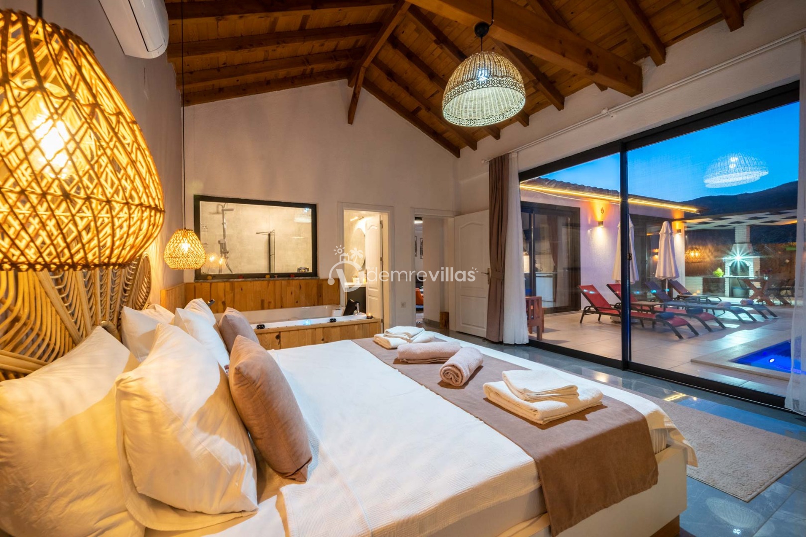 1.) Çift kişilik yatak, ebeveyn banyosu, jakuzi, klima
