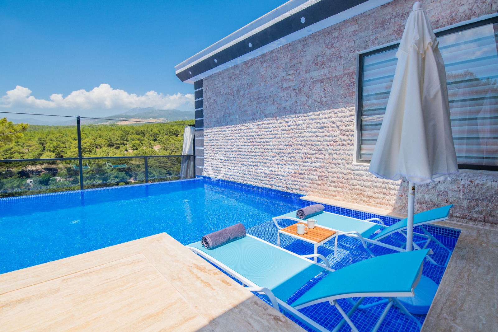 Kalkan Akbel bölgesinde yer alan 2 yatak odalı 4 kişilik konaklama kapasitesine sahip muhafazakar villadır. Doğa içerisinde konumu gereği muhafazakar villa seçenekleri arasında olup korunaklı aile ve arkadaş grupları için ideal bir seçenektir. Kapalı ısıtmalı havuzu ve ebeveyn yatak odasında bulunan jakuzisi ile misafirlerini en iyi şekilde karşılamaya hazır villamız kış aylarında da kiralanabilmektedir.