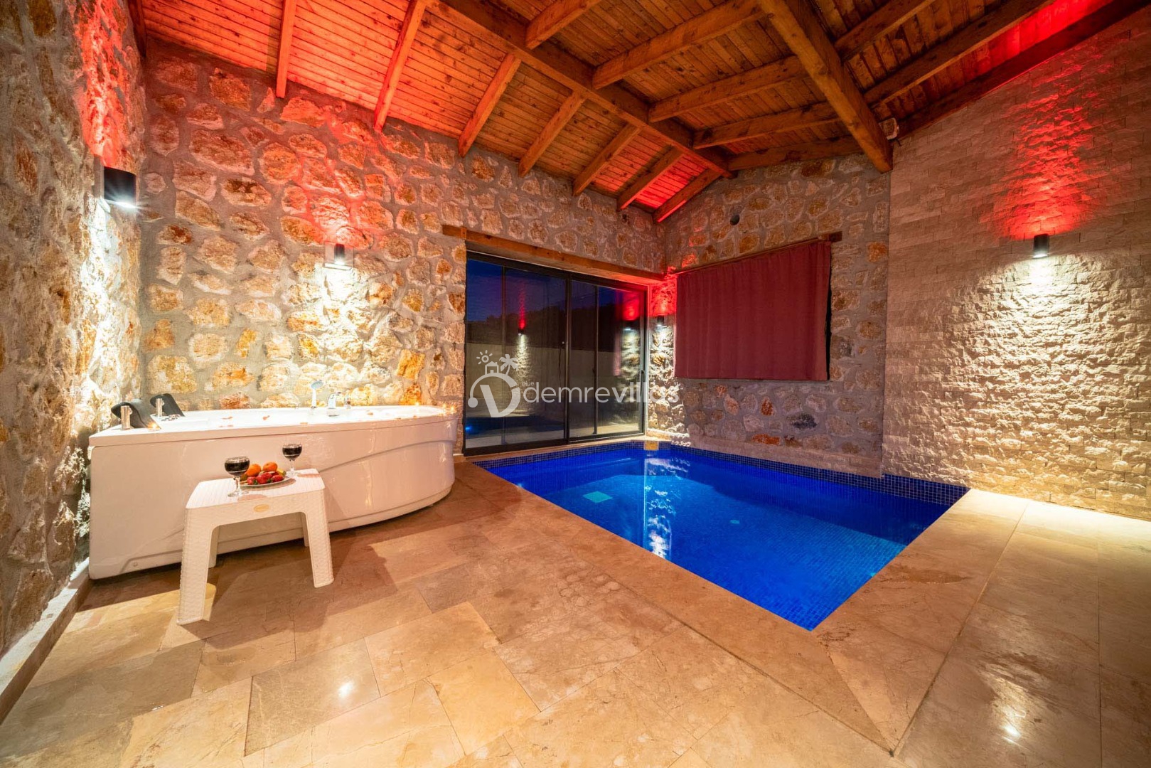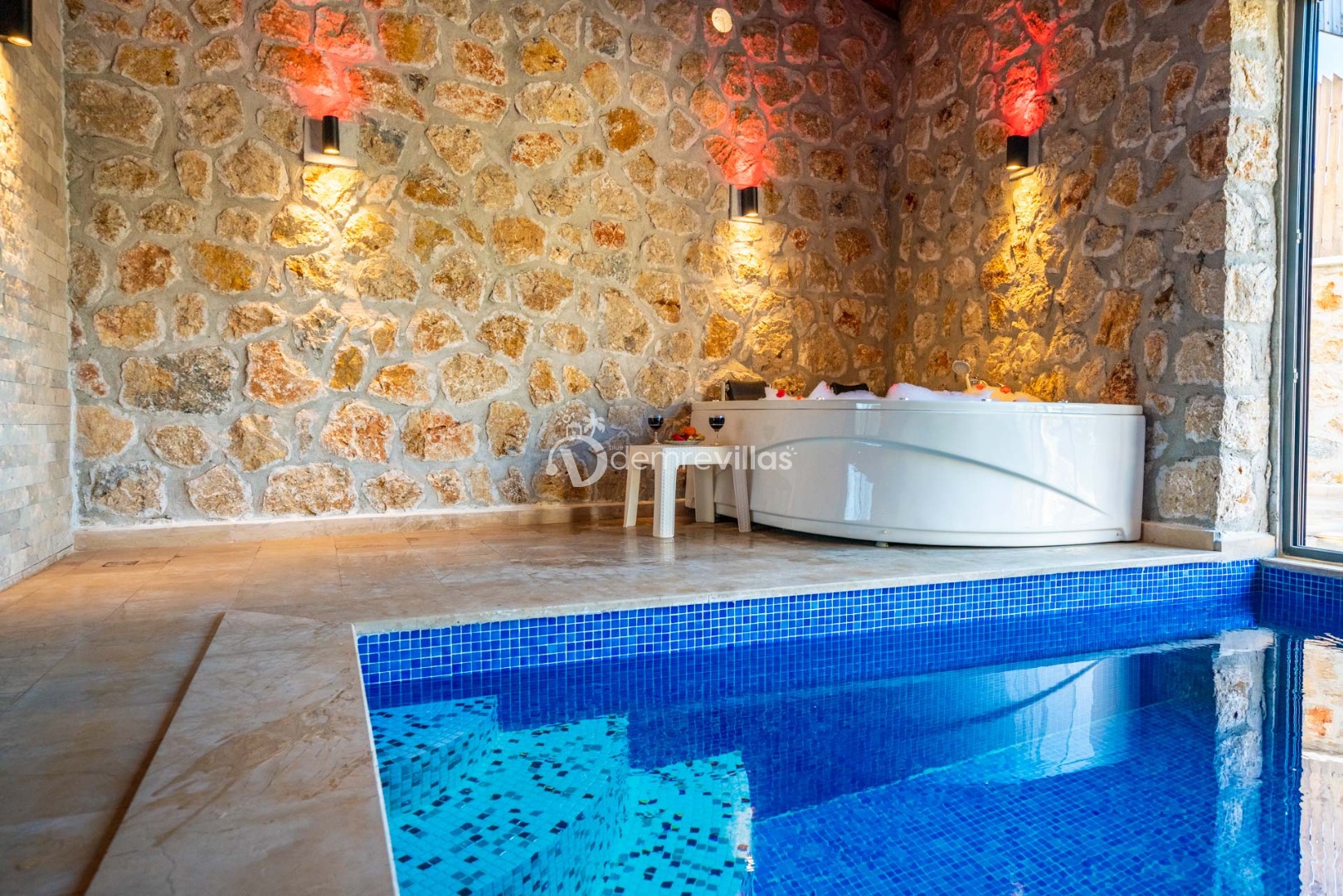 Kaş Kalkan Akbel mevkiinde konumlanan havuzu tam korunaklı villamızdır. Tamamen doğa içerisinde sakin bir konumda yer alan villamız, konforlu ve şık tasarımı ile dikkat çekmektedir. Yemyeşil bir doğa içerisinde kendinizi dinleyebileceğiniz sakin bir tatil için birebir. .Kapalı ısıtmalı havuzu ve ebeveyn yatak odasında bulunan jakuzisi ile misafirlerini en iyi şekilde karşılamaya hazır villamız kış aylarında da kiralanabilmektedir.