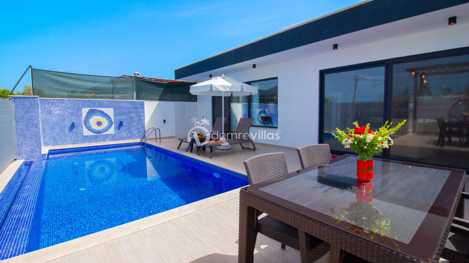 Modern dokunuşlar ile tasarlanan villamız şehir hayatının kalabalığı ve gürültüsünden uzakta bir konuma sahiptir. Villan’in korunaklı bahçesindeki havuzda keyifle ve özgürce yüzebilir aynı zamanda gözlerden uzakta bir bahçeye sahip olması sayesinde rahatlıkla güneşlenebilirsiniz.