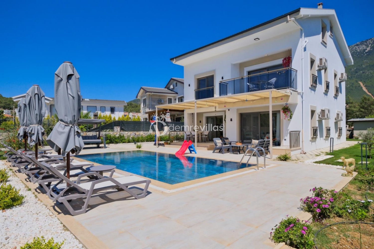 Ölüdeniz’e ve Hisarönü’ne yakın olan villamız geniş ve ferah bir salonu, 4 yatak odası ve 4 banyo/WC bulunmaktadır. Birinci yatak odasında çift kişilik yatak ve klima bulunmaktadır.