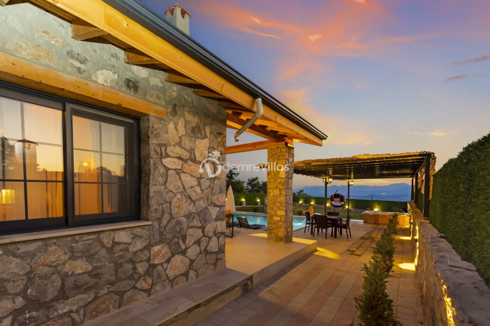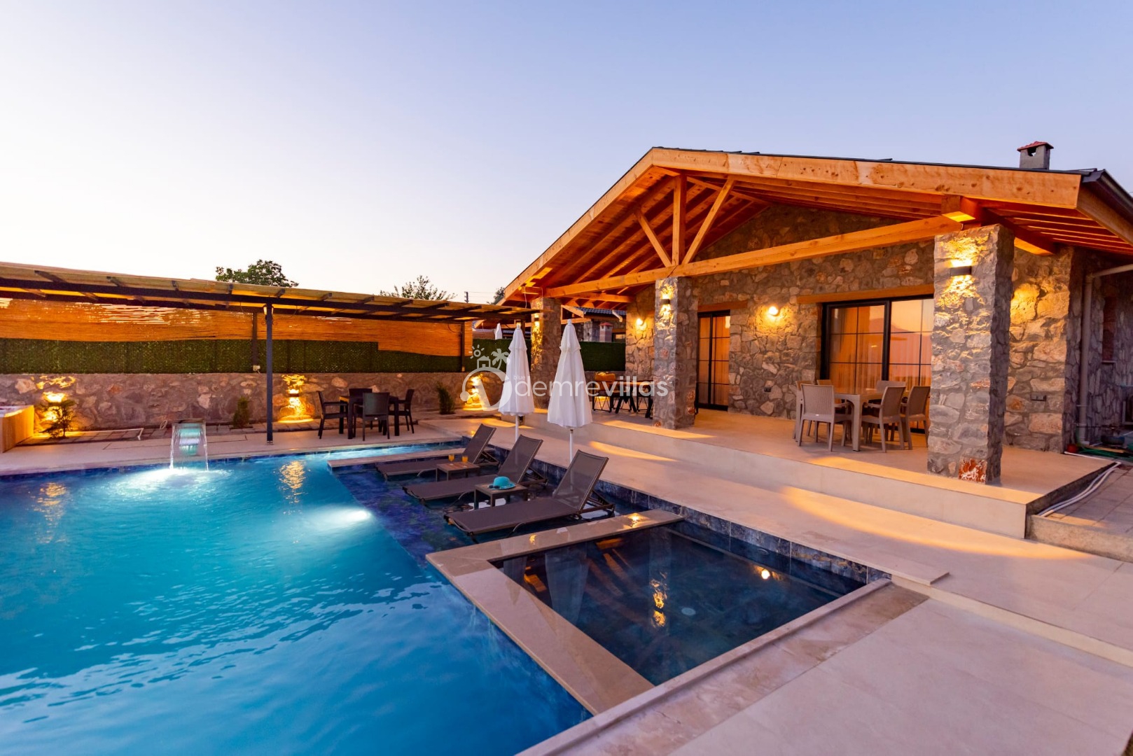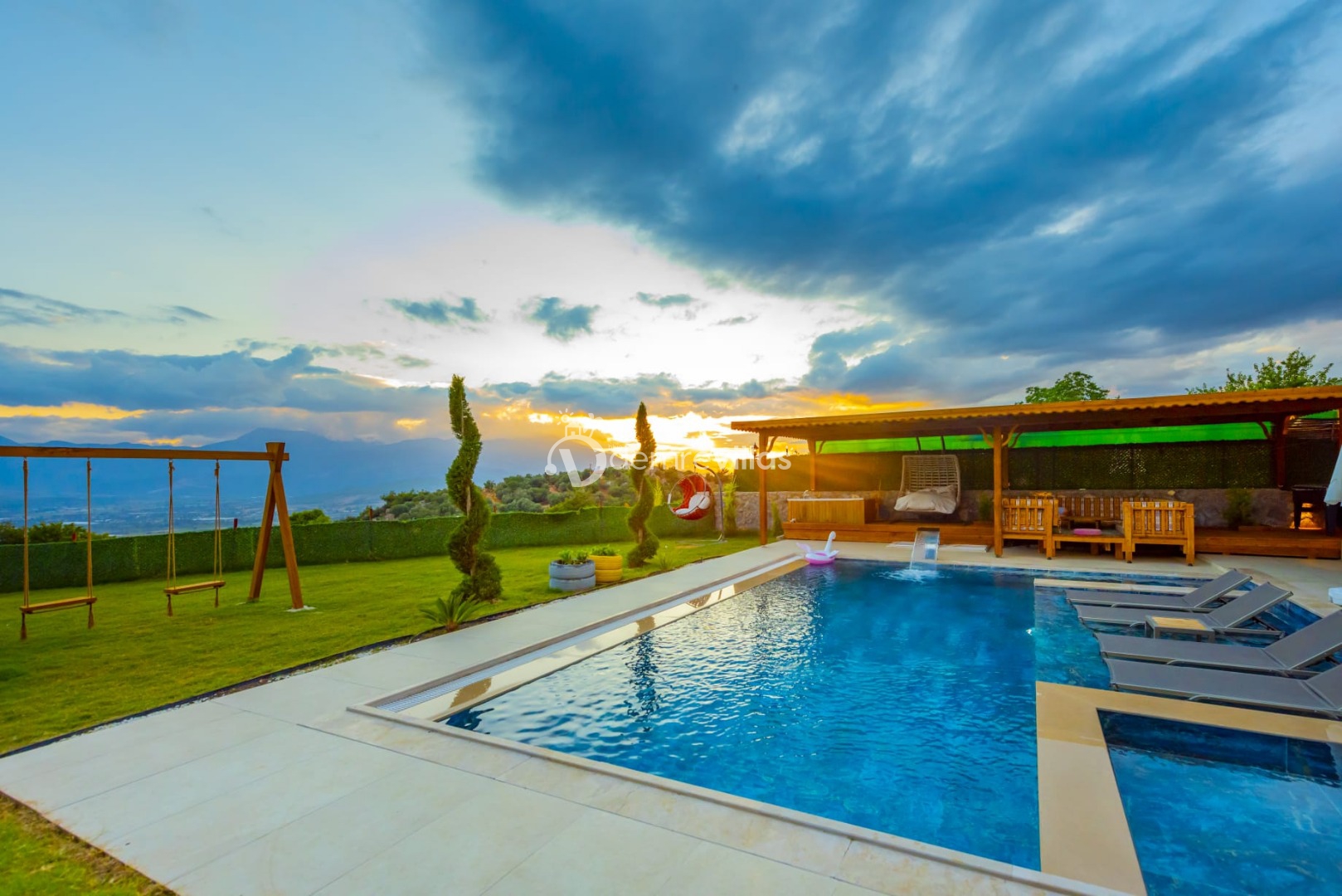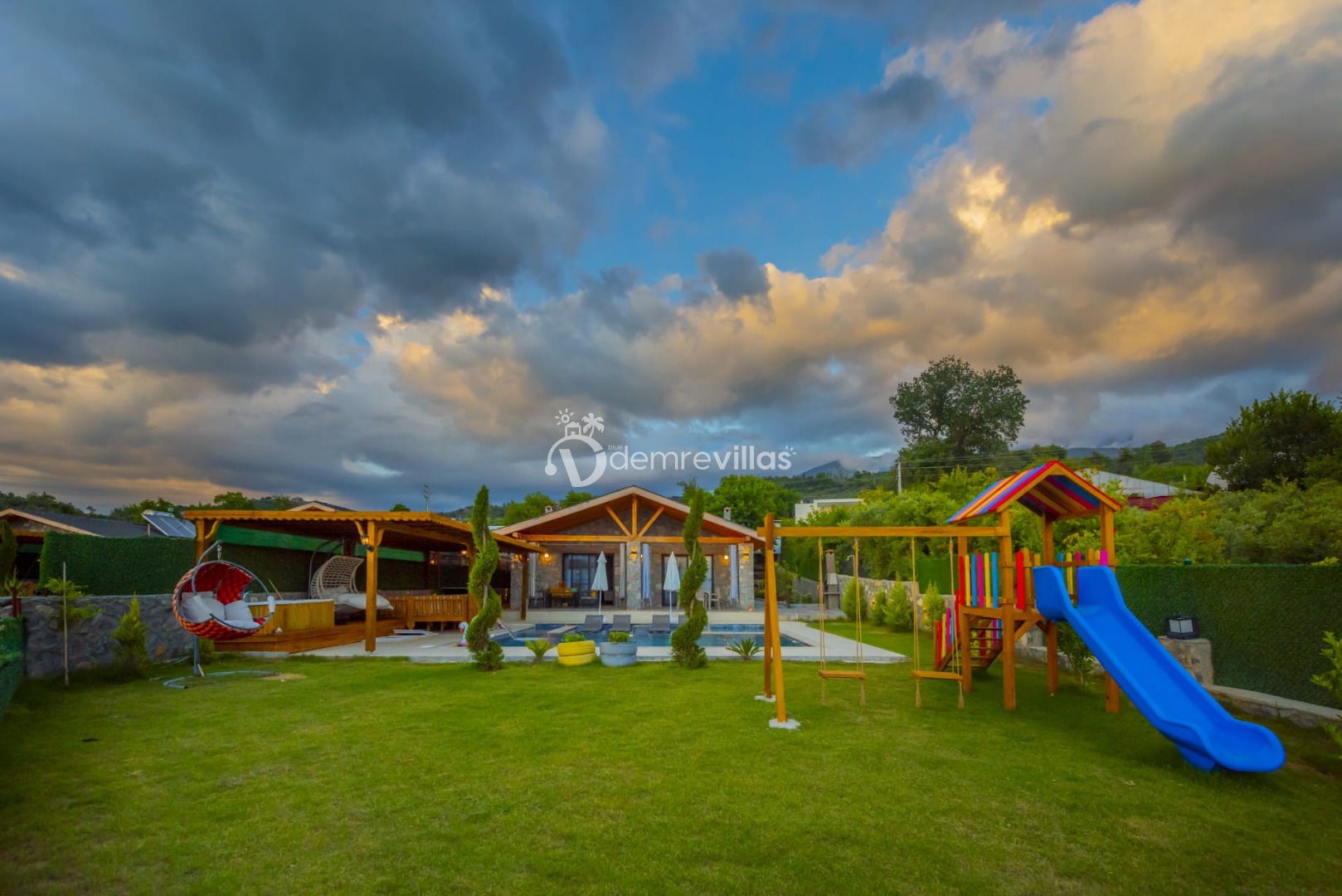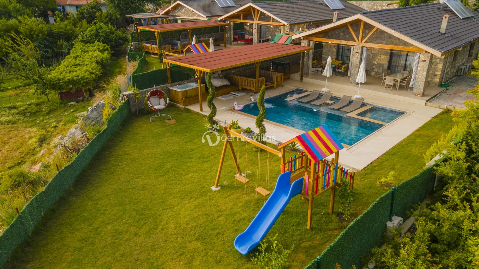 Villa, geniş aileler ve kalabalık arkadaş grupları için oldukça idealdir. Oldukça şık ve modern bir şekilde döşenmiş olan villamızda misafirlerimiz için her şey düşünülmüştür. Villamız doğa manzaralıdır ve ağaçlar içinde yer almaktadır. Yazın en sıcak aylarda bile bol oksijenli ve serin hava sunmaktadır. Villamızın bahçesinde bulunan jakuzisi , içerisinde bulunan saunası ve çocuk oyun alanı,çocuk havuzu ile siz misafirlerimize lüks bir tatil imkanı sunmaktadır.