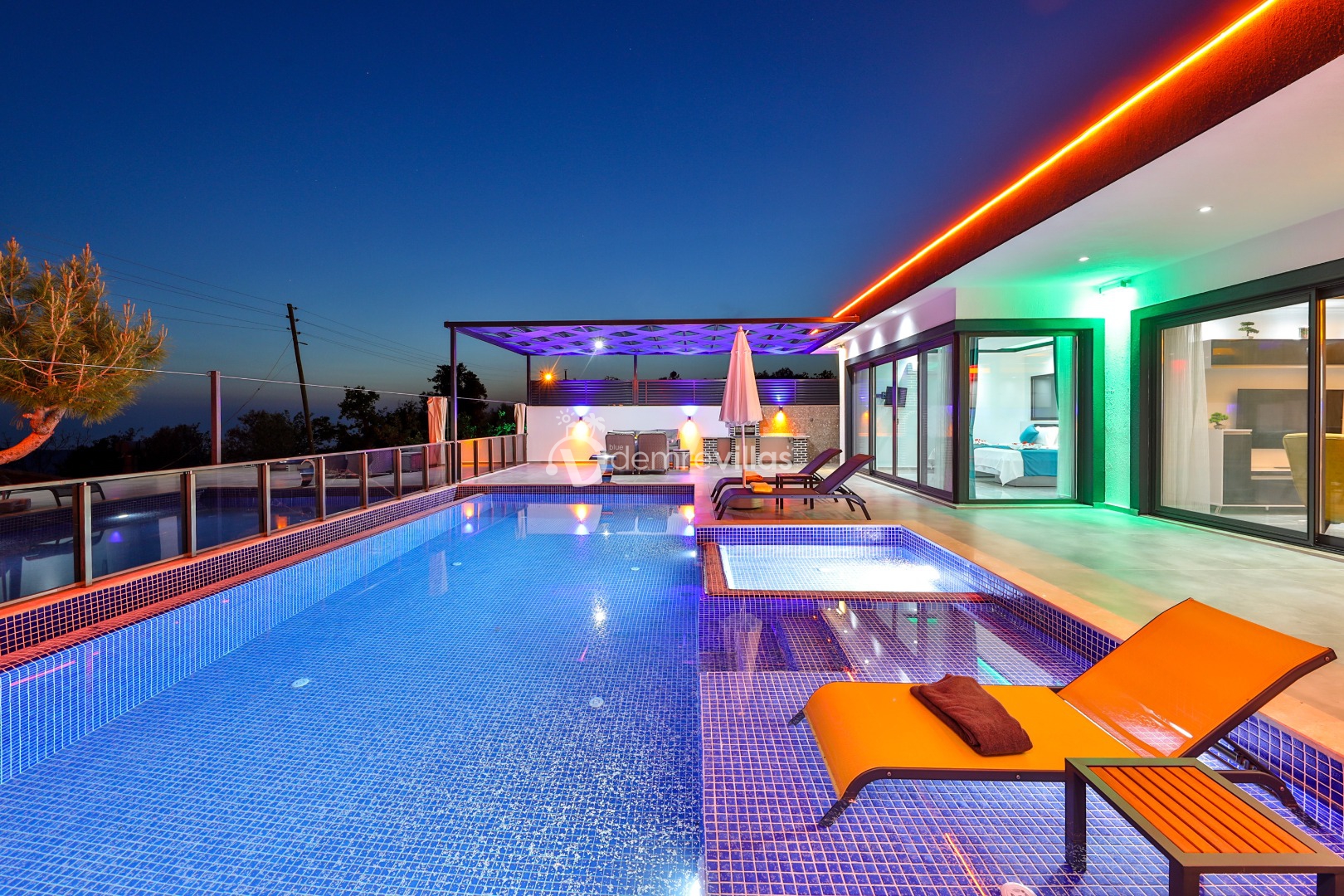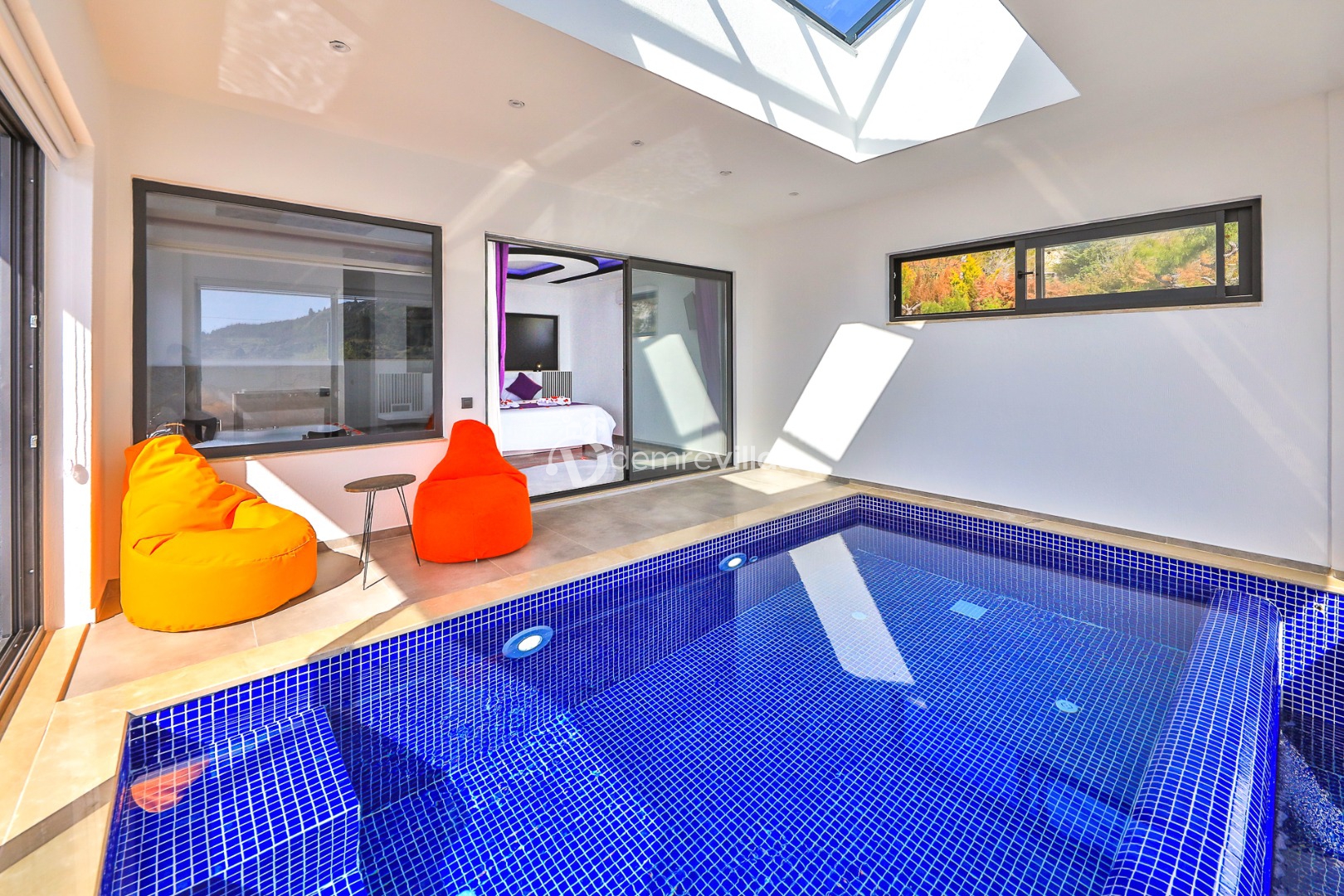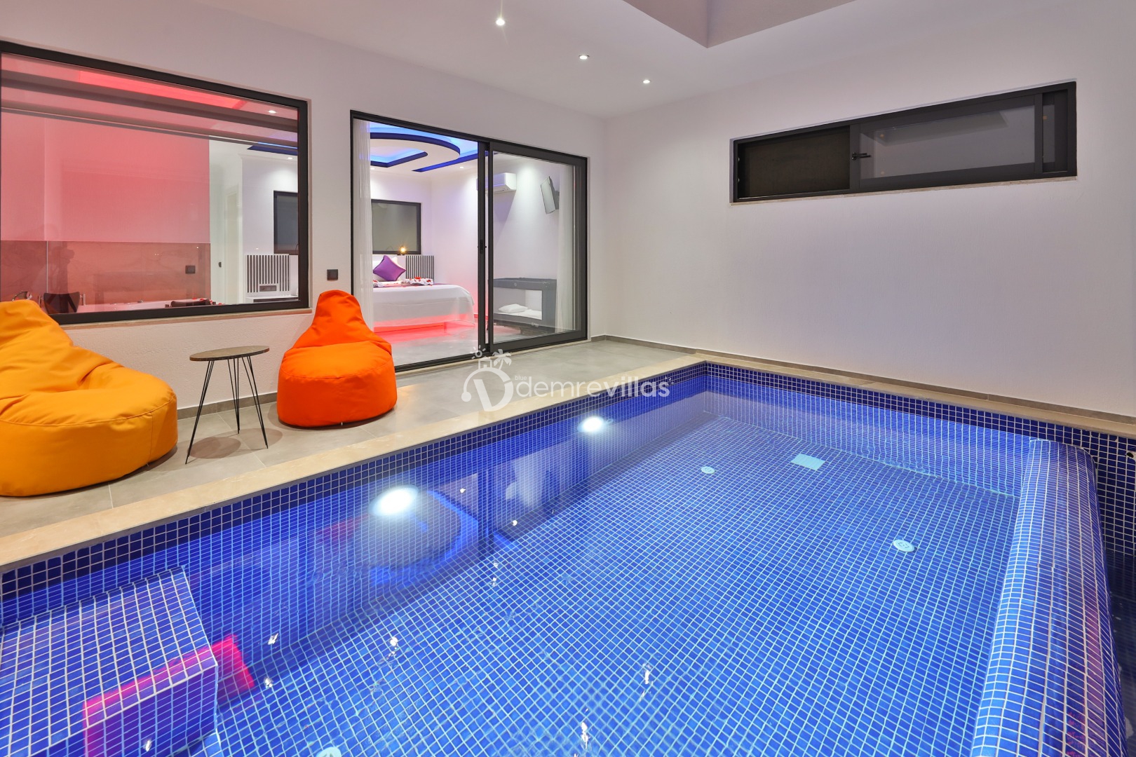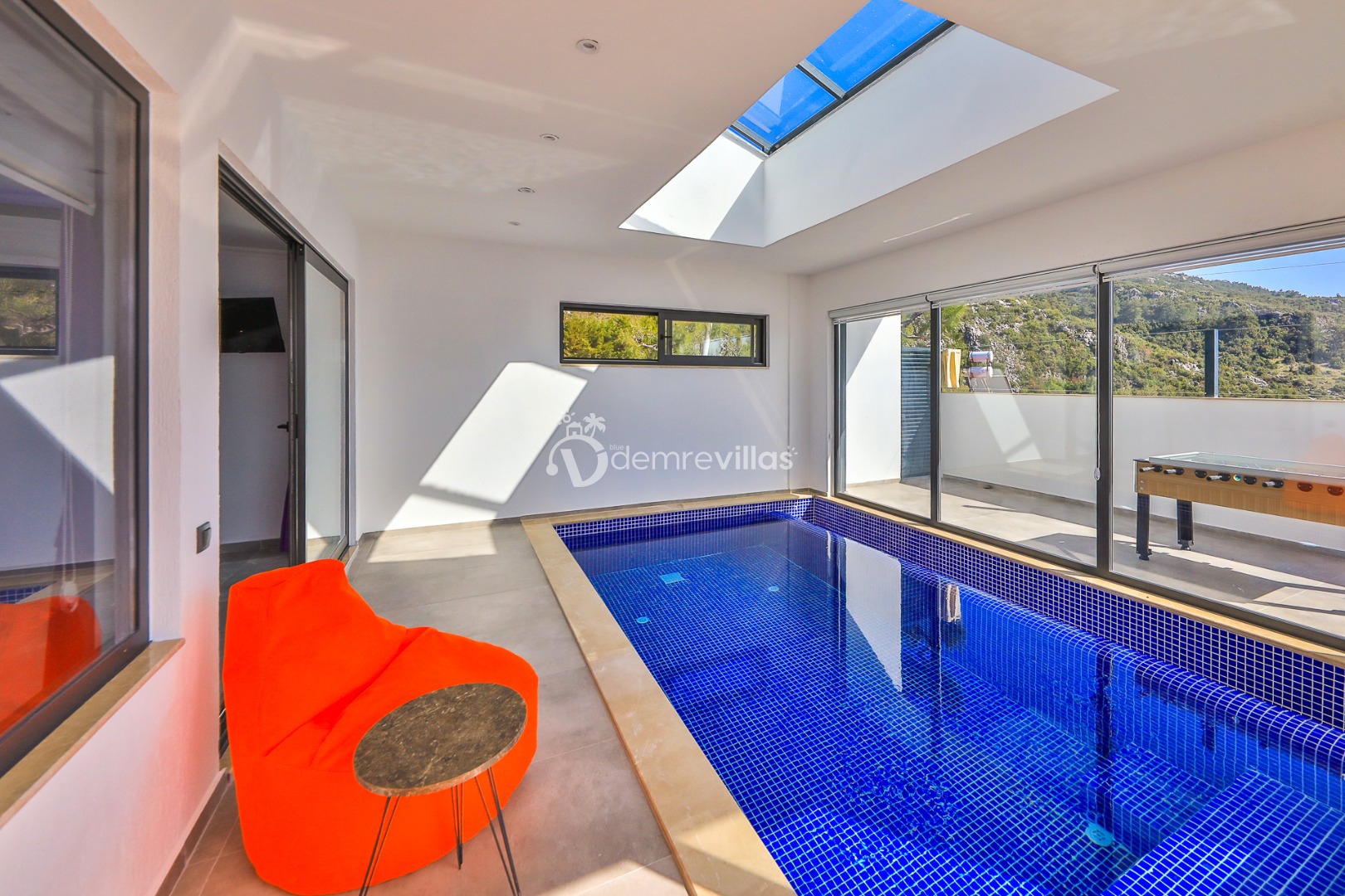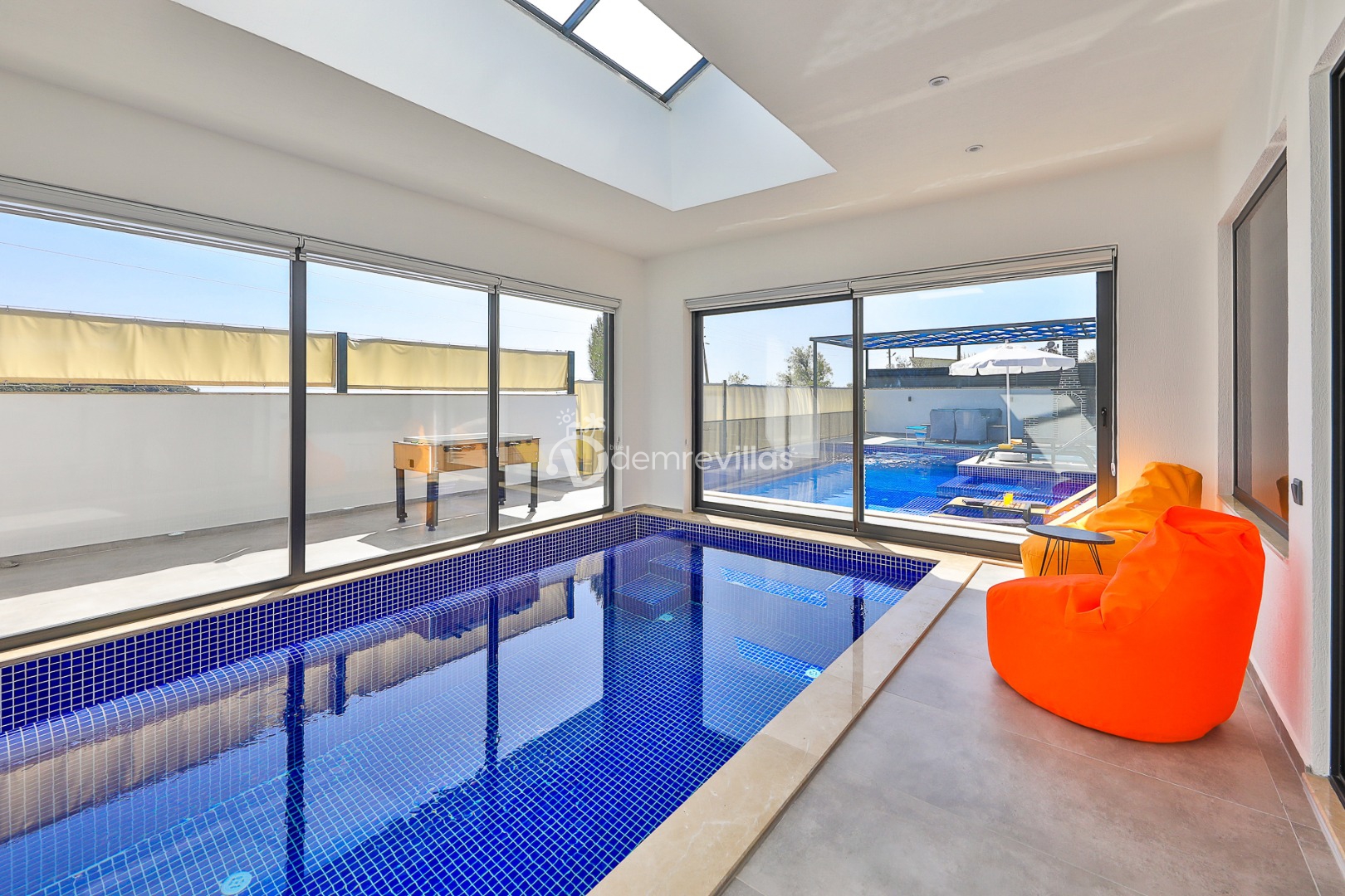Modern mimarisi ve tasarımının yanı sıra geniş havuz terası ve bahçesi, kapalı ısıtmalı havuzu gibi bölümleri sayesinde kışın da tatil yapmak isteyen misafirlerimiz için uygun bir seçenektir.