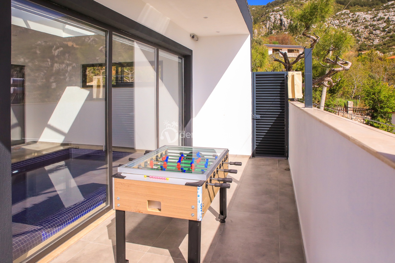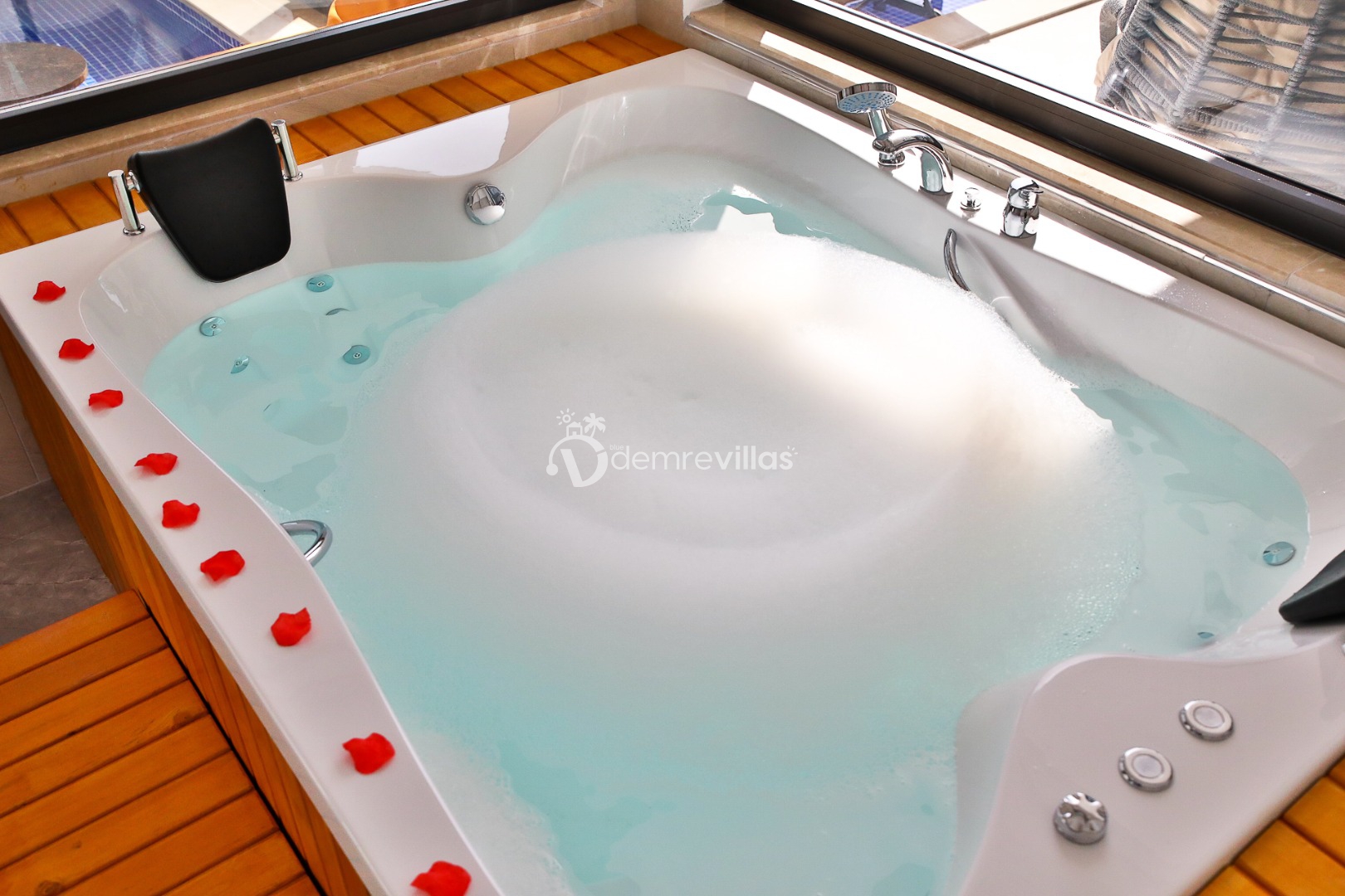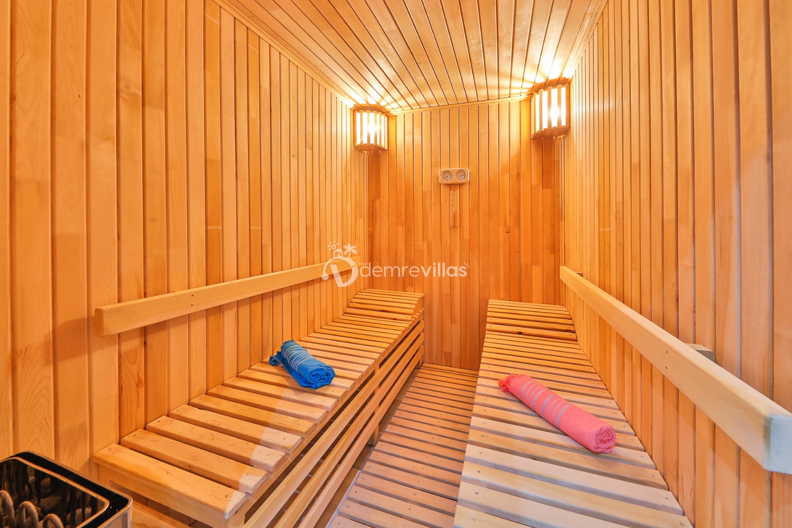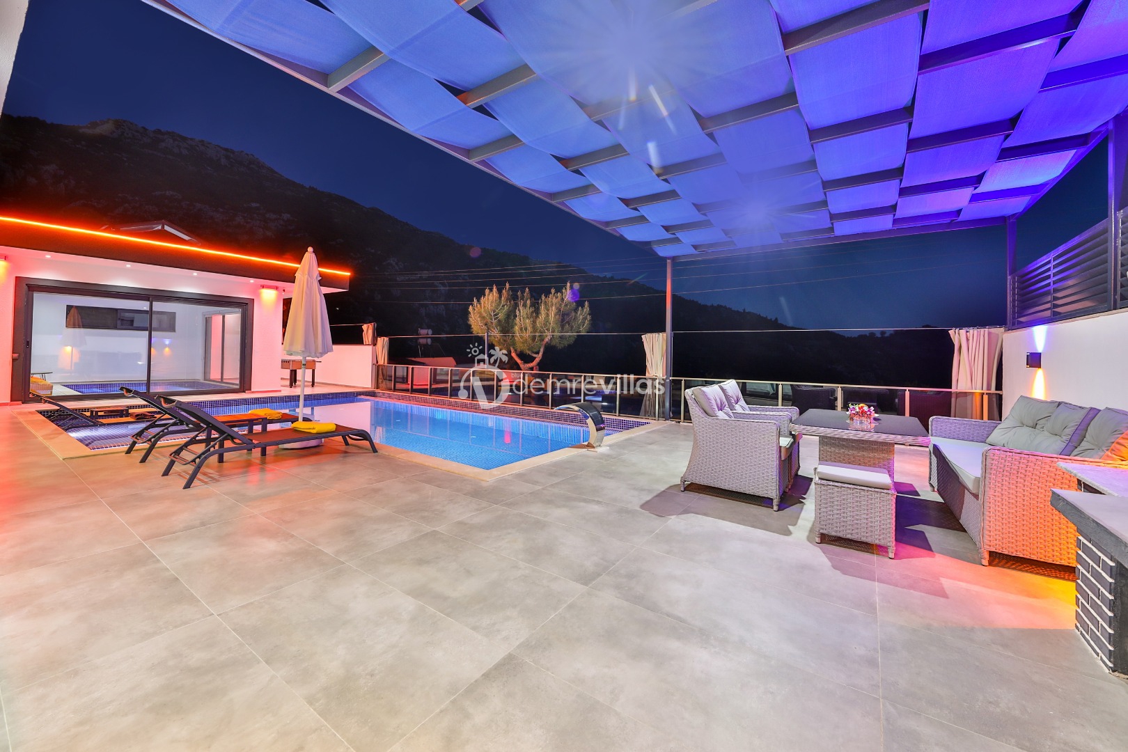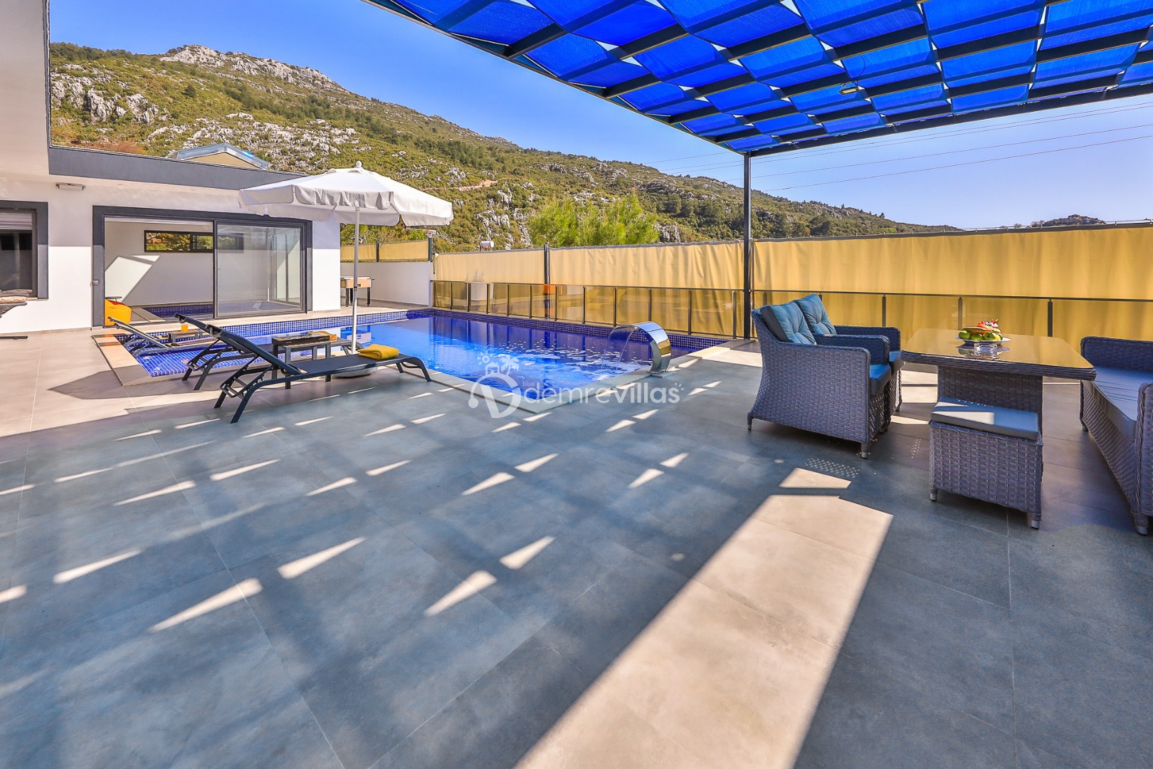 Modern mimarisi ve tasarımının yanı sıra geniş havuz terası ve bahçesi, kapalı ısıtmalı havuzu gibi bölümleri sayesinde kışın da tatil yapmak isteyen misafirlerimiz için uygun bir seçenektir.