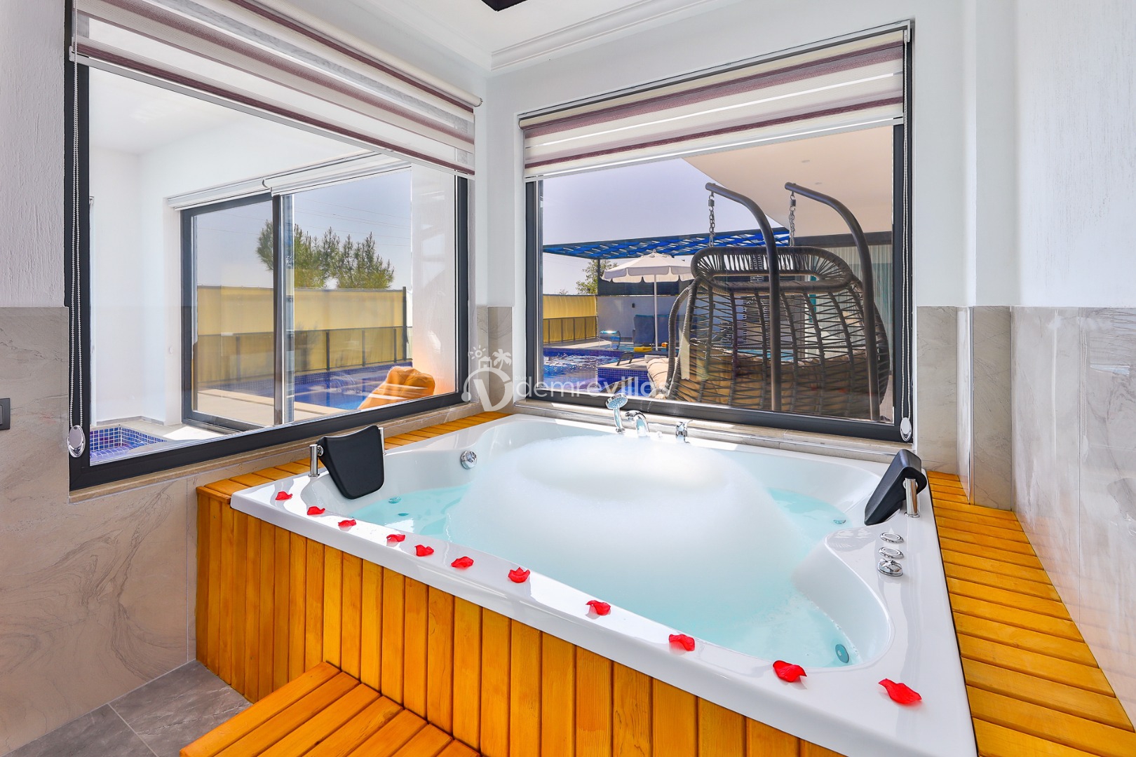 Villamız, bulunduğu konum itibariyle size doğayla baş başa bir tatil imkânı sunmaya hazır. 2 yatak odalı 4 kişi kapasiteli villamızda şehir hayatının gürültüsünden ve kalabalığından uzak bir tatil sizi beklemekte. Korunaklı havuz ve havuz terası ile muhafazakâr aileler ve balayı çiftleri için ideal bir villadır.