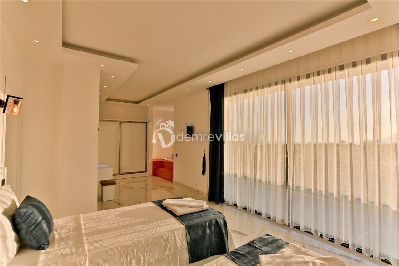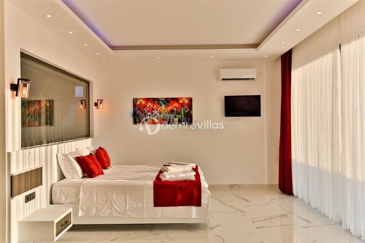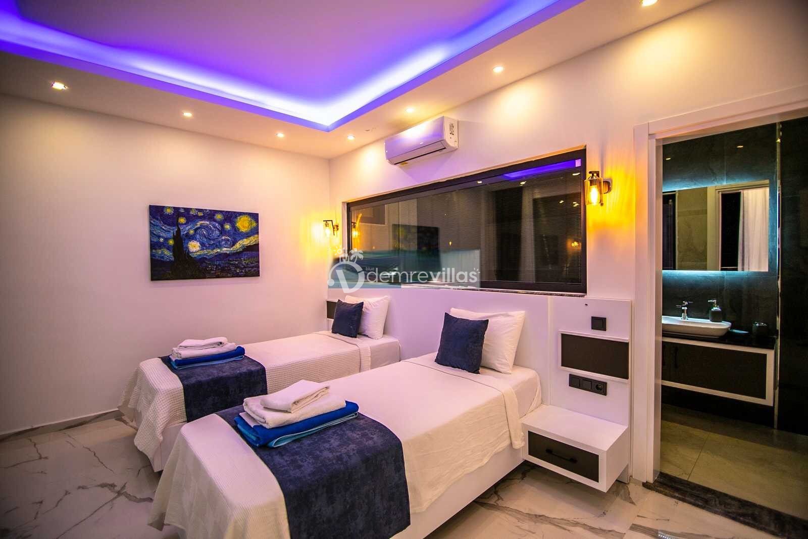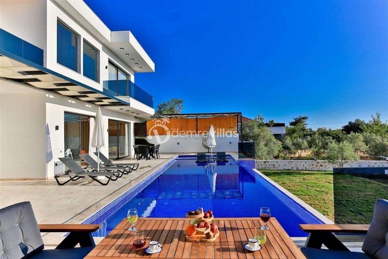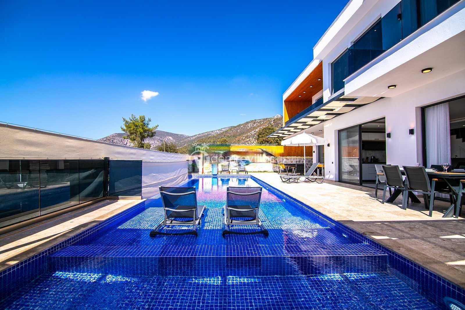 Villamız, Kalkan Üzümlü Köyünde bulunan, 3 yatak odalı 6 kişi konaklama kapasitesine sahip, çift jakuzi, sauna, hamam, yeşil geniş bahçe alanı, çocuk havuzu ve çocuk oyun parkı ile tatilinizin konforlu geçmesi için tüm detayların düşünüldüğü 2021 yapımı modern tatil villamızdır. 1 adet katlanır ortopedik yatak villamızın bünyesinde yer almaktadır. İki adet özel jakuzili suit yatak odası bulunan villamız, iki adet tekli açılıp kapanabilen yatak bulunan üçüncü odası ile 6 kişiye kadar konaklama imkanı sunmaktadır. Havuz alanı korunaklı olup büyük yüzme havuzu, geniş havuz terası ve geniş bahçe alanı ile ferah bir ortam sunan villamız, bulunduğu mevkideki restoran ve marketlere yürüme mesafesindedir. Ek olarak 3. yatak odasında 2 adet tekli açılıp kapabilen yataklar mevcuttur. Bu şekilde 6 kişi konaklama yapabilir. 3.yatak odasında odaya ait wc-banyo bulunmamaktadır. Ayrıca 3. yatak odasında sauna ve hamam mevcuttur.