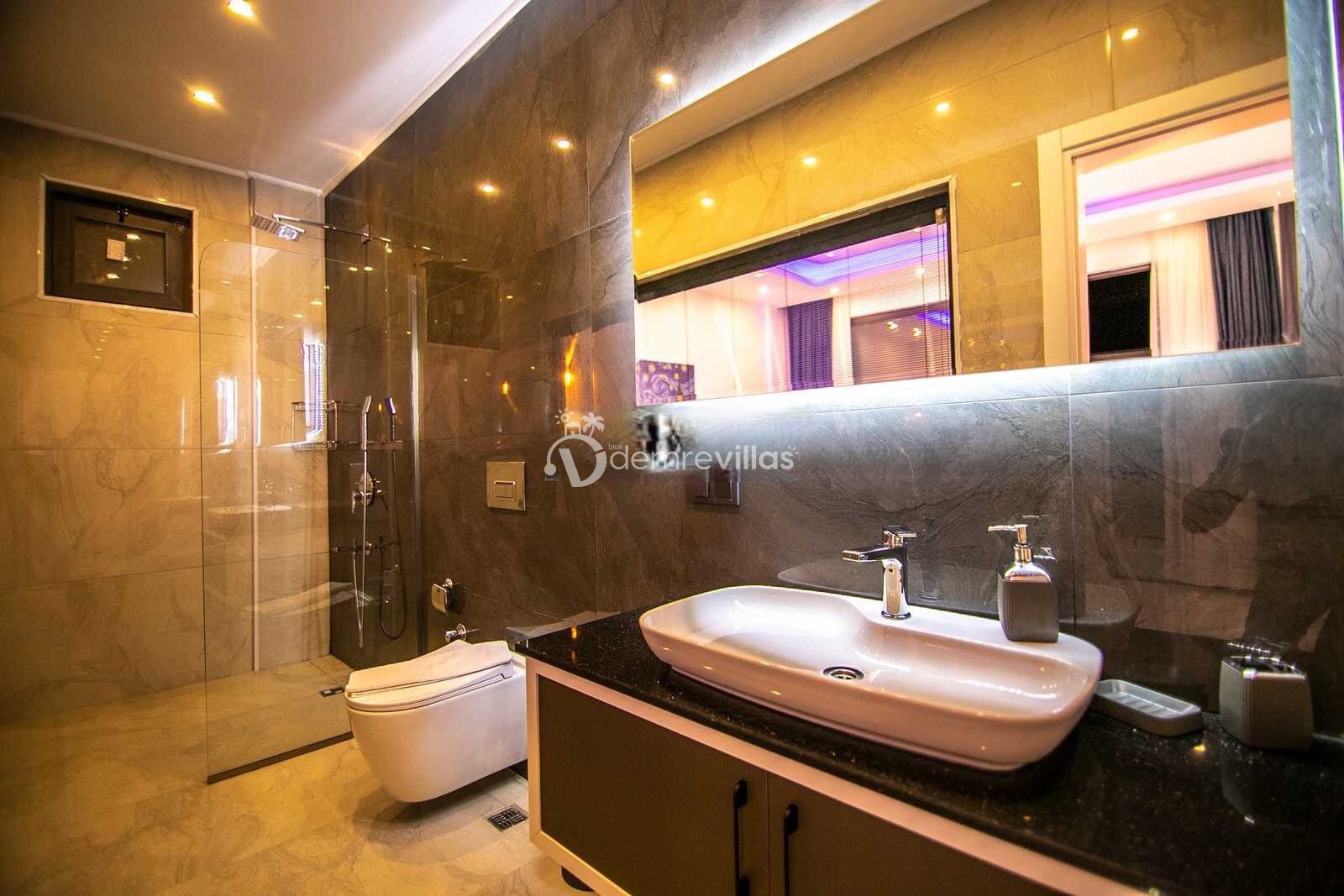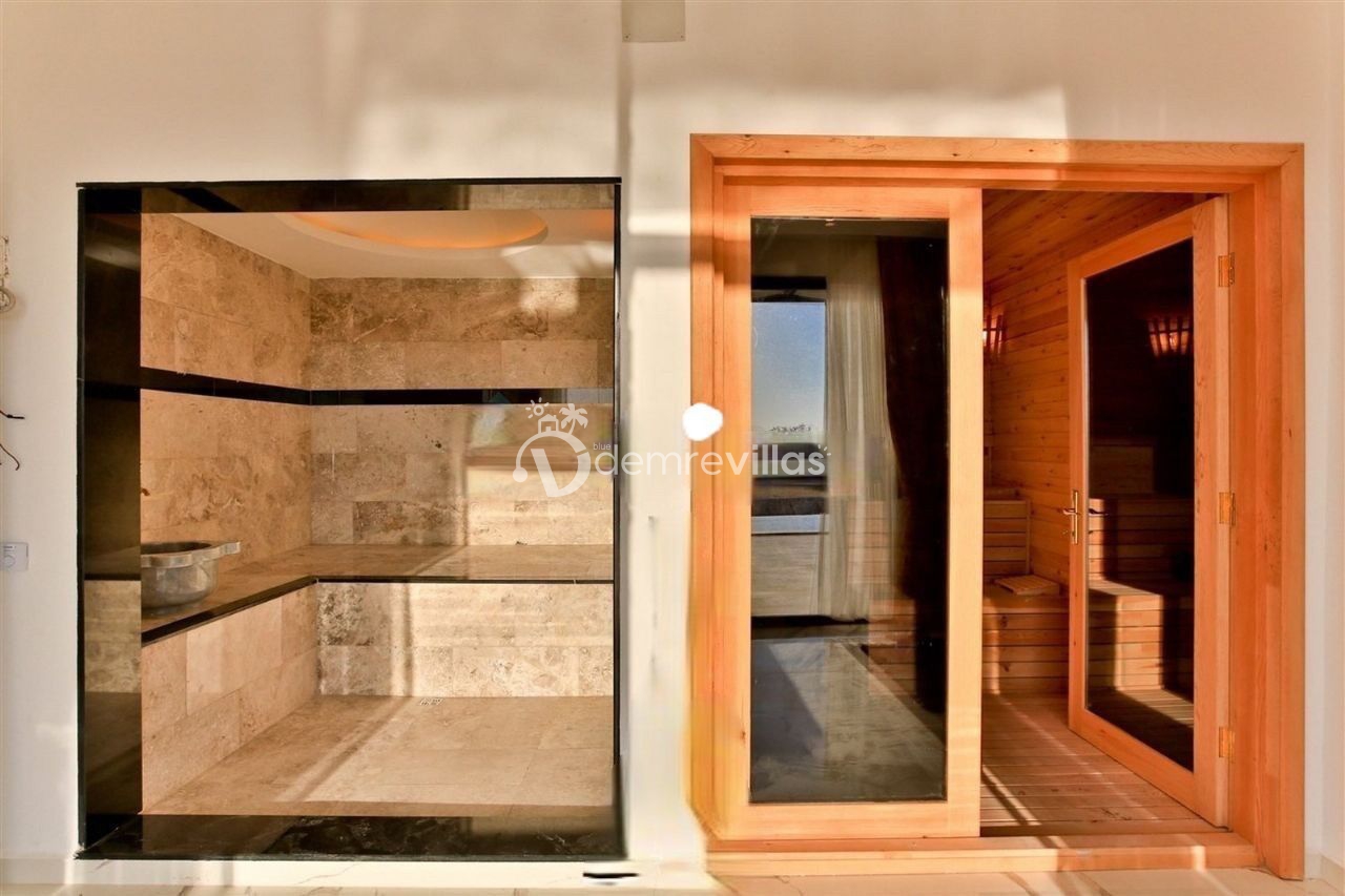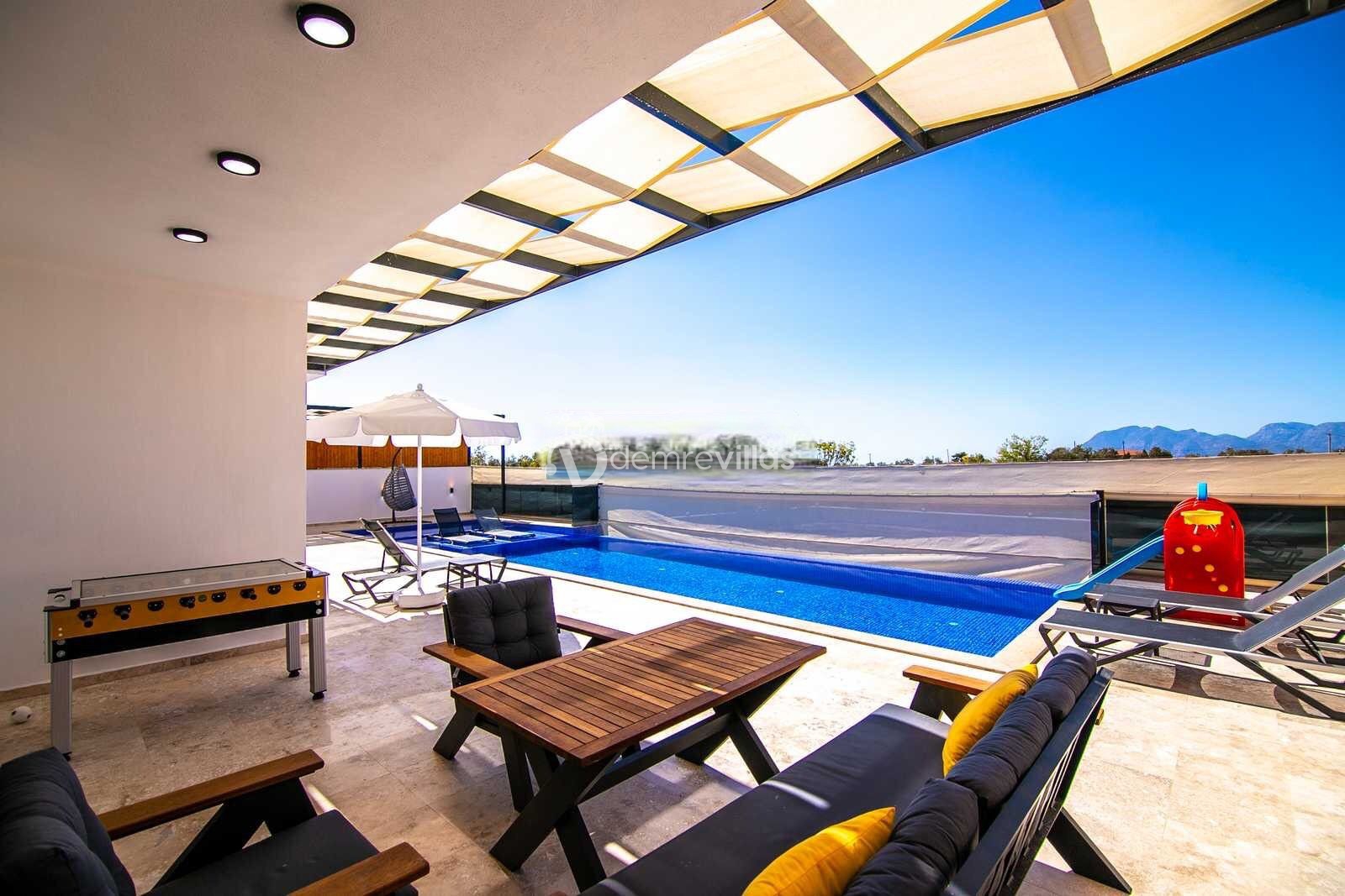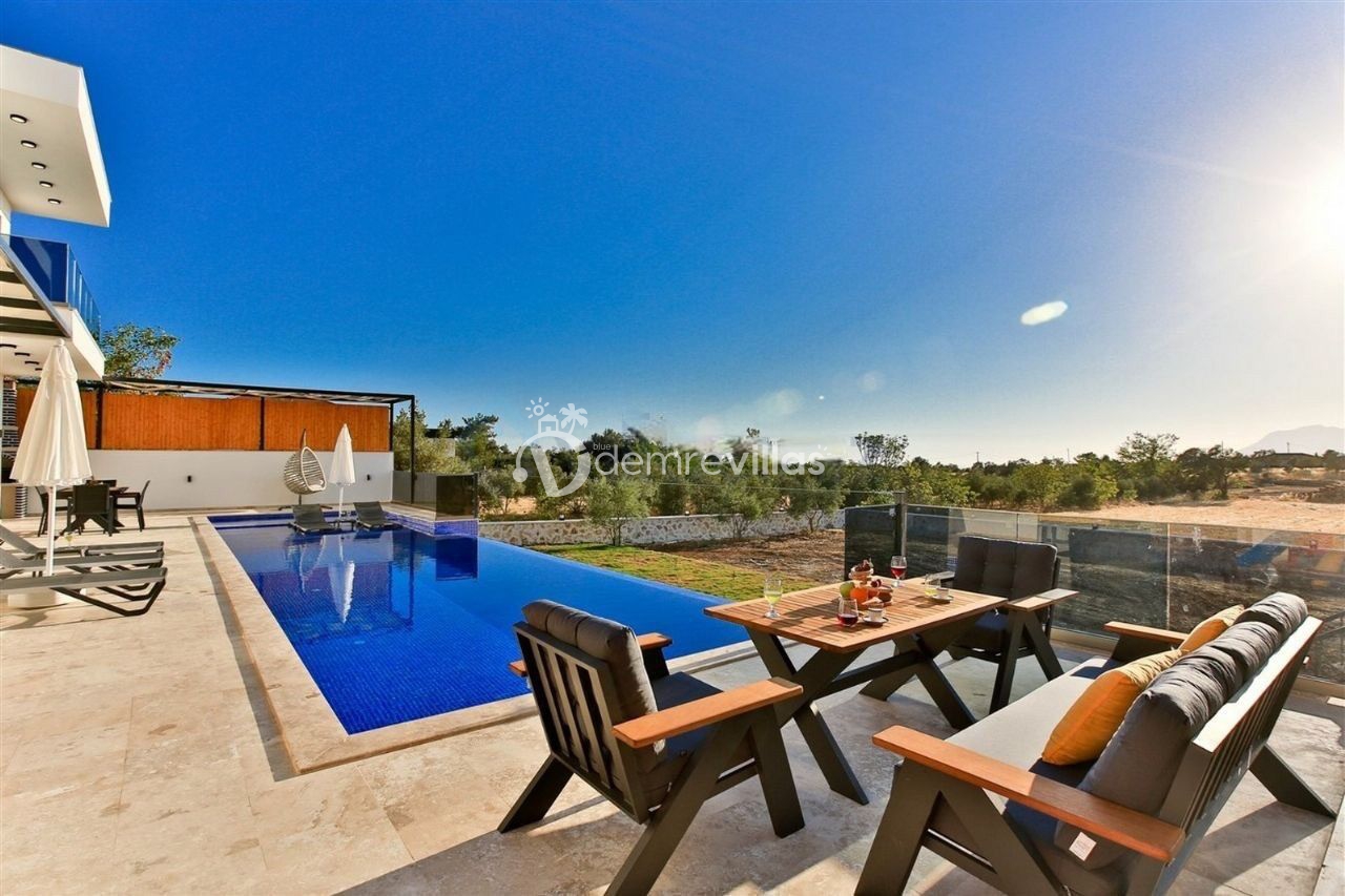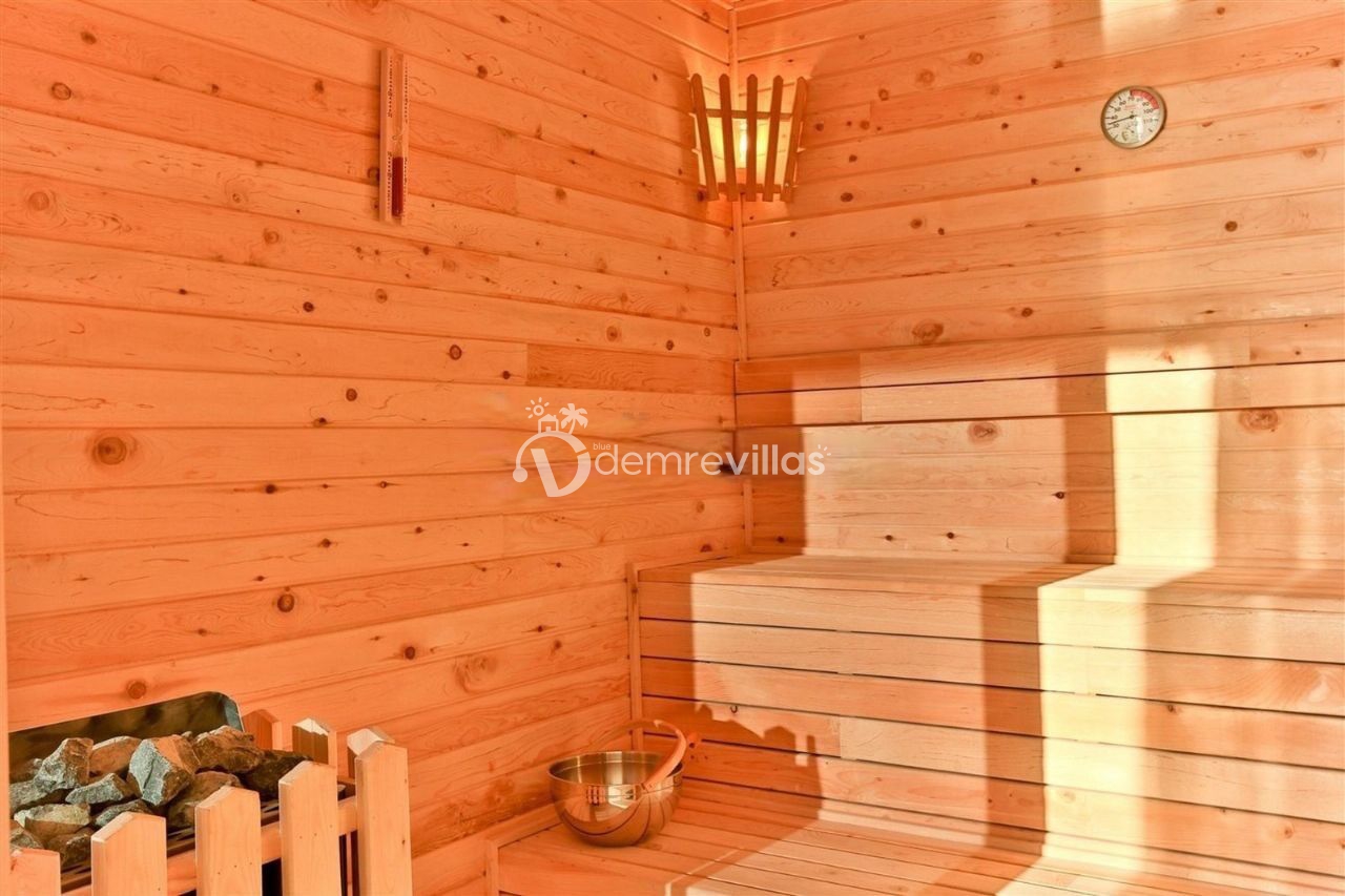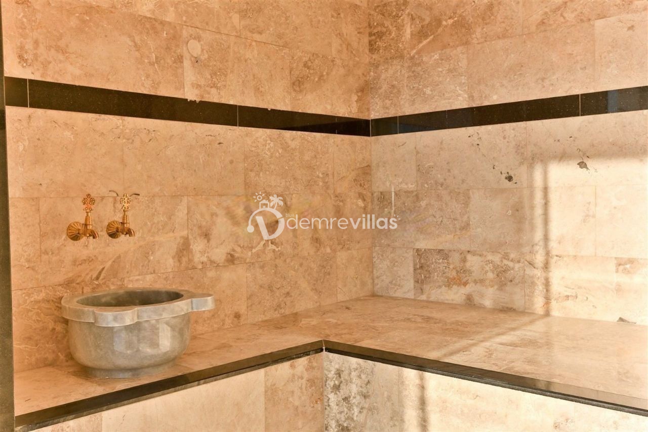 Villamız, Kalkan Üzümlü Köyünde bulunan, 3 yatak odalı 6 kişi konaklama kapasitesine sahip, çift jakuzi, sauna, hamam, yeşil geniş bahçe alanı, çocuk havuzu ve çocuk oyun parkı ile tatilinizin konforlu geçmesi için tüm detayların düşünüldüğü 2021 yapımı modern tatil villamızdır. 1 adet katlanır ortopedik yatak villamızın bünyesinde yer almaktadır. İki adet özel jakuzili suit yatak odası bulunan villamız, iki adet tekli açılıp kapanabilen yatak bulunan üçüncü odası ile 6 kişiye kadar konaklama imkanı sunmaktadır. Havuz alanı korunaklı olup büyük yüzme havuzu, geniş havuz terası ve geniş bahçe alanı ile ferah bir ortam sunan villamız, bulunduğu mevkideki restoran ve marketlere yürüme mesafesindedir. Ek olarak 3. yatak odasında 2 adet tekli açılıp kapabilen yataklar mevcuttur. Bu şekilde 6 kişi konaklama yapabilir. 3.yatak odasında odaya ait wc-banyo bulunmamaktadır. Ayrıca 3. yatak odasında sauna ve hamam mevcuttur.