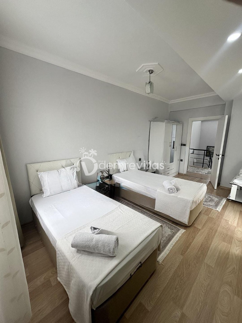 Maksimum 10 kişinin konaklayabileceği dubleks villamızın giriş katında salon ,açık mutfak, WC-duş ,TV, klima ve bir adet yatak odası yer almaktadır. Giriş katında bulunan yatak odamızda bir adet çift kişilik yatak, ebeveyn banyosu ve klima vardır. İkinci katta üç adet yatak odası bulunmaktadır. İkinci yatak odasında iki tek kişilik yatak ve klima ; üçüncü yatak odasında bir çift kişilik yatak, ebeveyn banyosu ve klima yer almaktadır. Dördüncü yatak odasında ise bir çift kişilik yatak , bir adet tek kişilik yatak ve klima yer almaktadır. Ayrıca ikinci katımızda geniş bir balkon alanı vardır. İkinci katta ortak banyo bulunmaktadır.