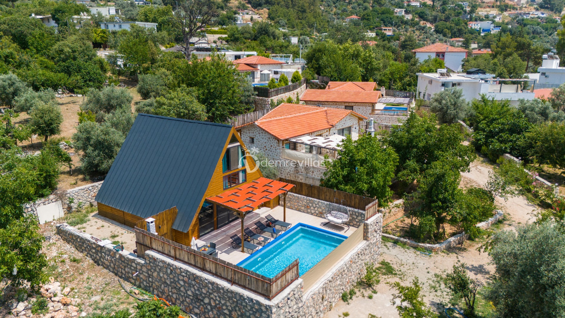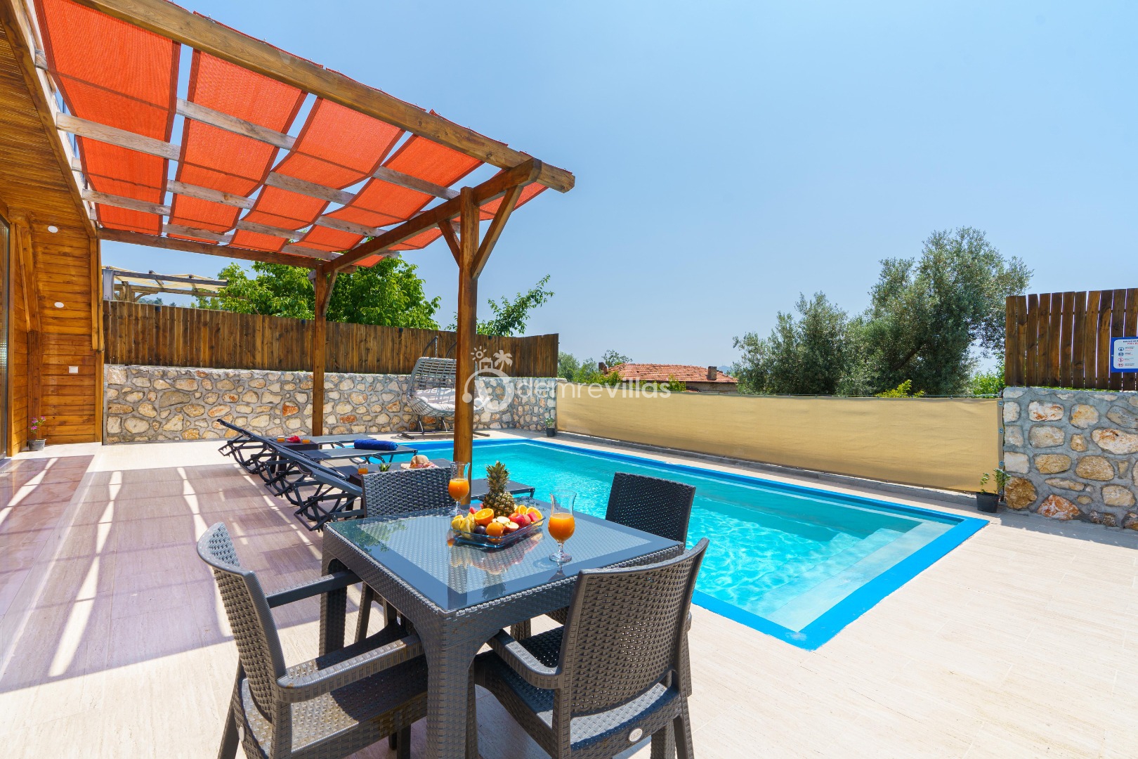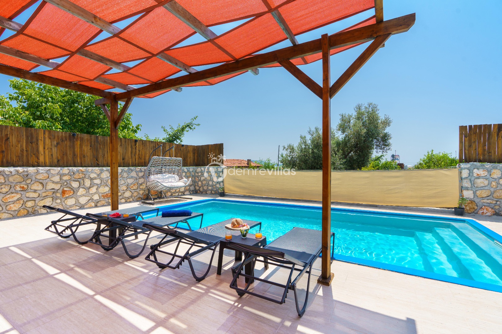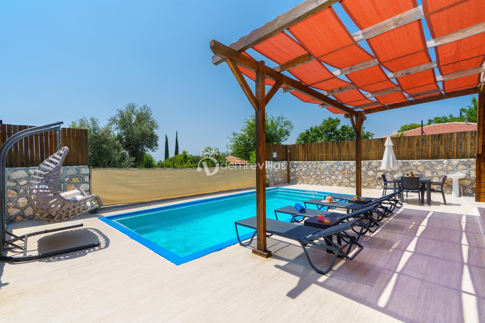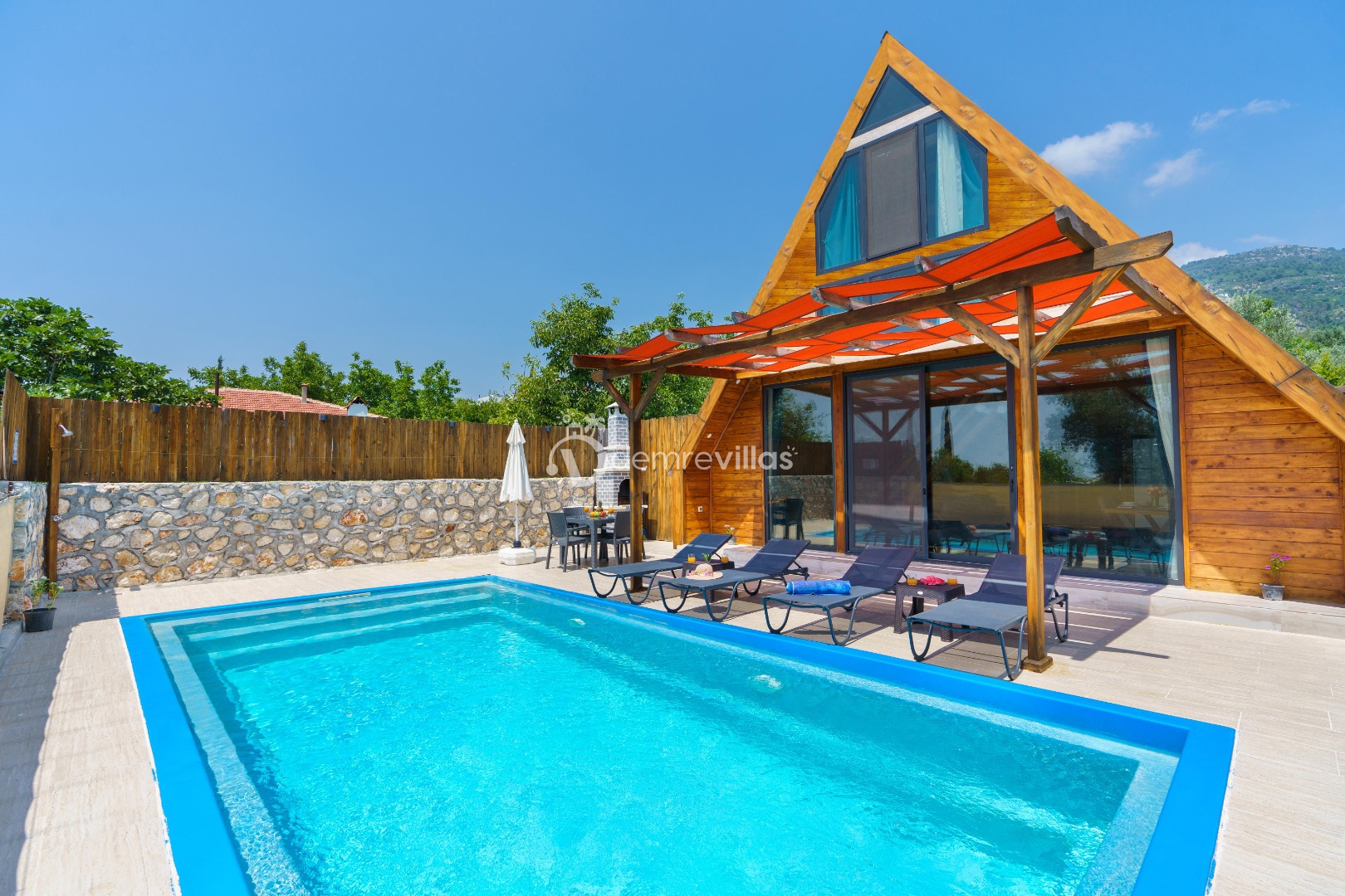 Doğa içerisinde konumlandırılmış olan villamızın aynı zamanda havuz alanı da korunaklıdır.